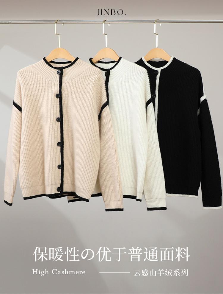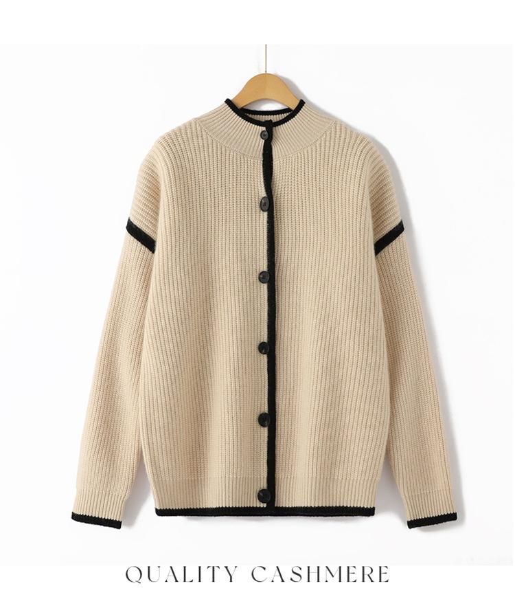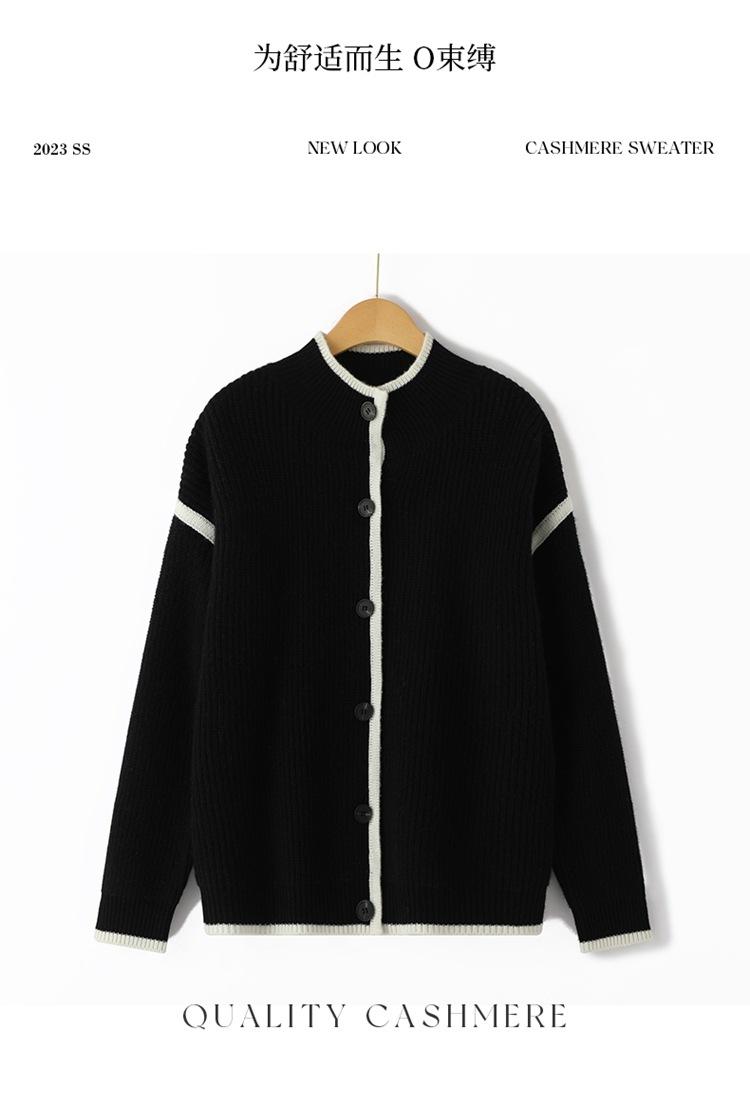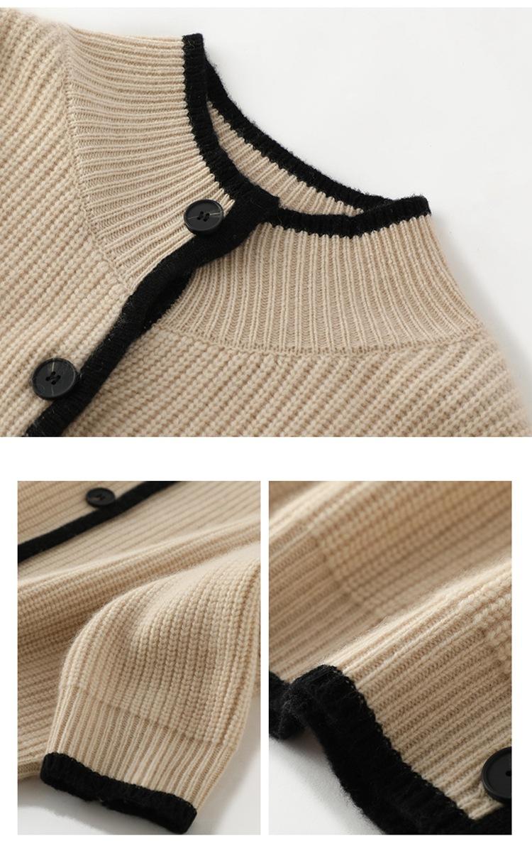 Cárdigan de punto de cachemira con hebilla y costuras en contraste para mujer, abrigo adelgazante para uso diario, otoño e invierno, nuevo abrigo de moda