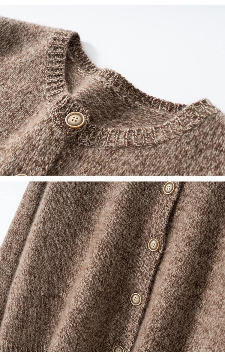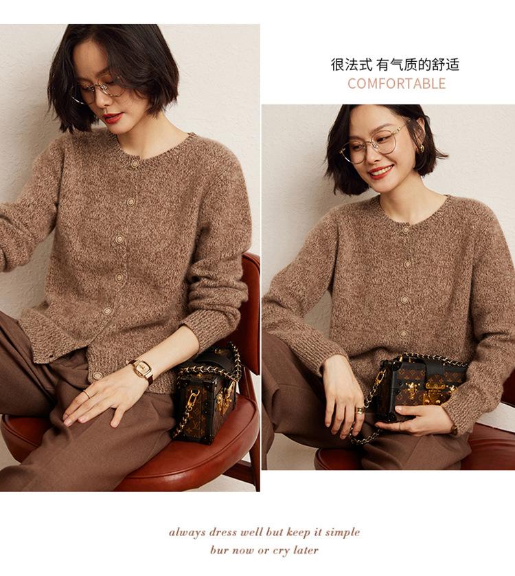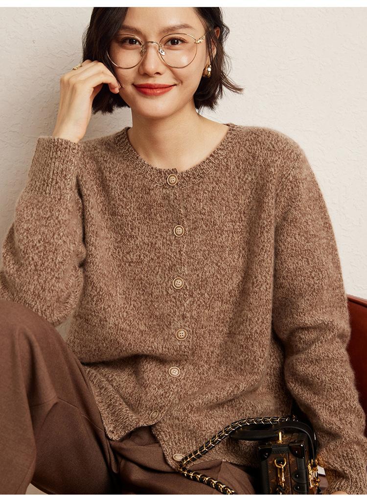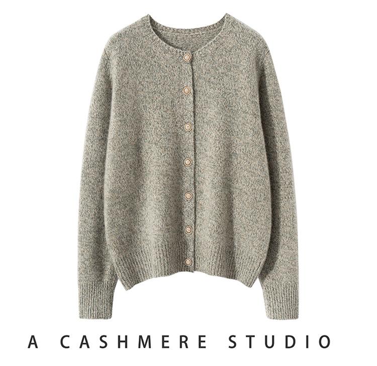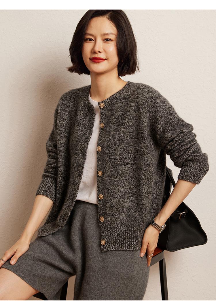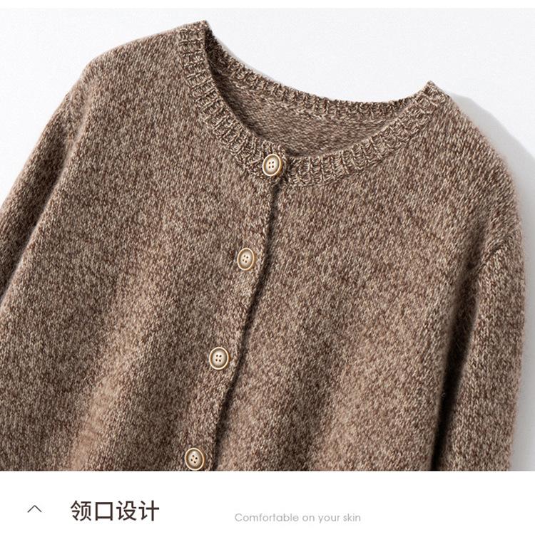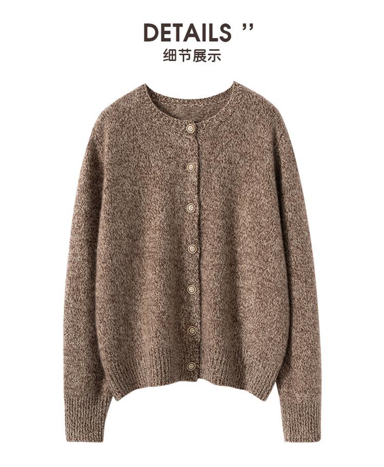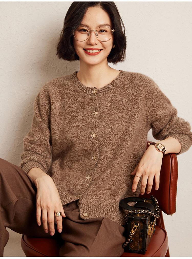 Cárdigan de Punto de Cachemira Retro de Cuello Redondo para Mujer Otoño e Invierno Nueva Moda Suelto y Versátil Estilo Perezoso Chaqueta Suéter