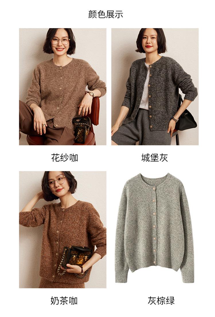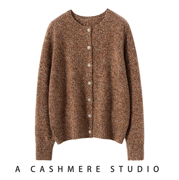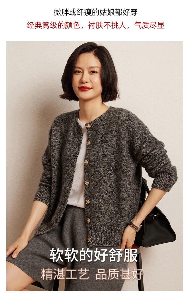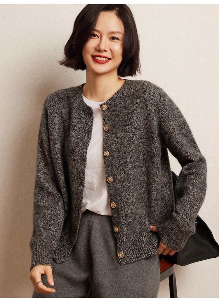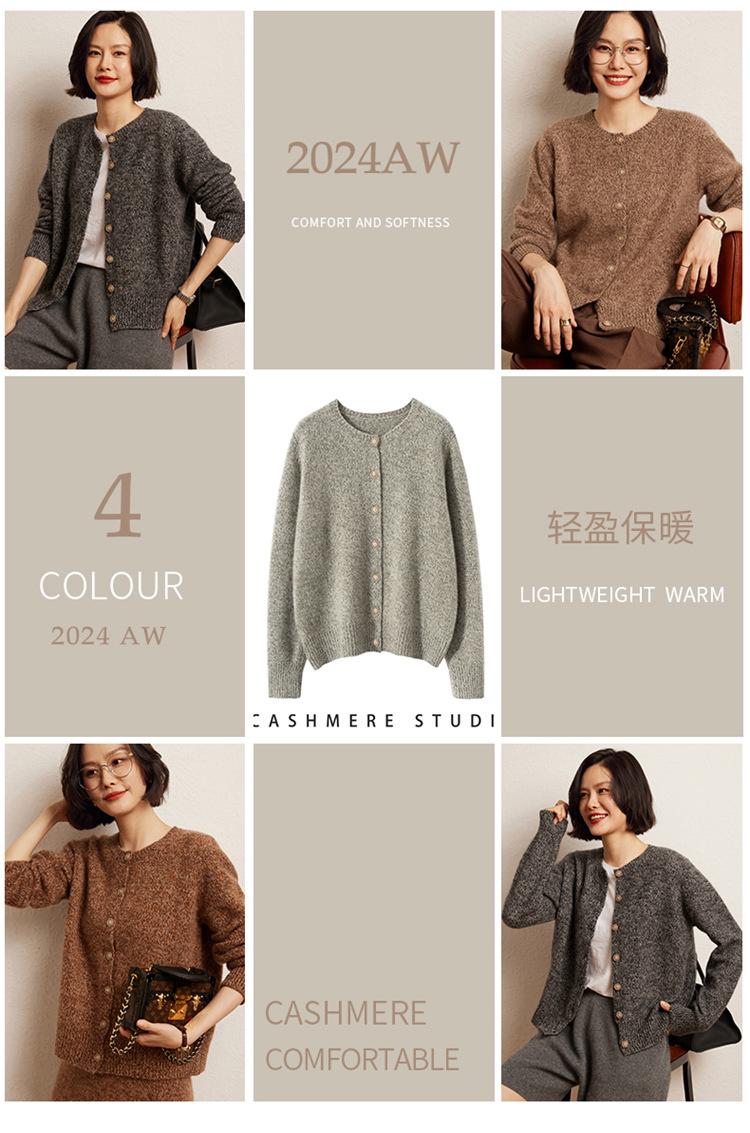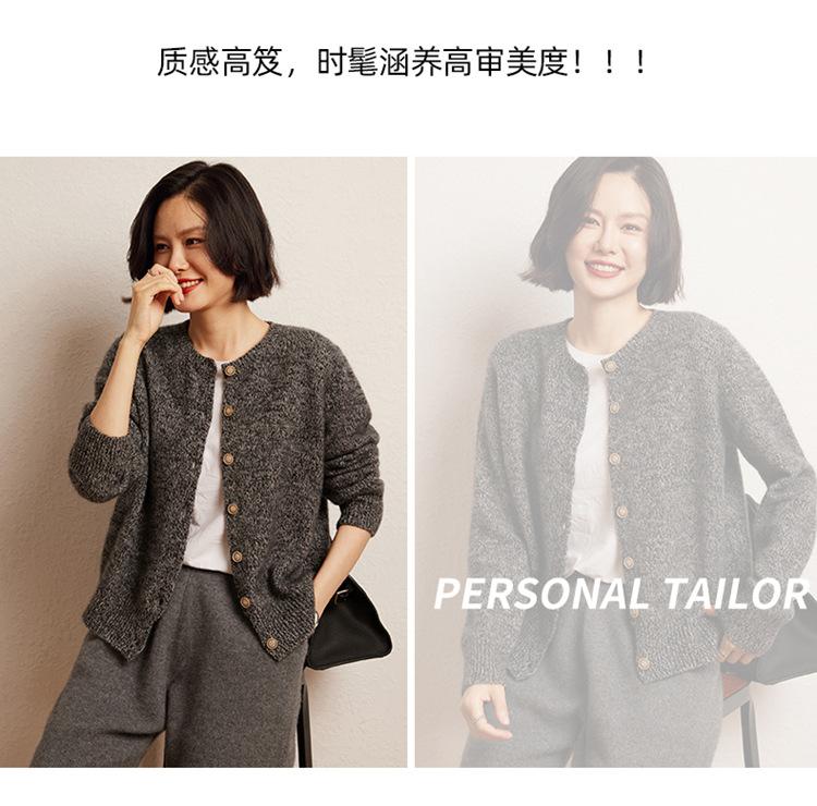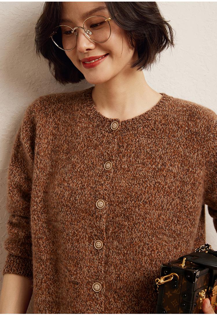Cárdigan de Punto de Cachemira Retro de Cuello Redondo para Mujer Otoño e Invierno Nueva Moda Suelto y Versátil Estilo Perezoso Chaqueta Suéter