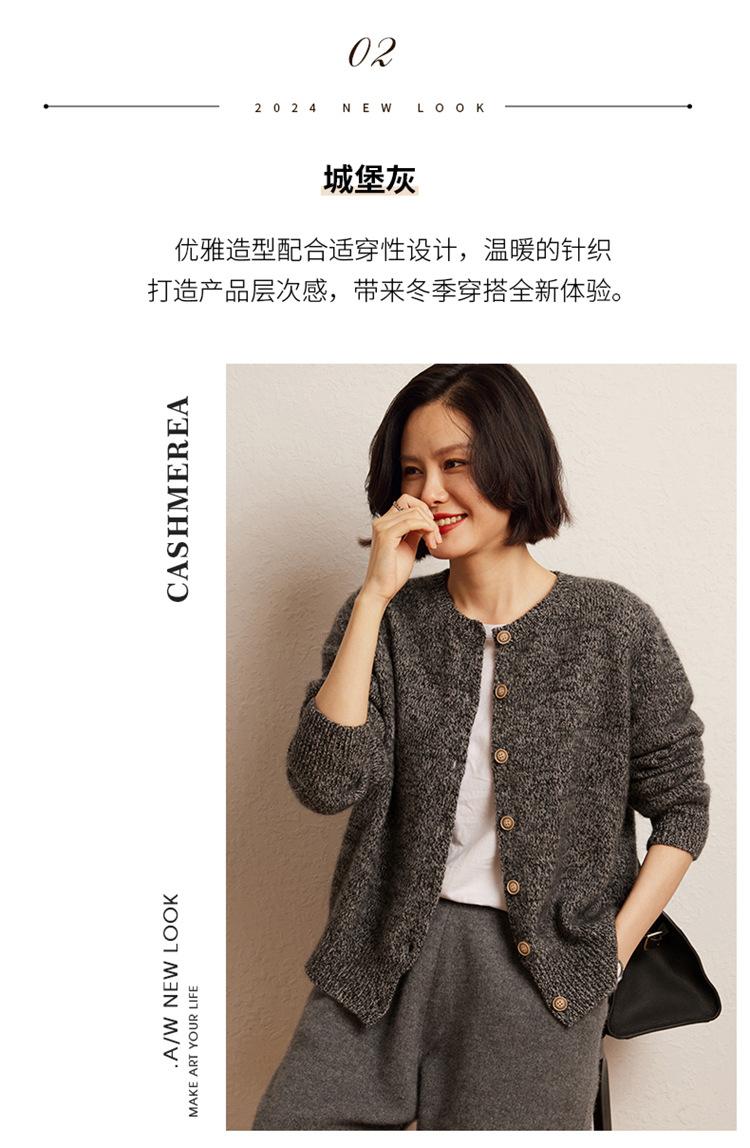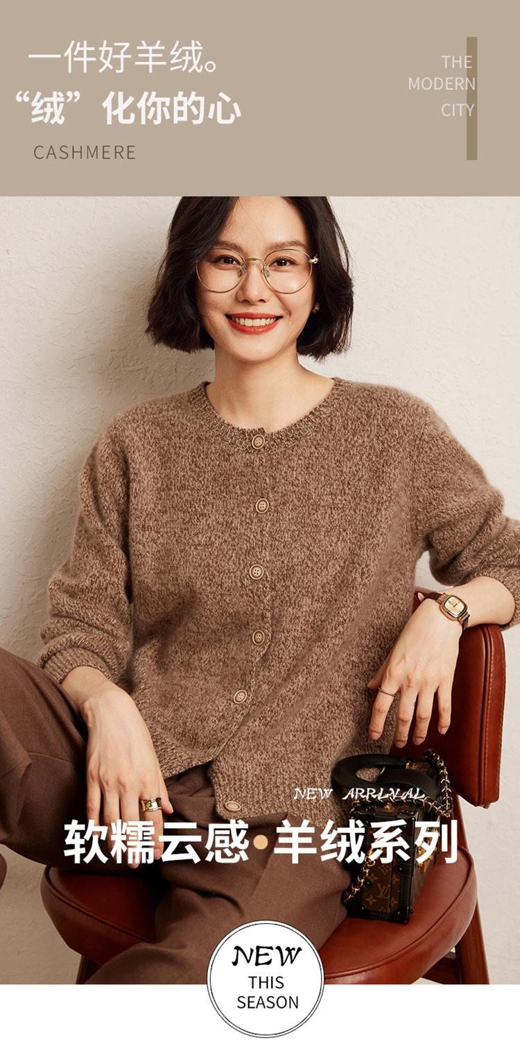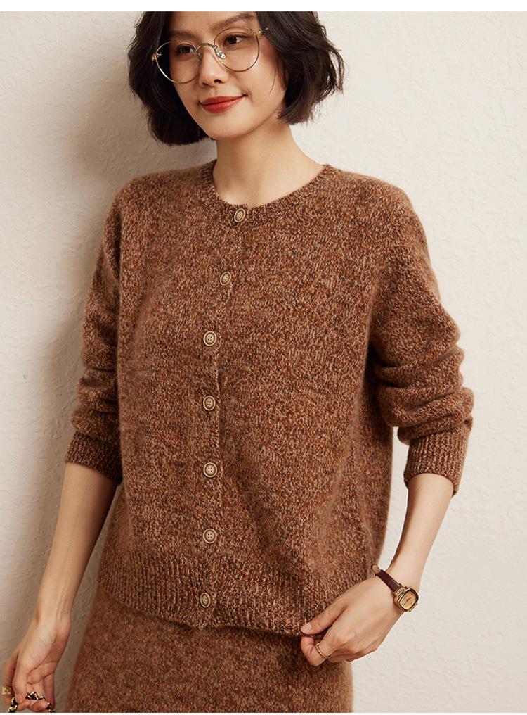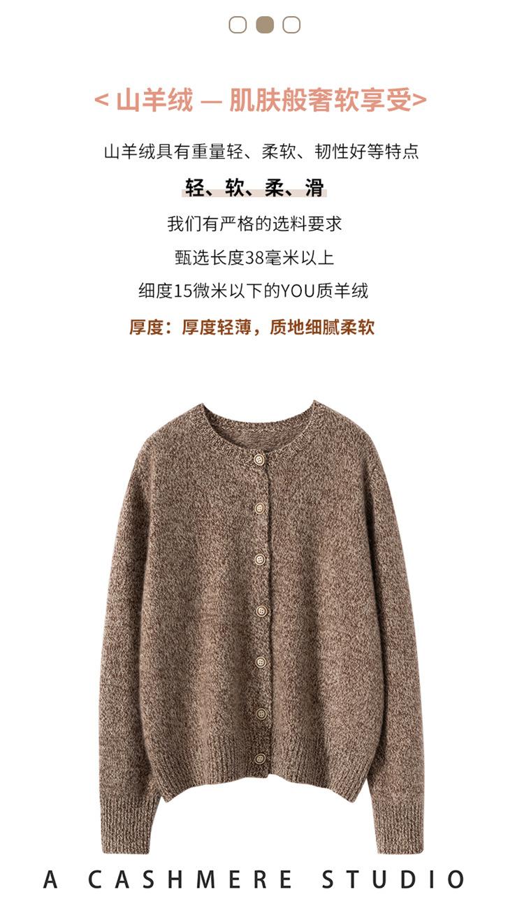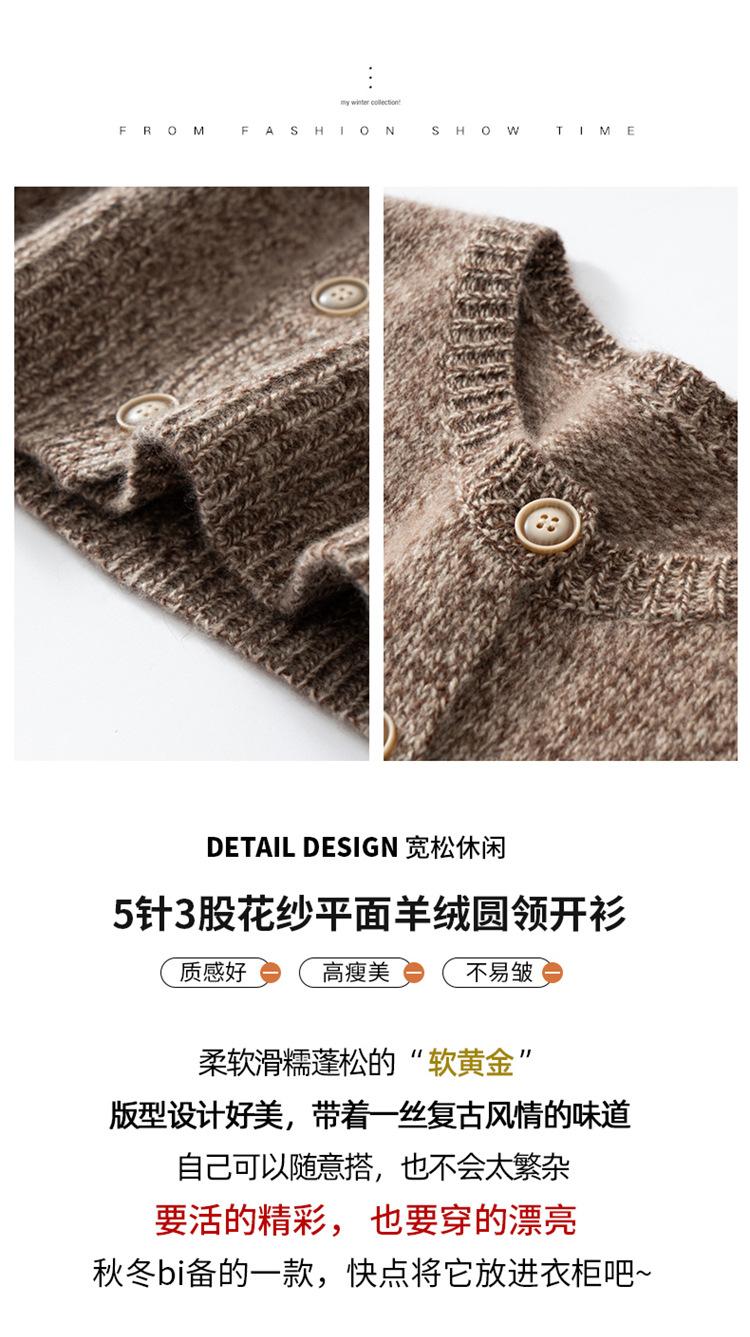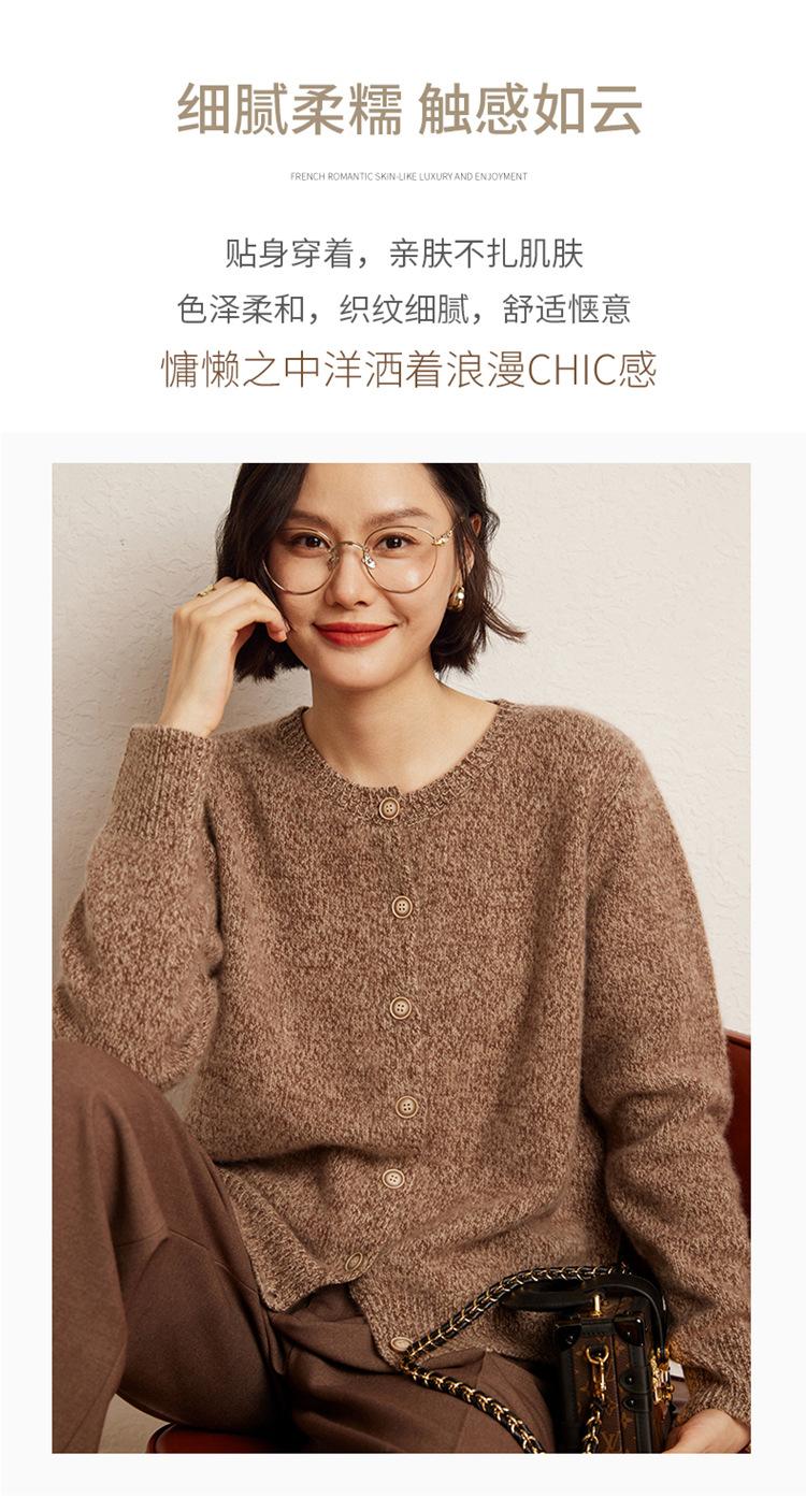 Cárdigan de Punto de Cachemira Retro de Cuello Redondo para Mujer Otoño e Invierno Nueva Moda Suelto y Versátil Estilo Perezoso Chaqueta Suéter