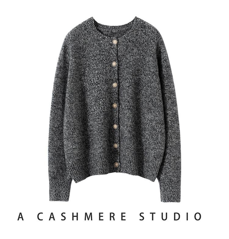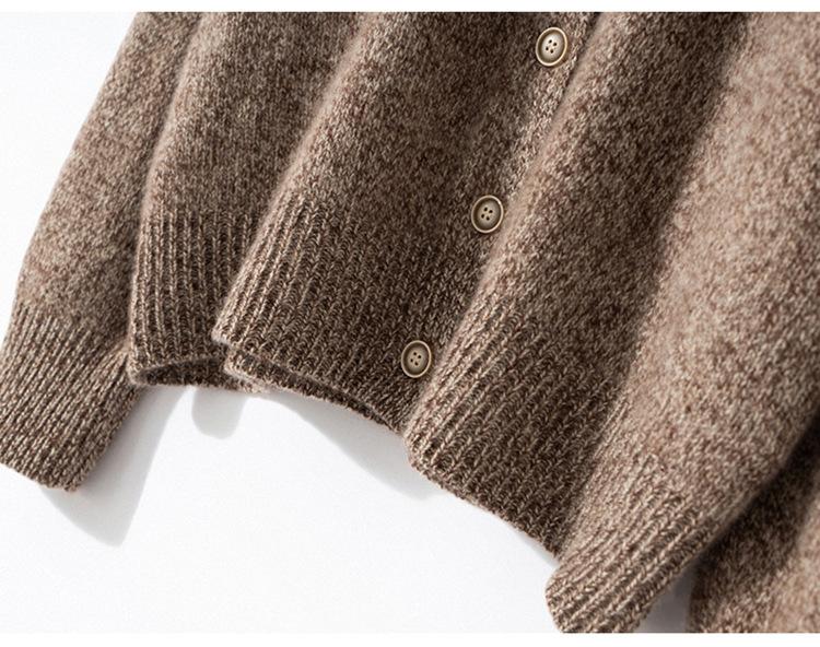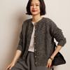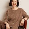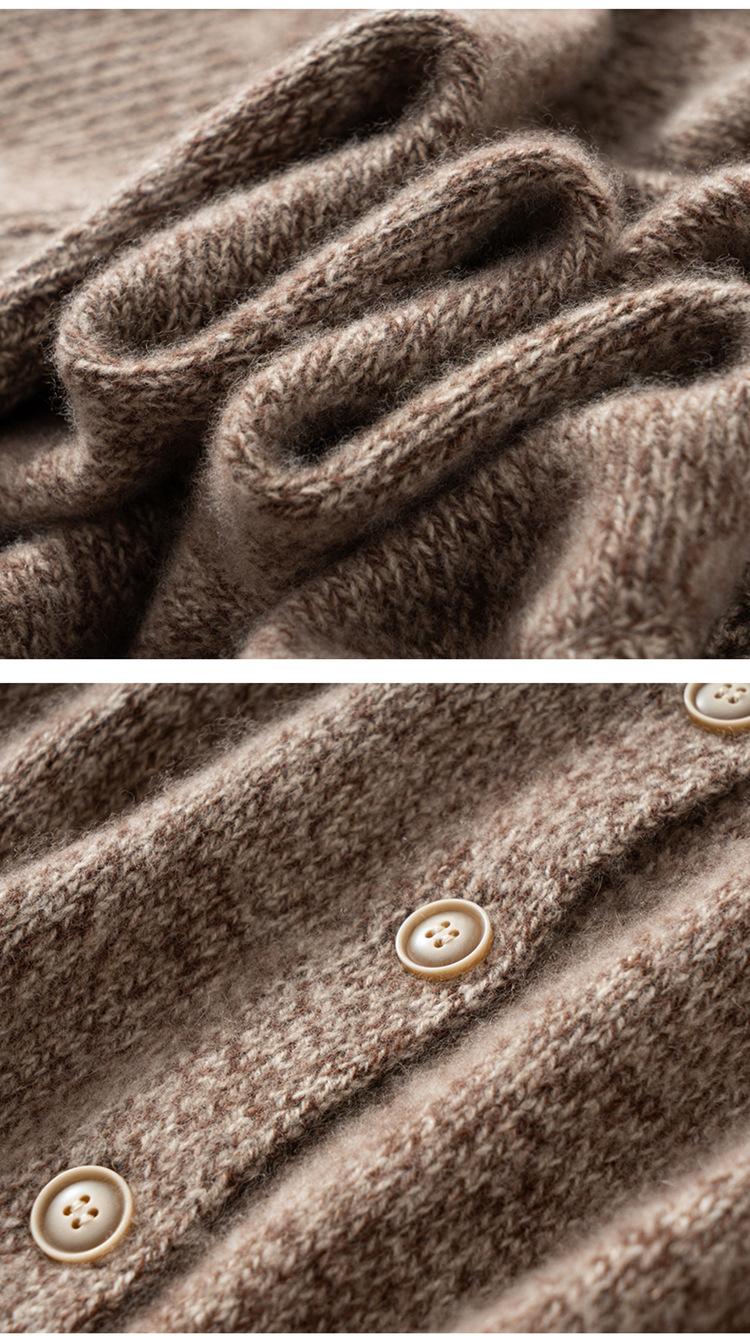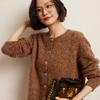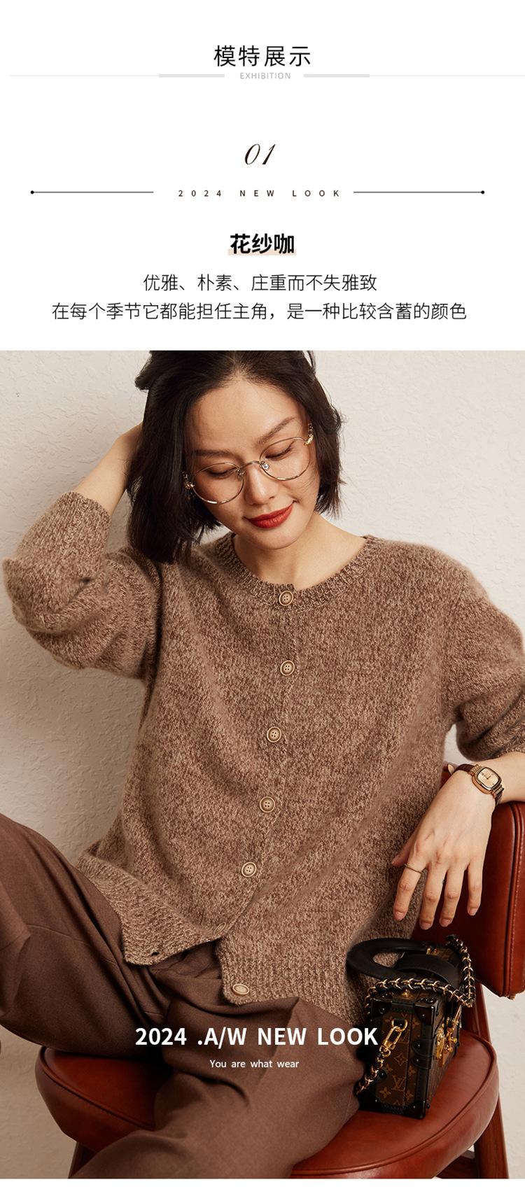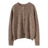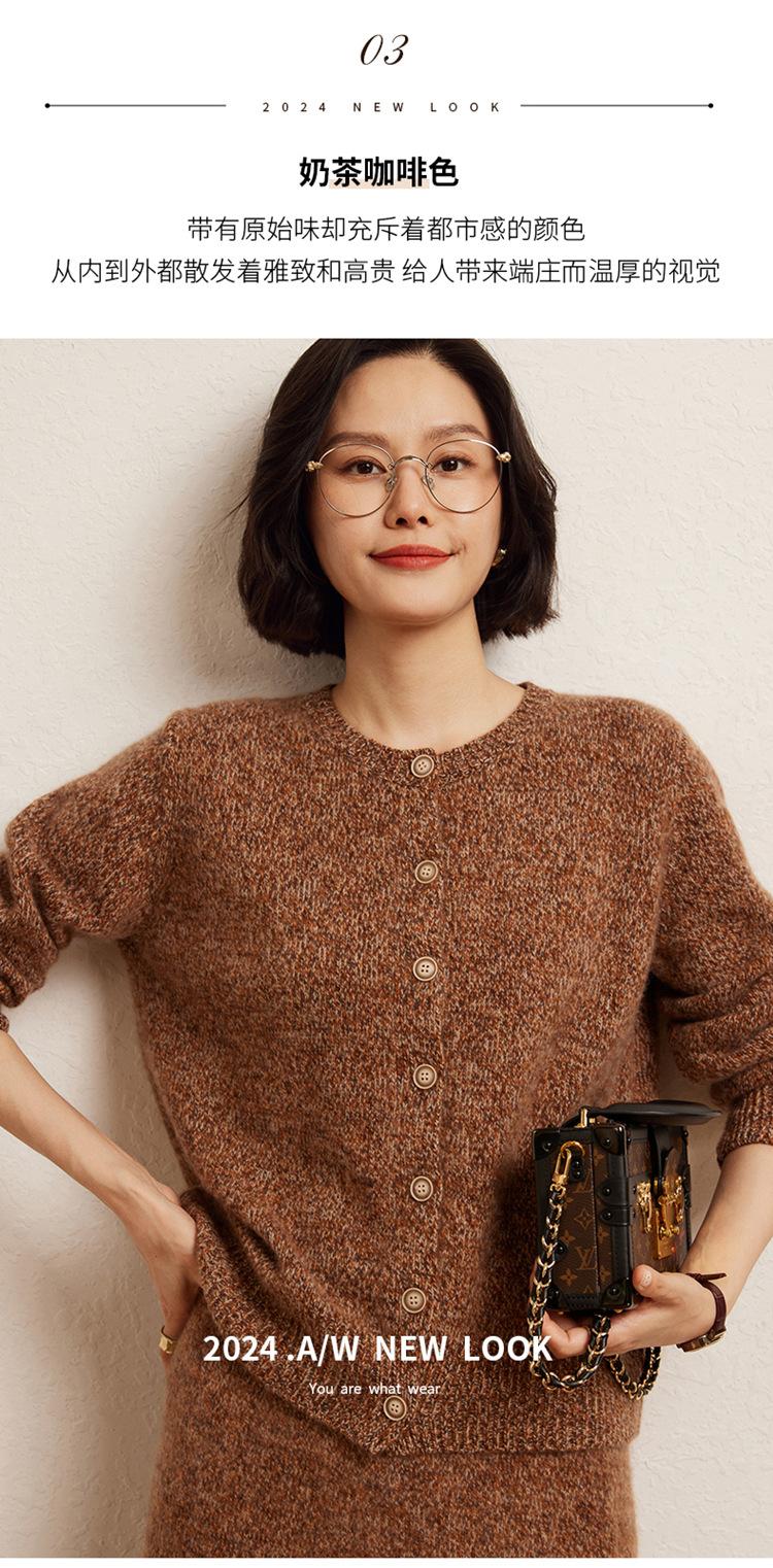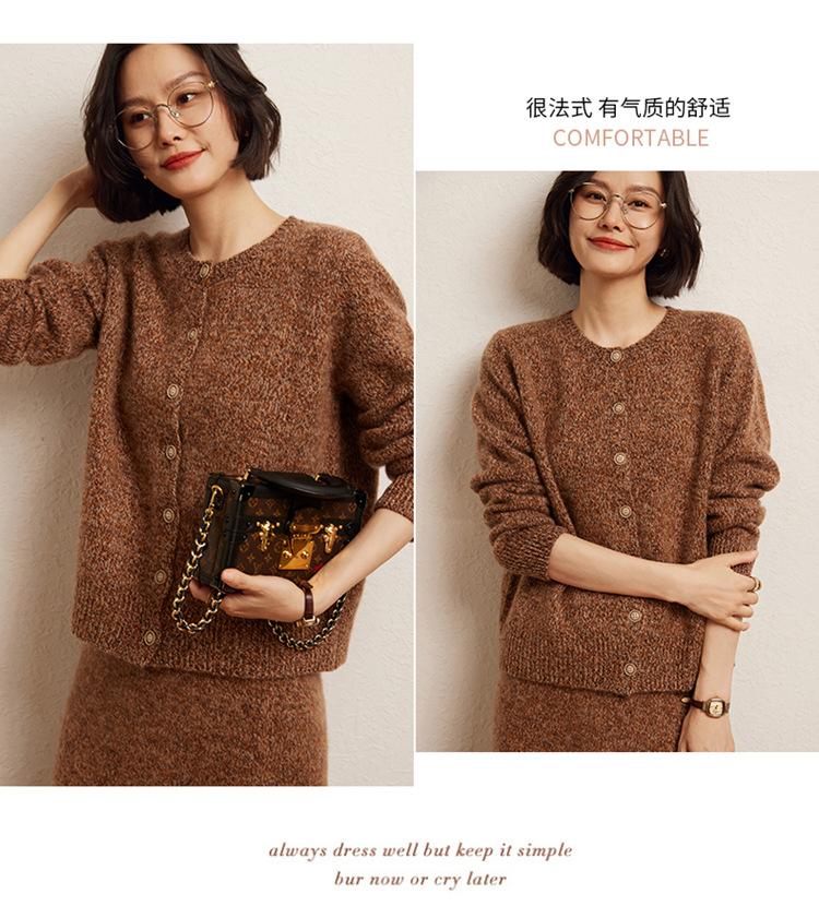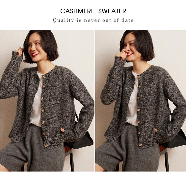Cárdigan de Punto de Cachemira Retro de Cuello Redondo para Mujer Otoño e Invierno Nueva Moda Suelto y Versátil Estilo Perezoso Chaqueta Suéter
