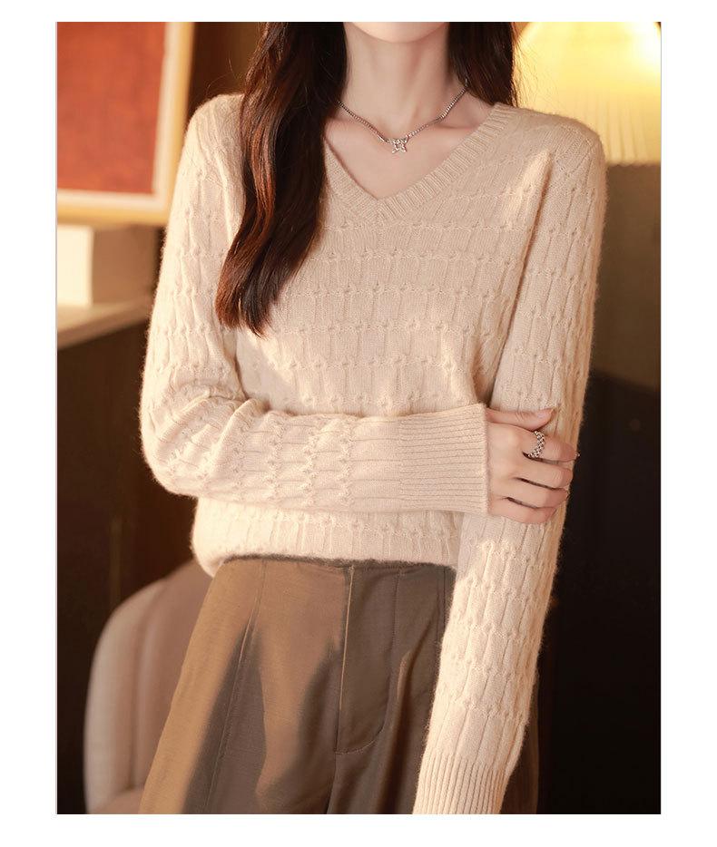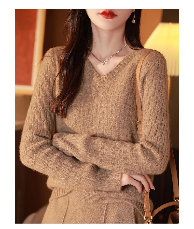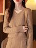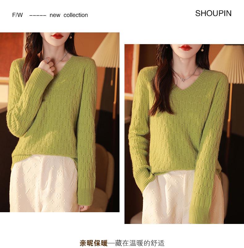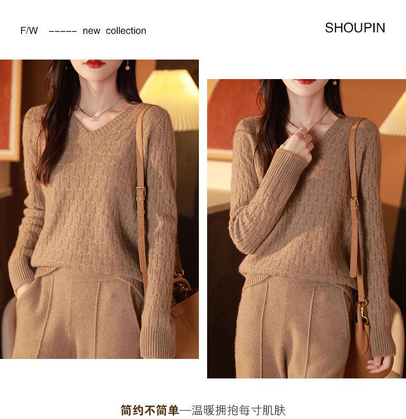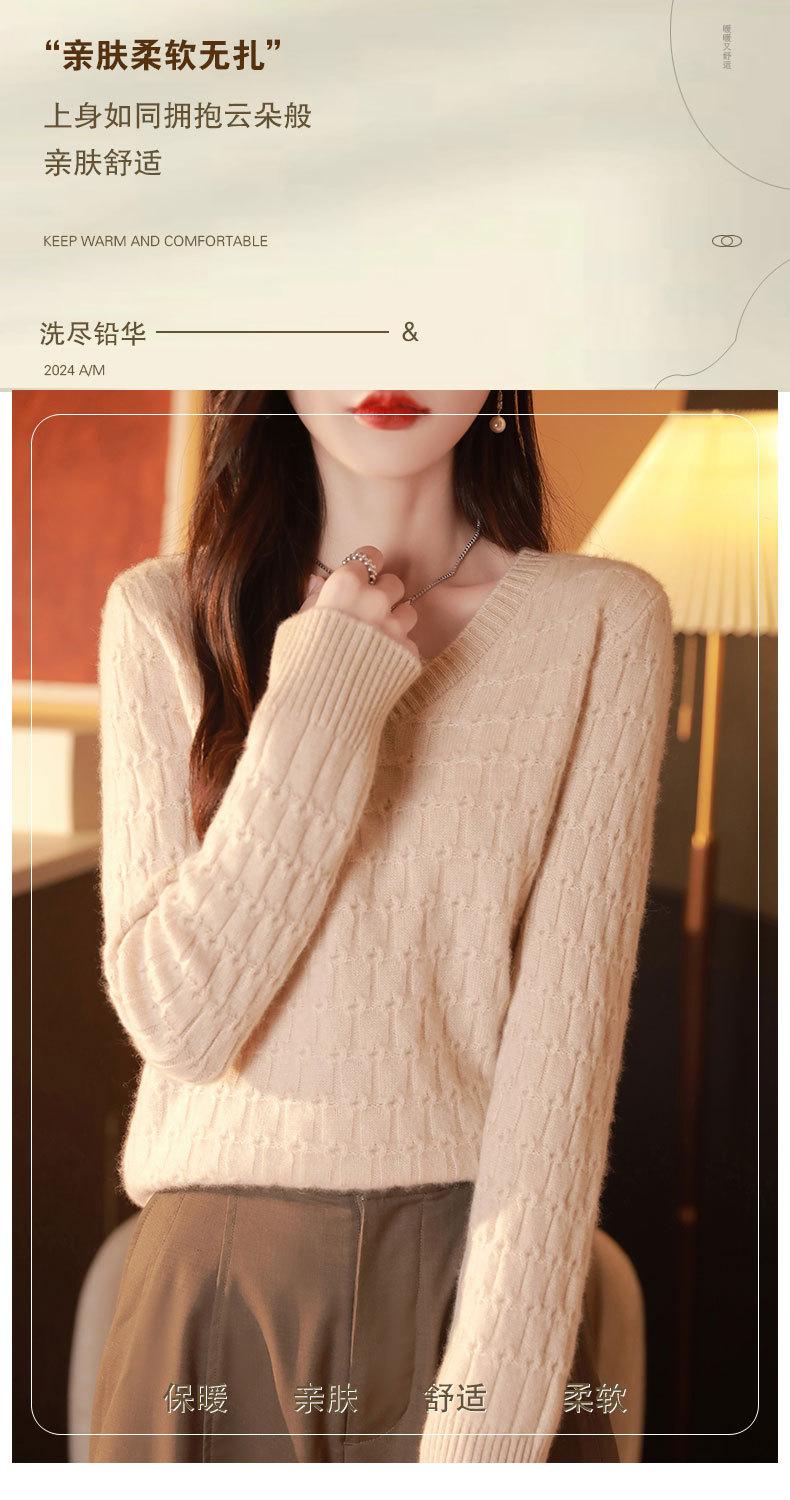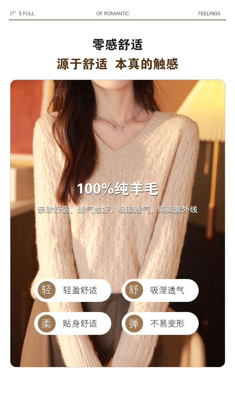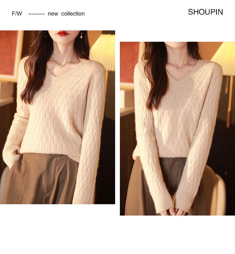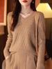 Suéter de Lana 100% Pura para Mujer Cuello en V Nuevo Camiseta Interior con Tirantes Combinable Suéter Holgado de Punto Estilo Occidental Suéter de Lana Suéter