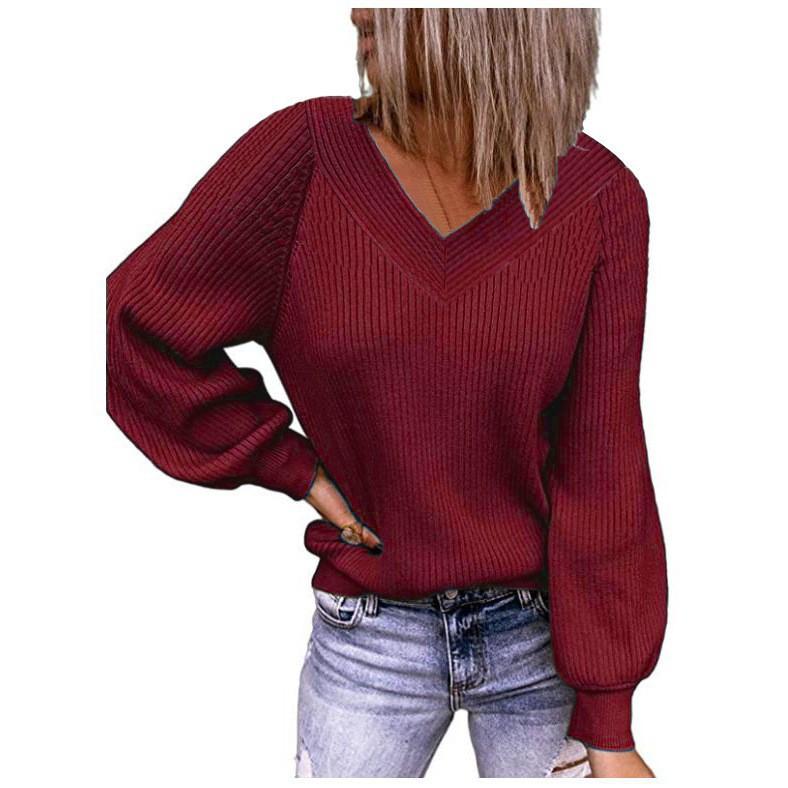 Suéter holgado de talla grande con cuello en V y color liso para otoño e invierno de Amazon 2024, suéter europeo y americano para mujer
