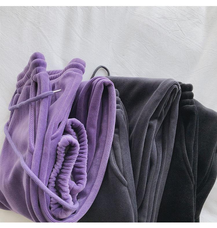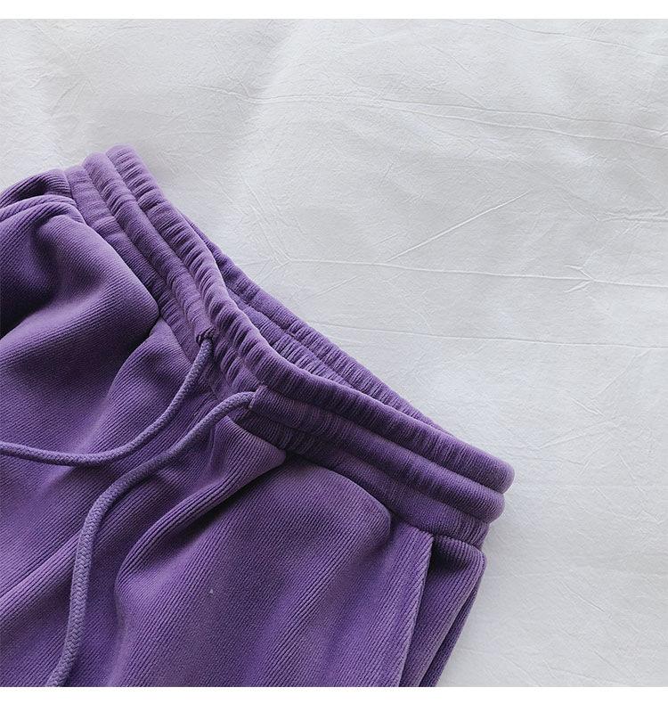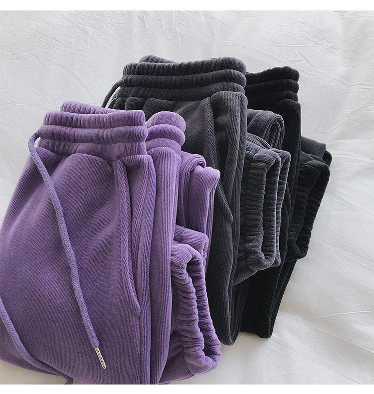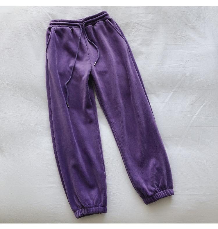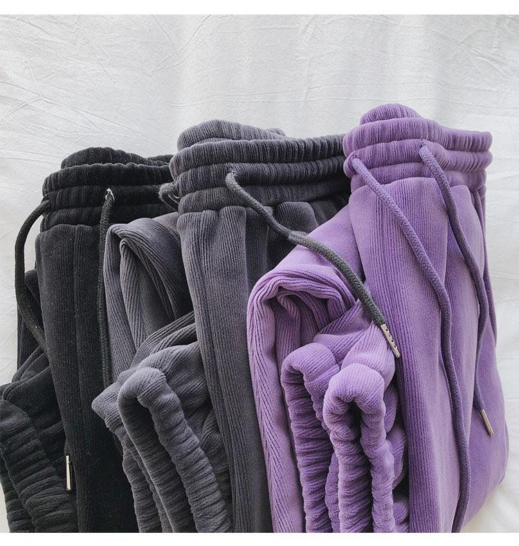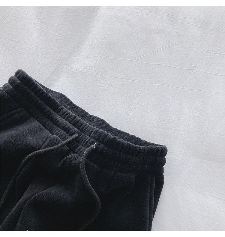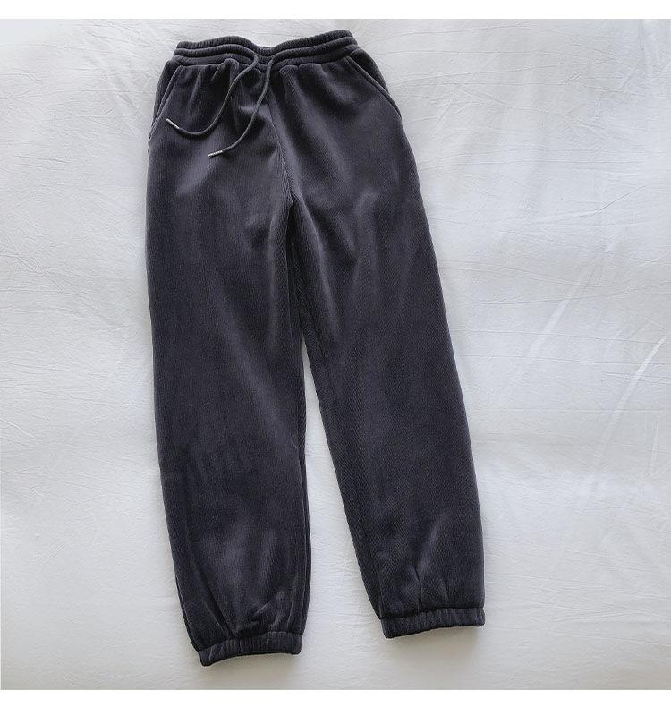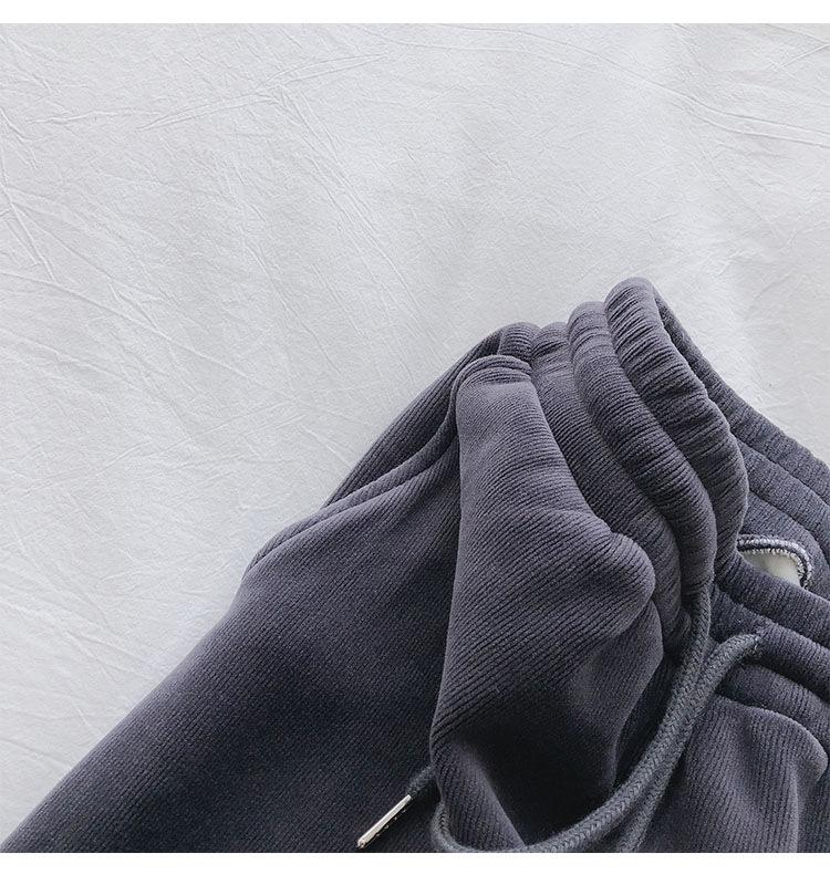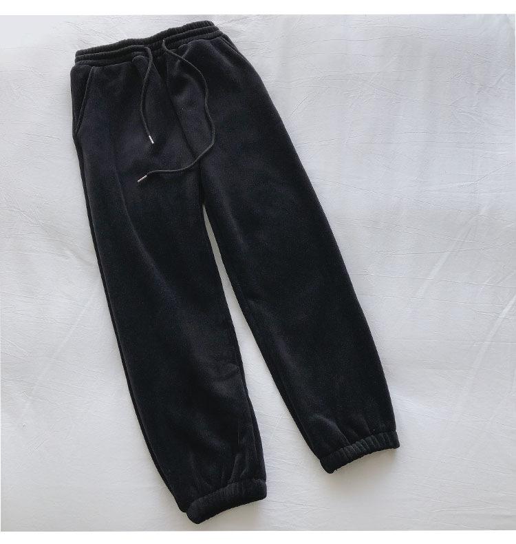 Otoño e Invierno Nuevo High Street Pantalones de Sudor Color Sólido para Mujer Holgados Casuales Estilo Americano con Forro Polar Engrosados con Cordón Pantalones Deportivos Adelgazantes para Piernas