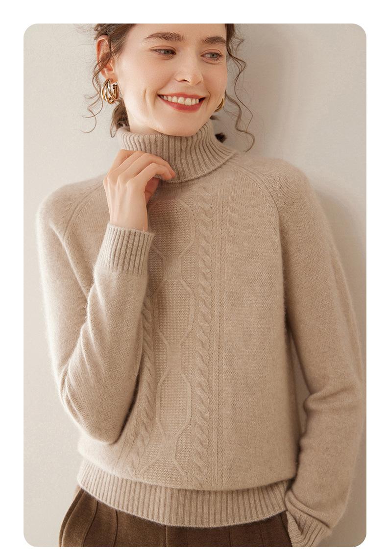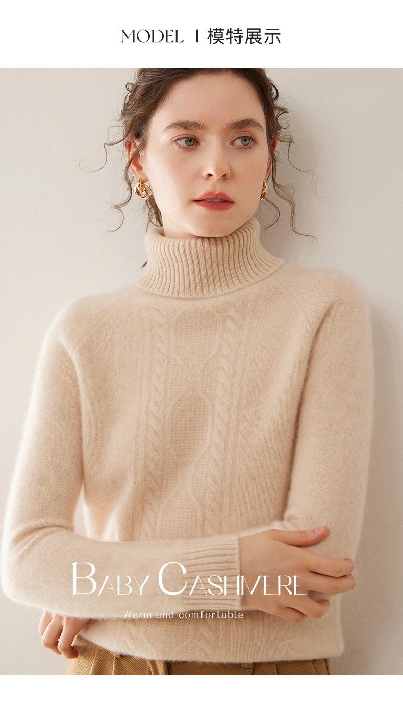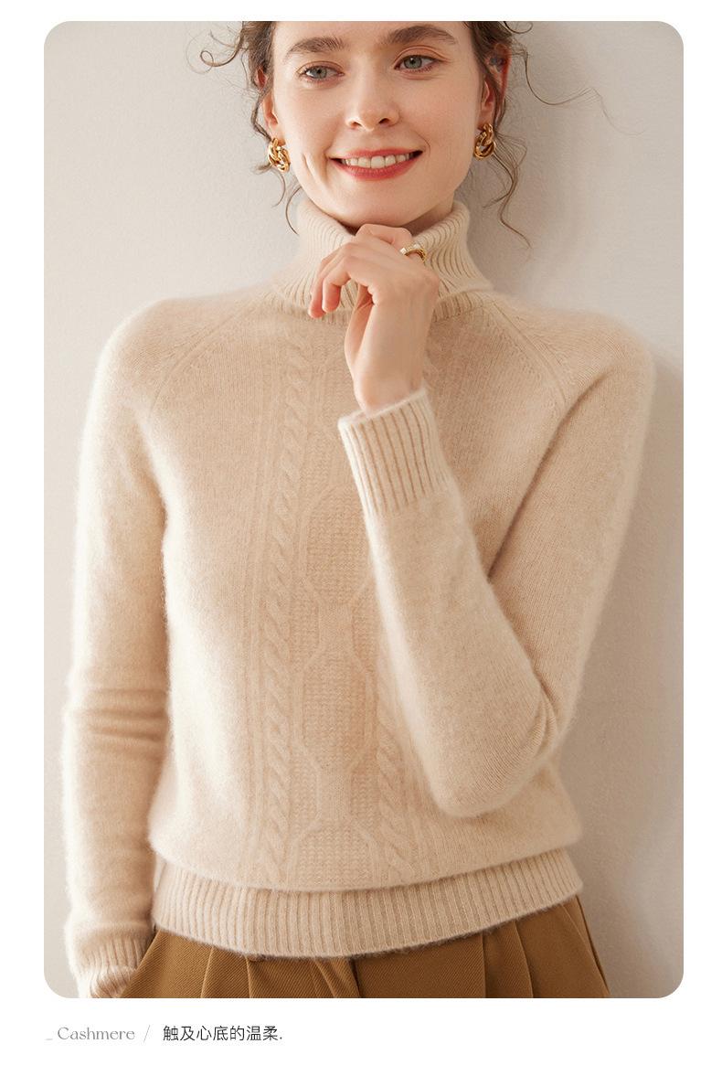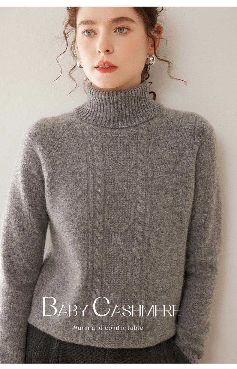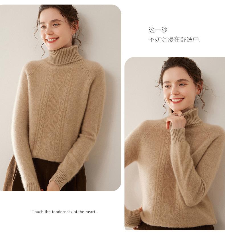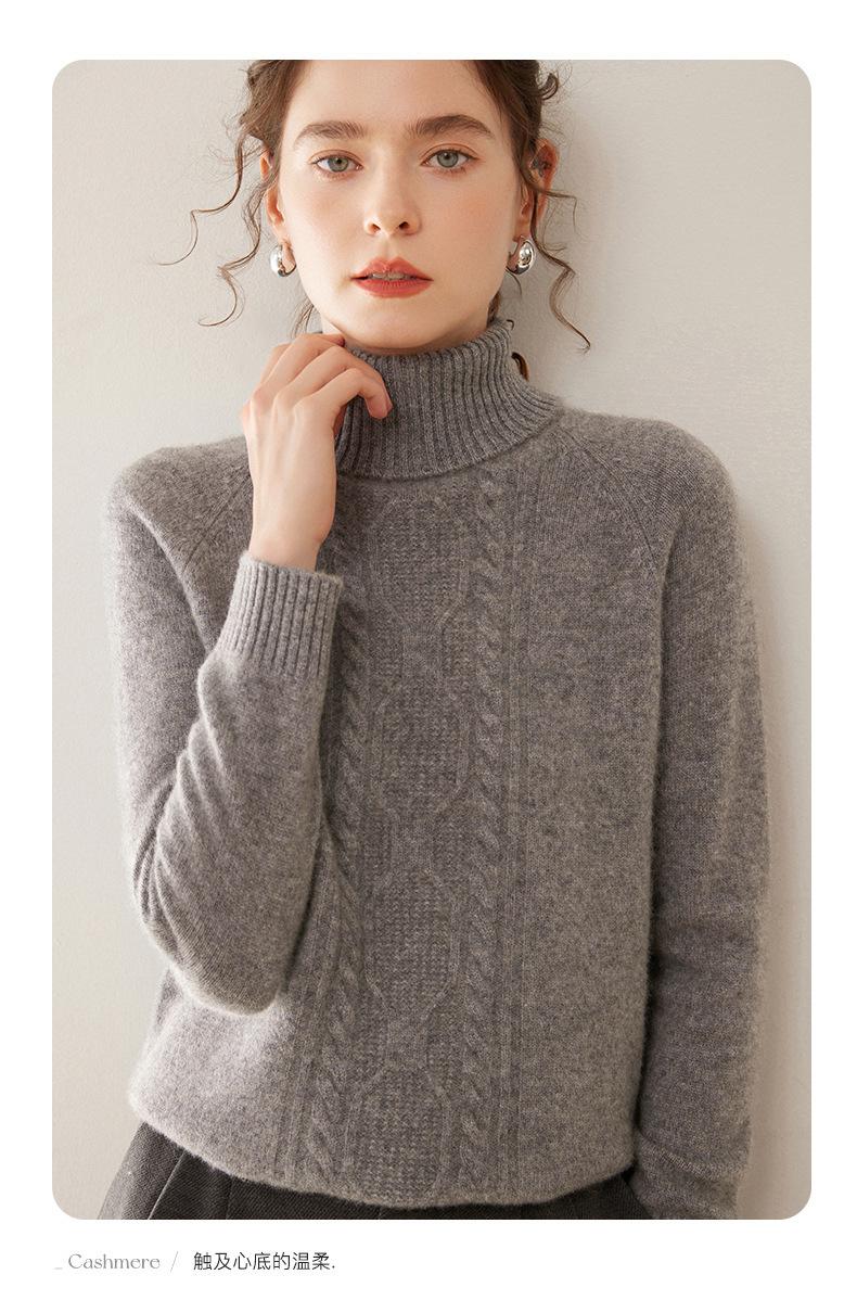 Suéter corto de cachemira de color liso para otoño e invierno, suéter de punto sencillo y cálido para mujer, suéter de manga larga con cuello alto