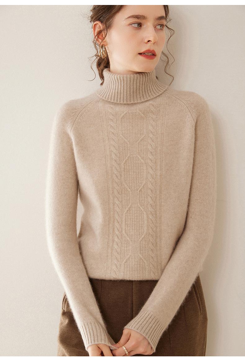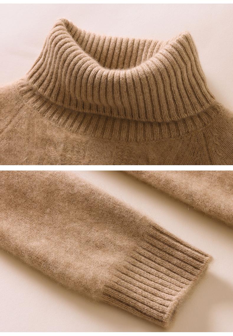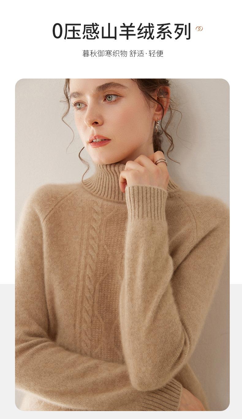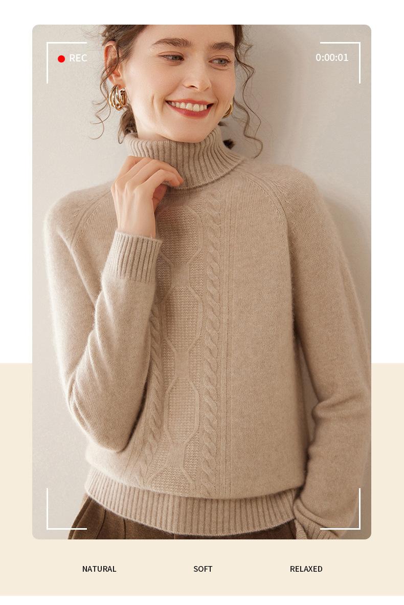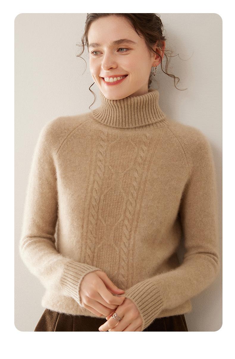 Suéter corto de cachemira de color liso para otoño e invierno, suéter de punto sencillo y cálido para mujer, suéter de manga larga con cuello alto