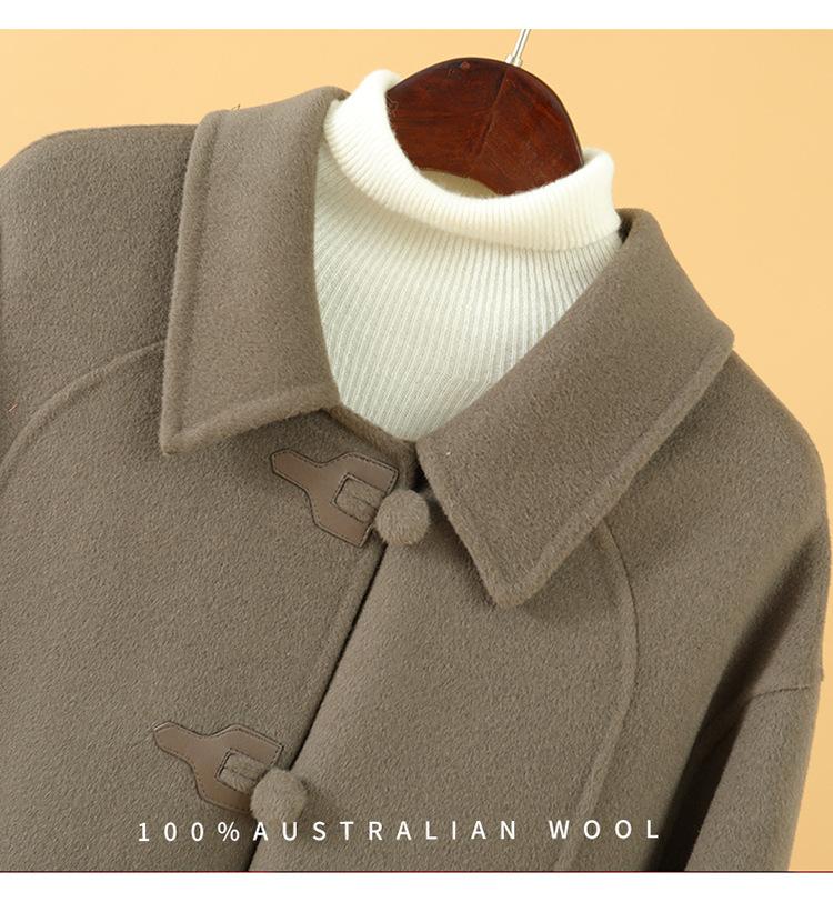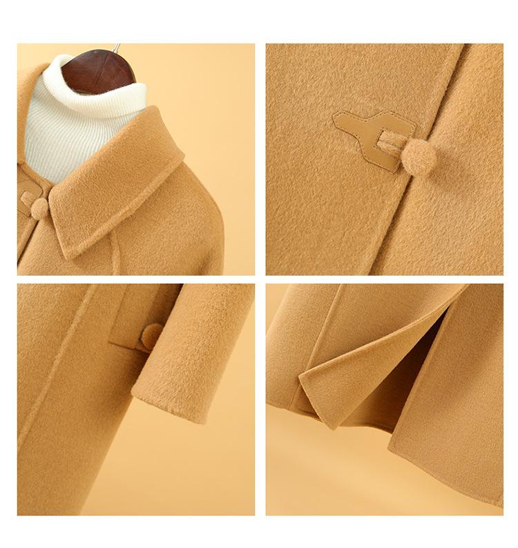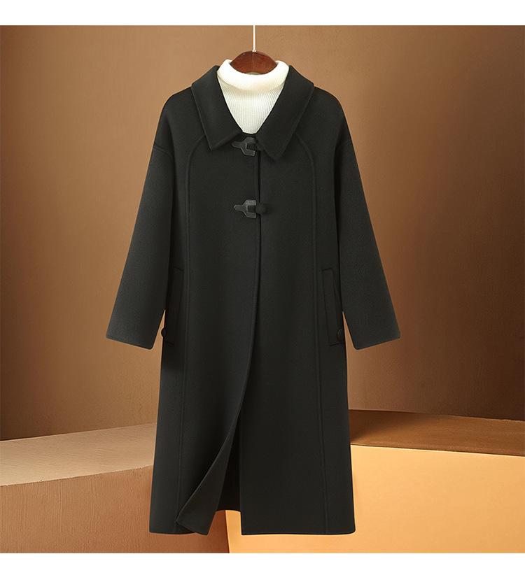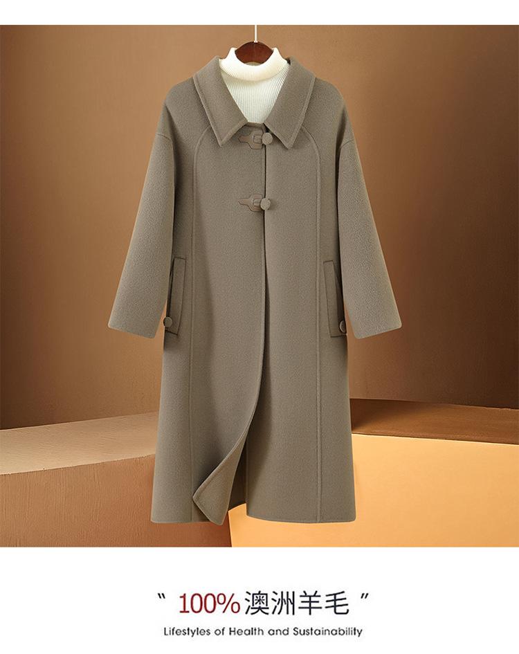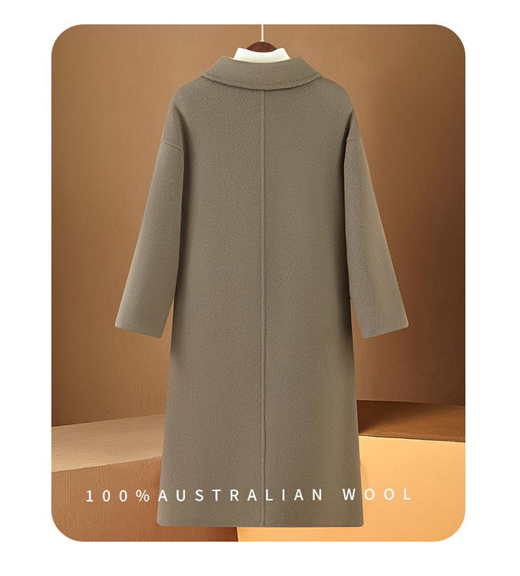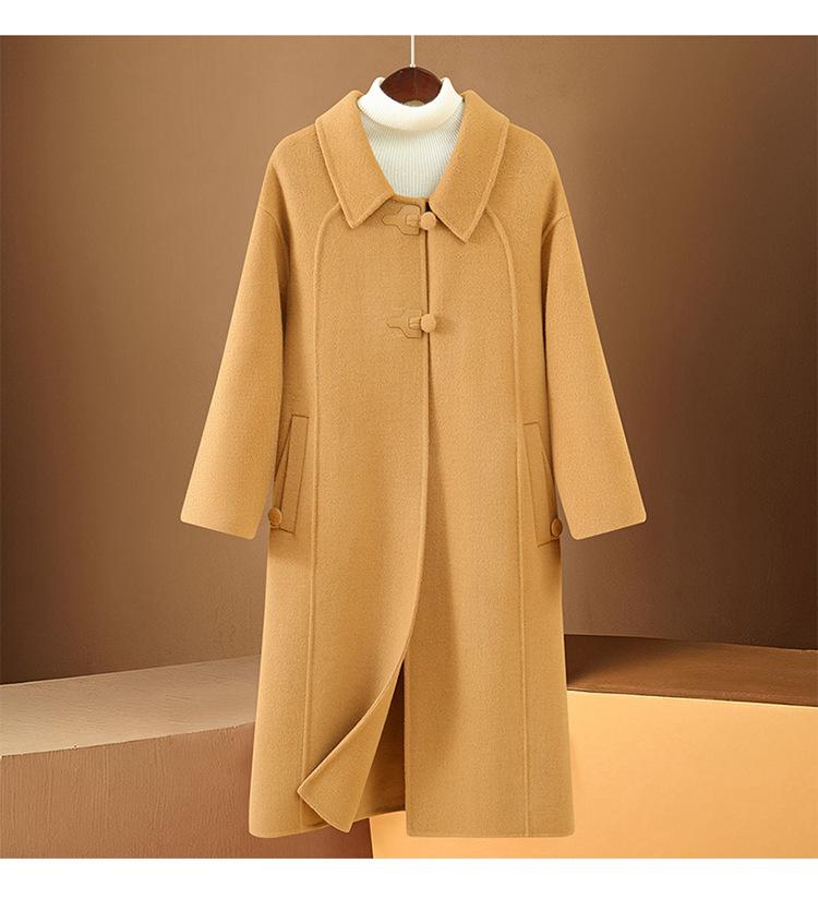 Nuevo abrigo de lana de doble cara para otoño e invierno 2024, elegante abrigo de lana de longitud media con solapa suelta.