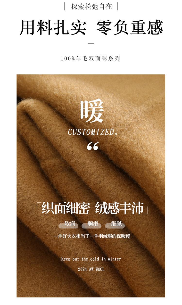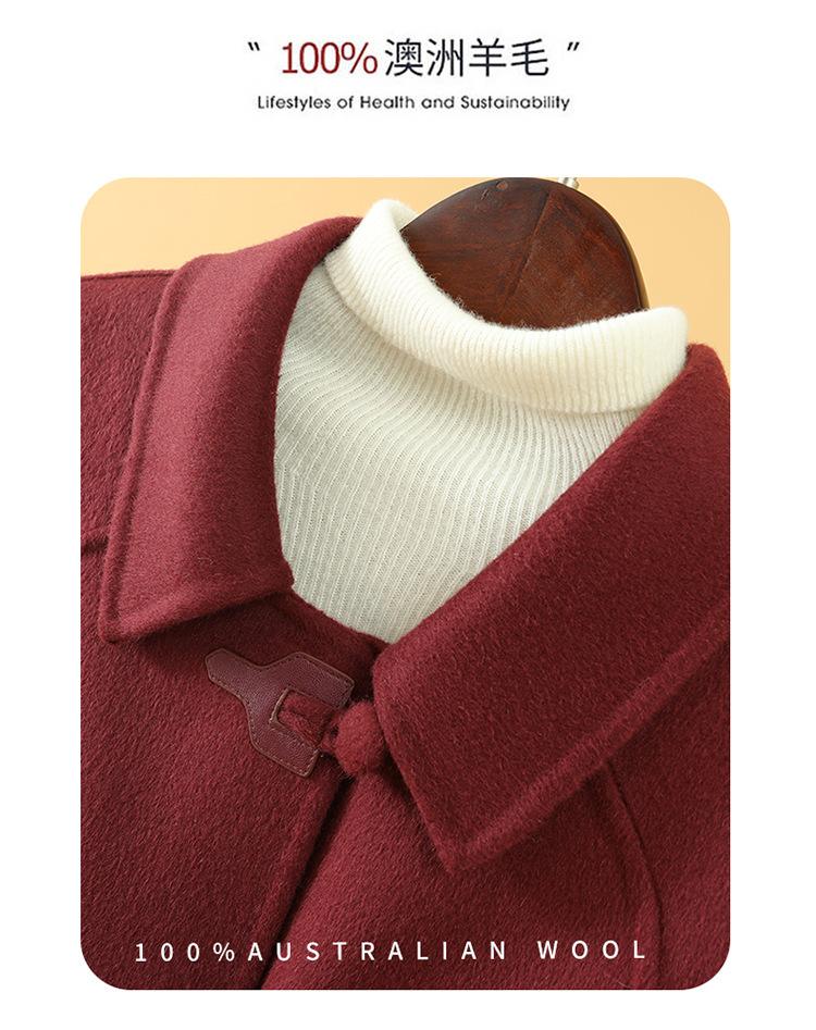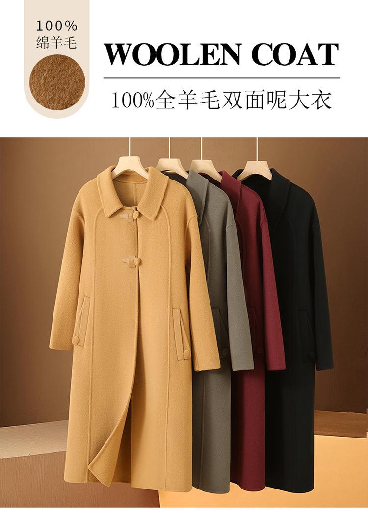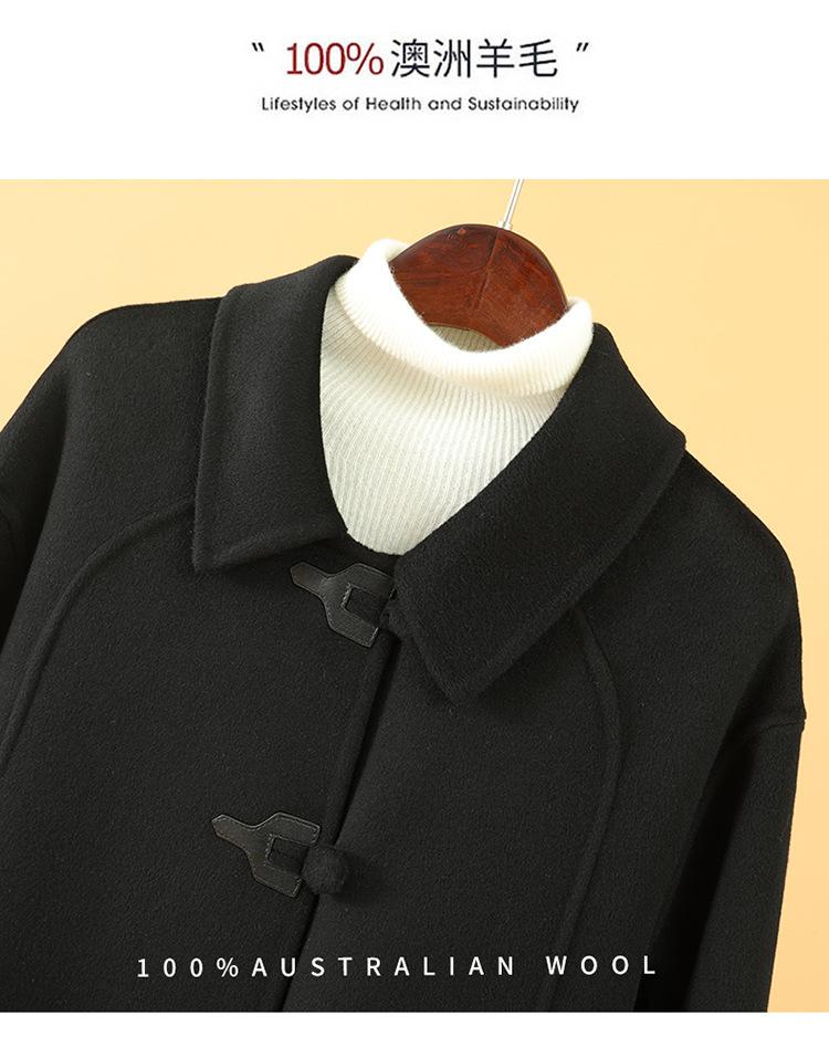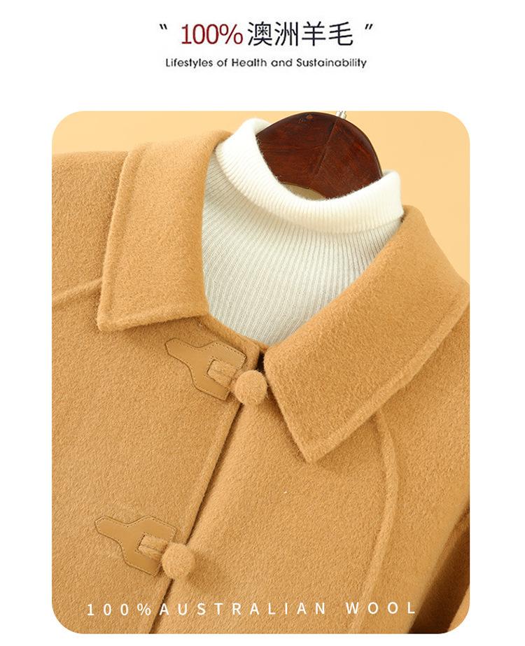 Nuevo abrigo de lana de doble cara para otoño e invierno 2024, elegante abrigo de lana de longitud media con solapa suelta.