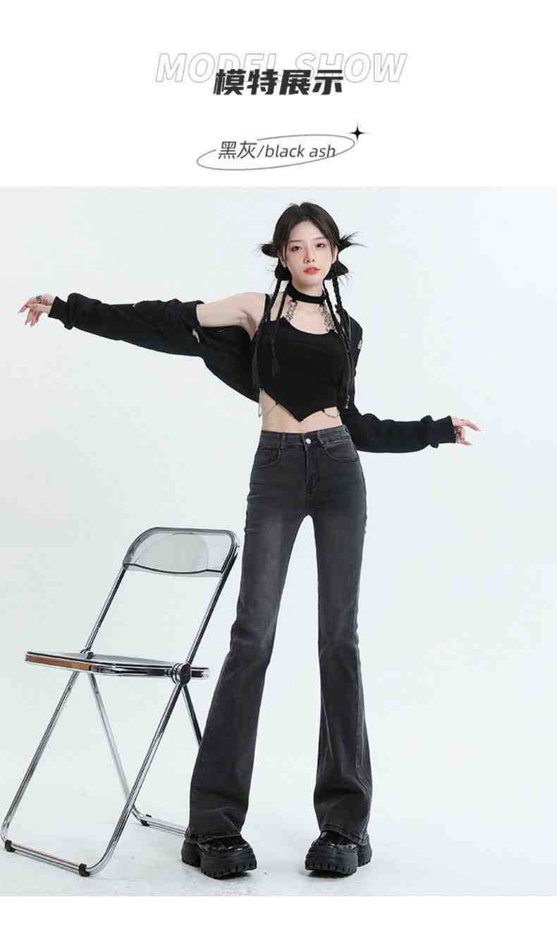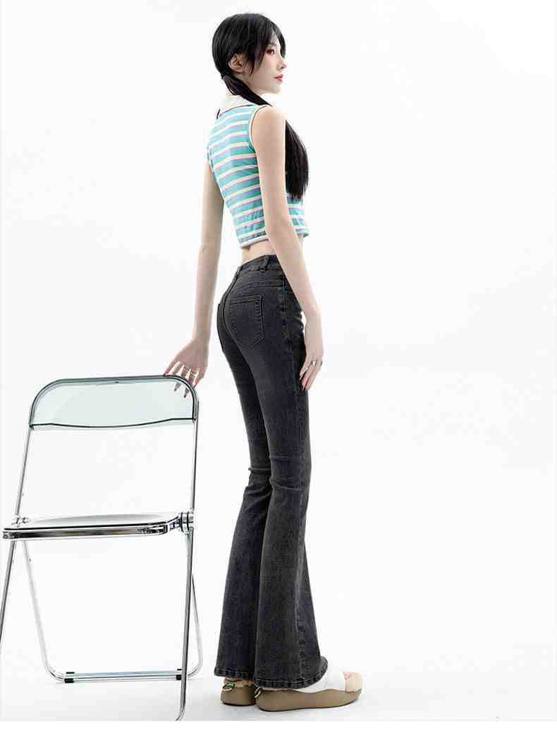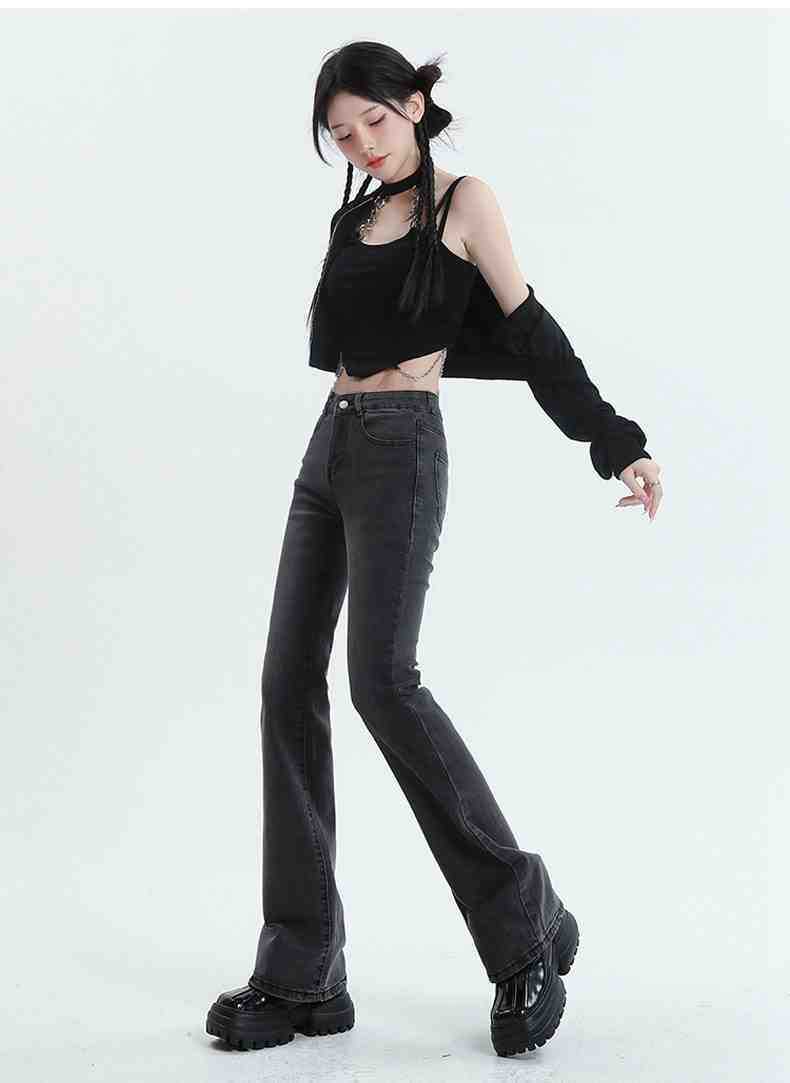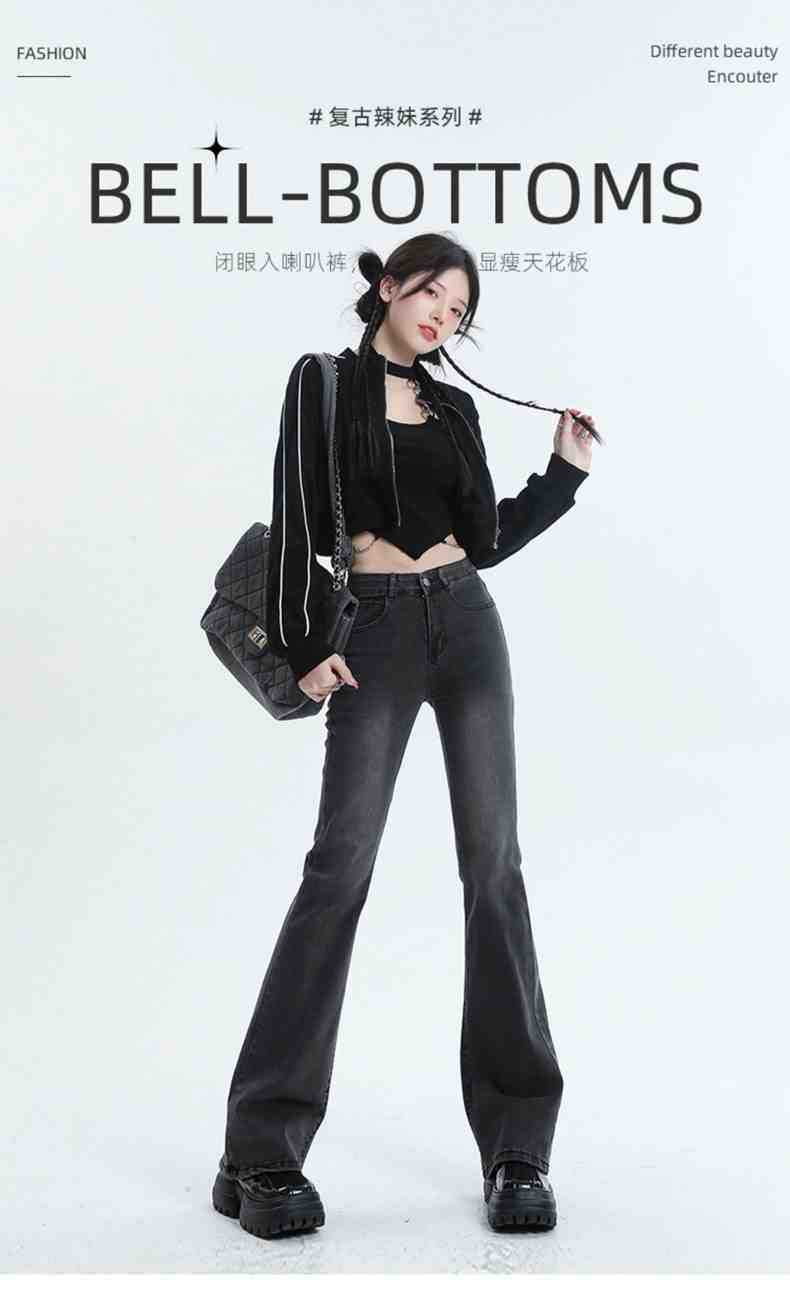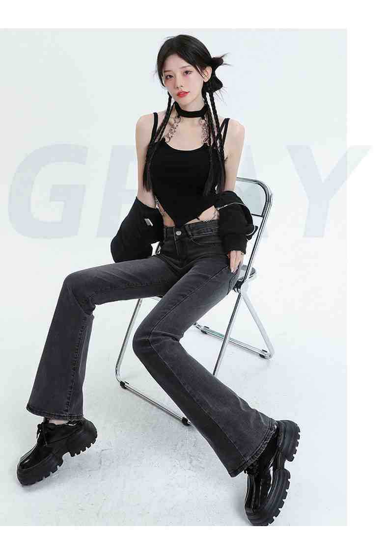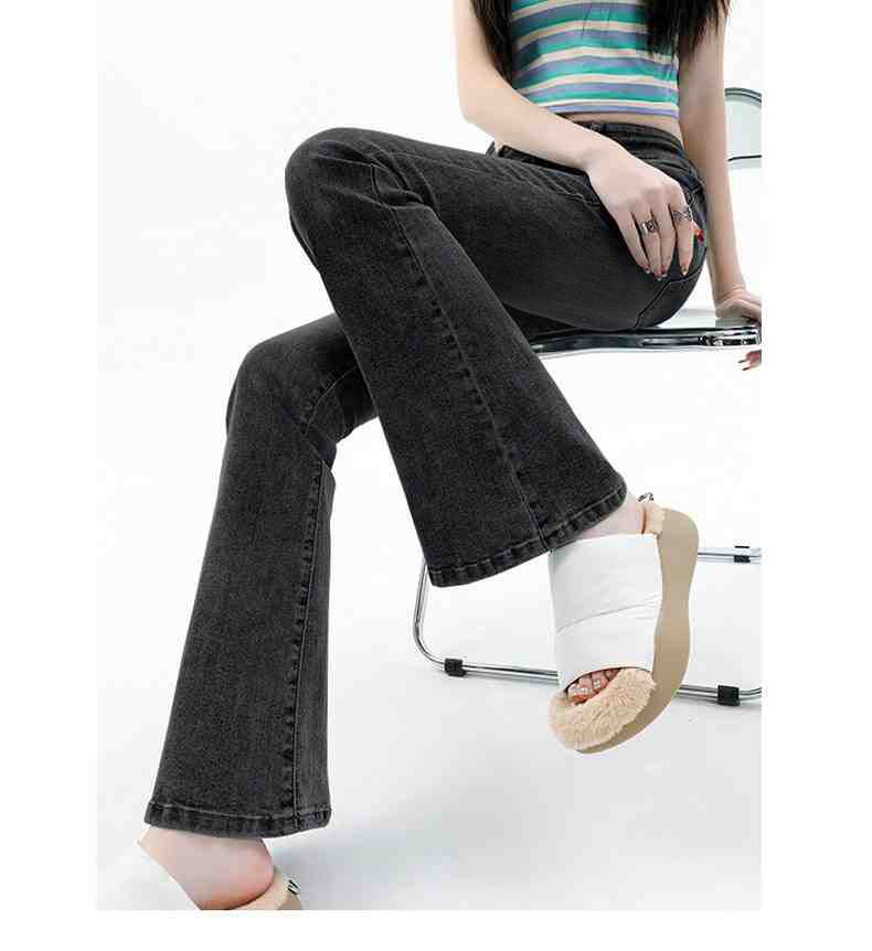 Pantalones vaqueros acampanados de cintura alta estilo americano, negros y grises, para mujer, primavera 2024, ajustados y adelgazantes, con microherradura.