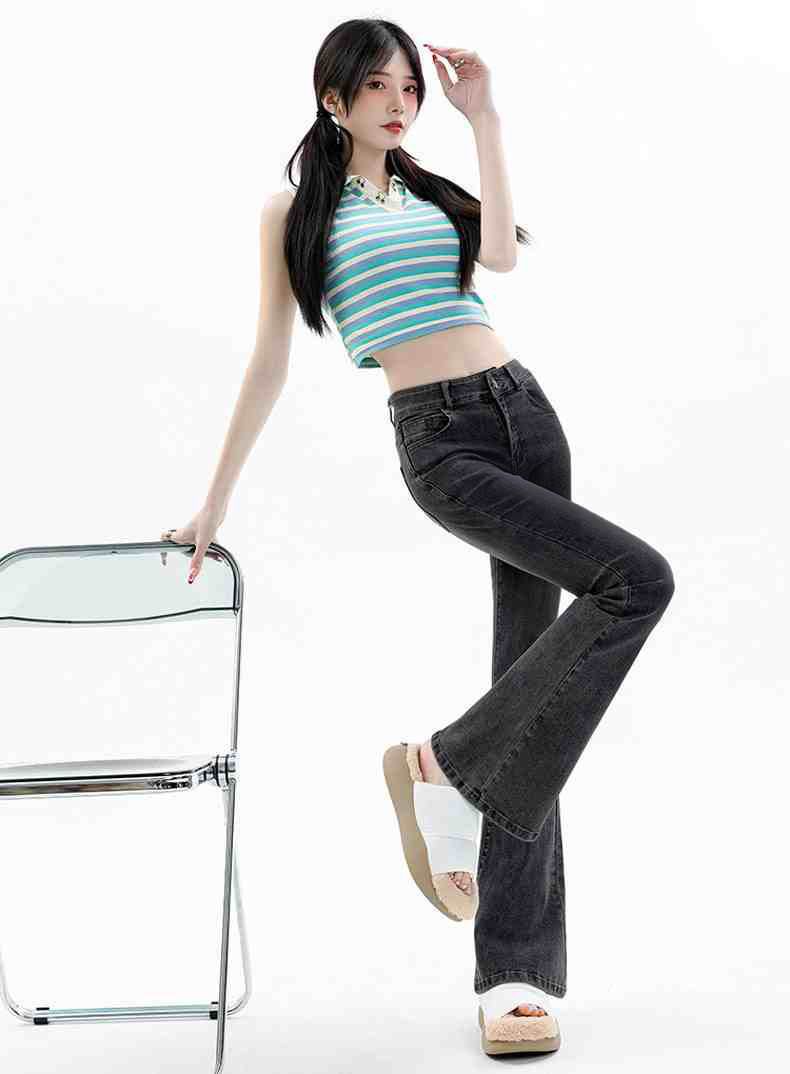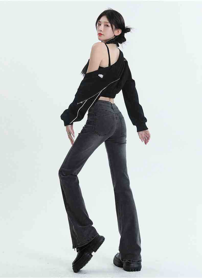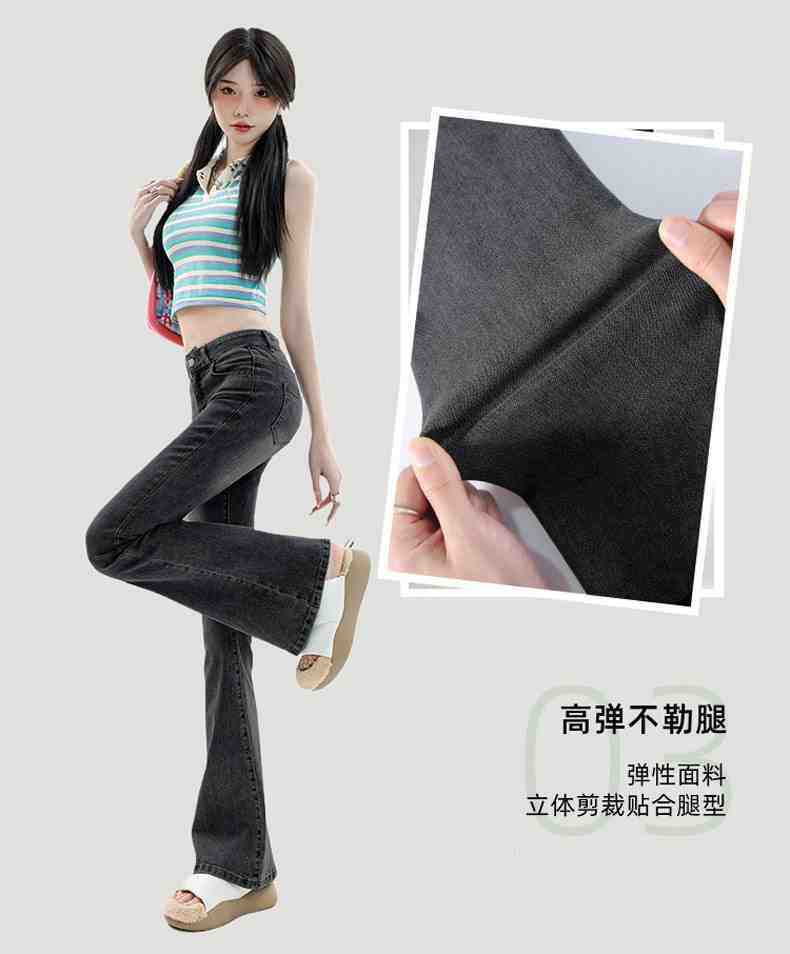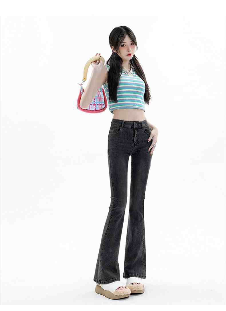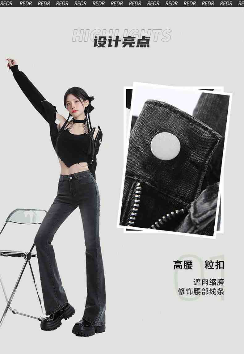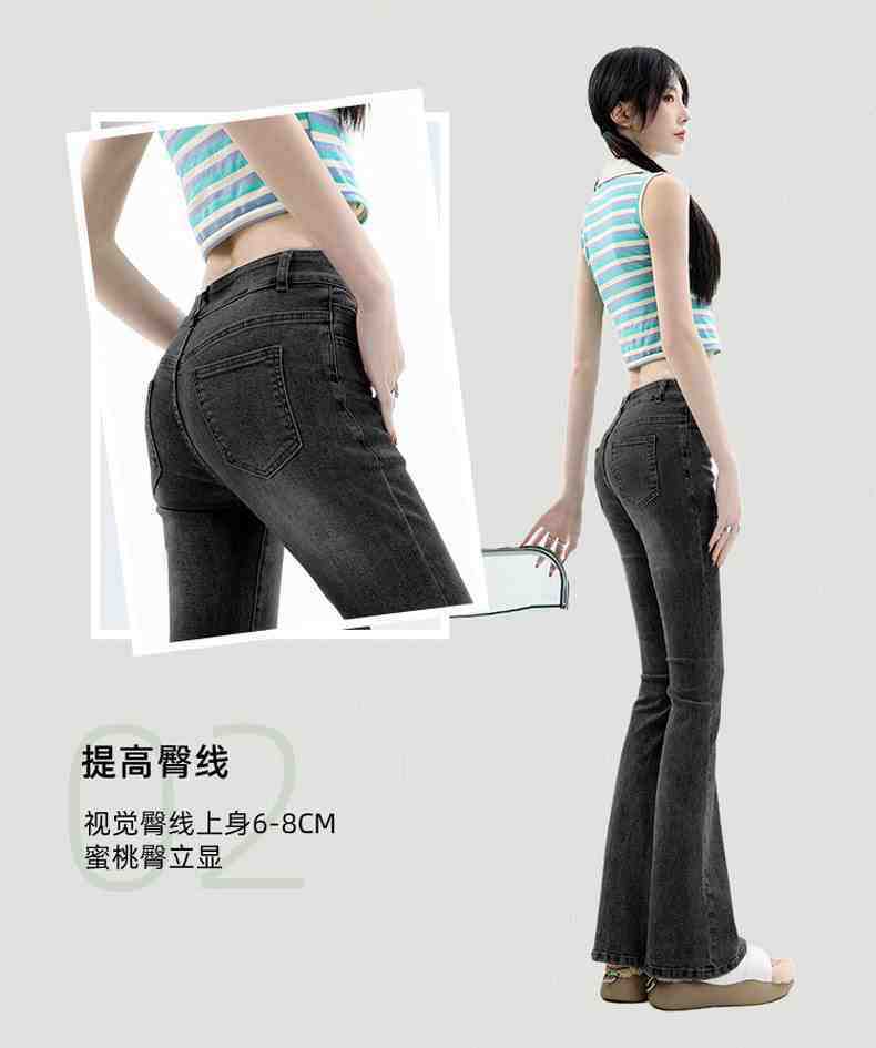 Pantalones vaqueros acampanados de cintura alta estilo americano, negros y grises, para mujer, primavera 2024, ajustados y adelgazantes, con microherradura.