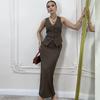 2024 Verano Nuevo Europeo y Americano Amazon Transfronterizo para Mujer Color Sólido Sin Mangas Chaleco Slim Cintura Alta Falda de Cadera Traje