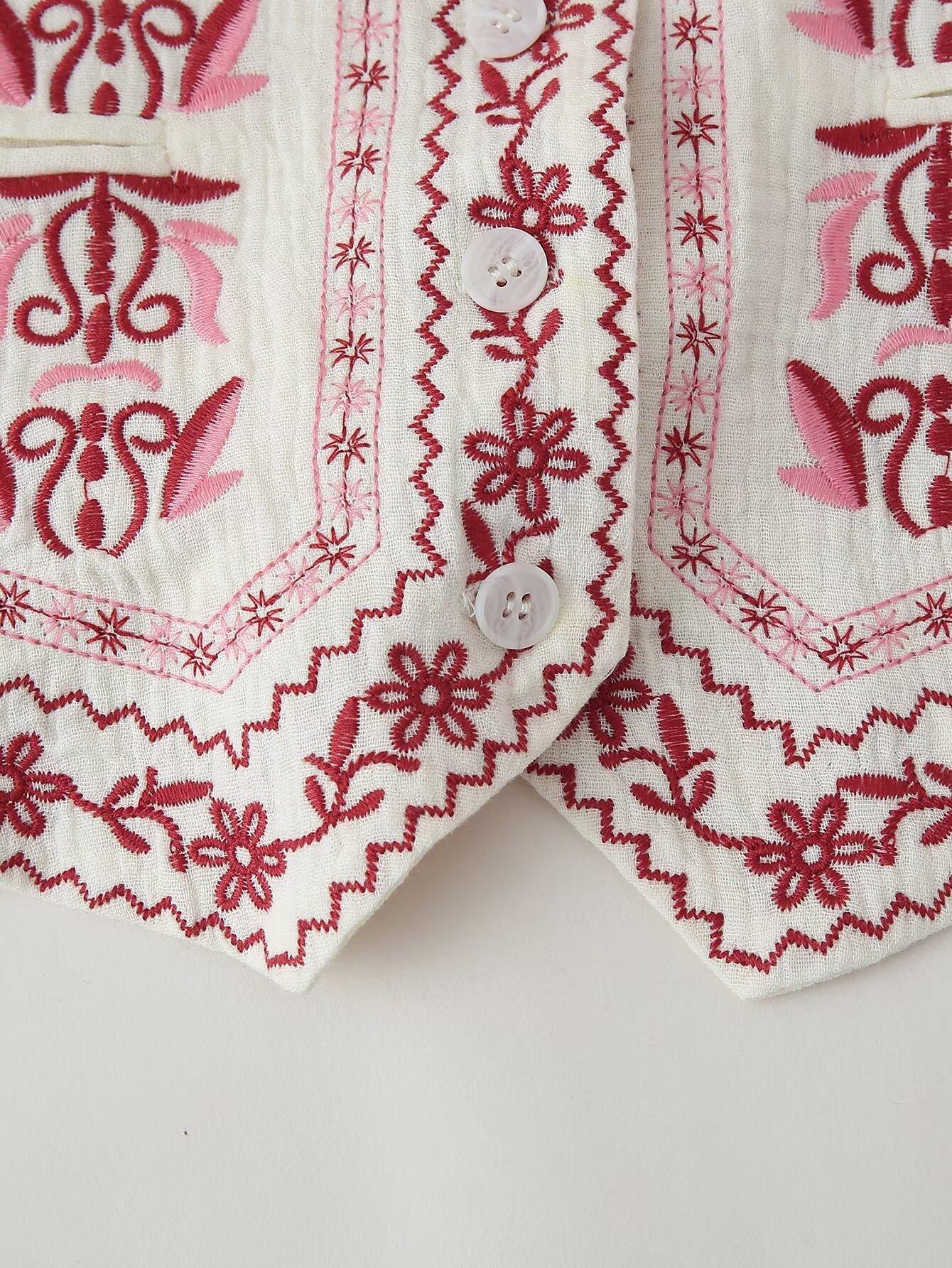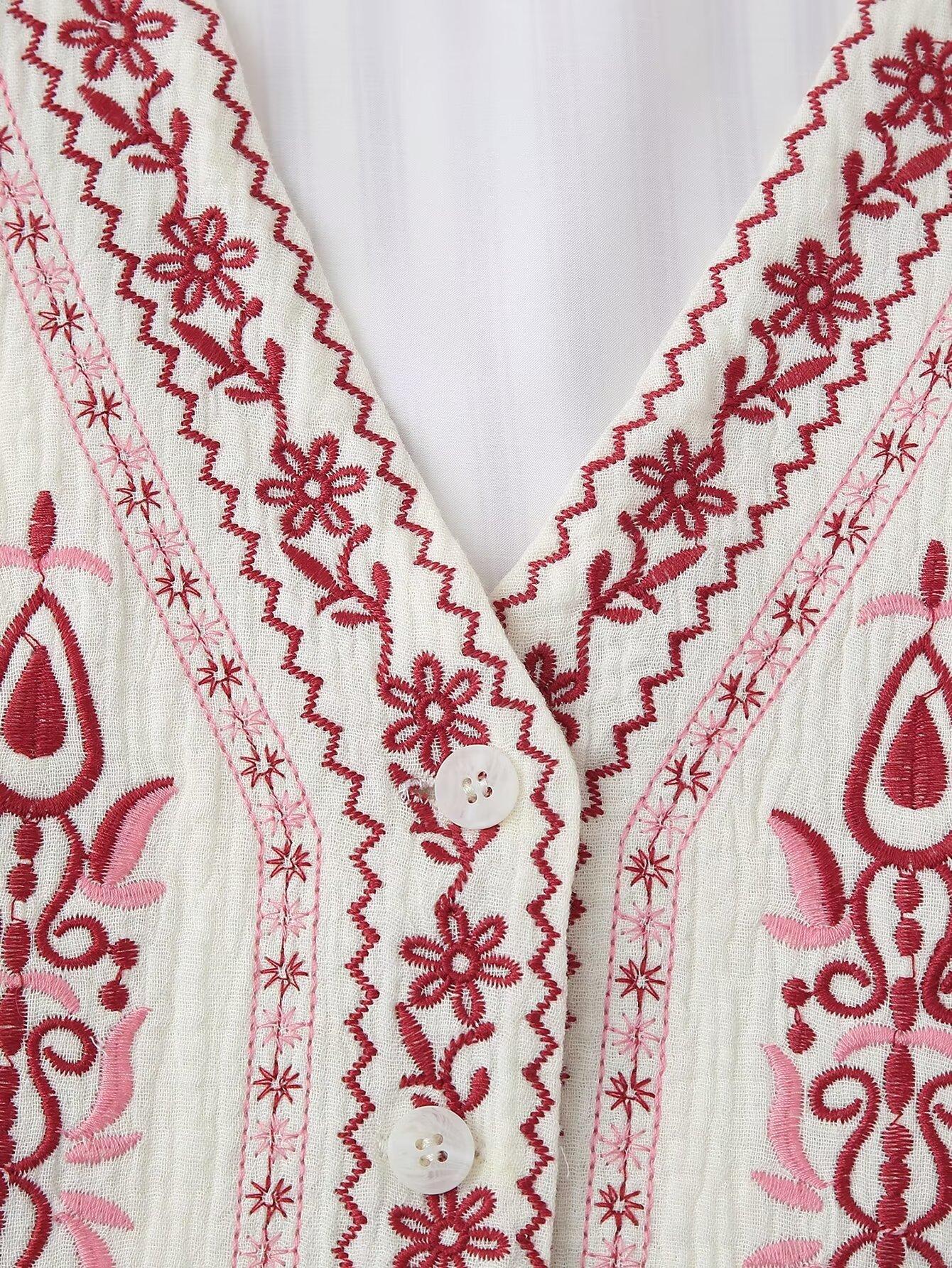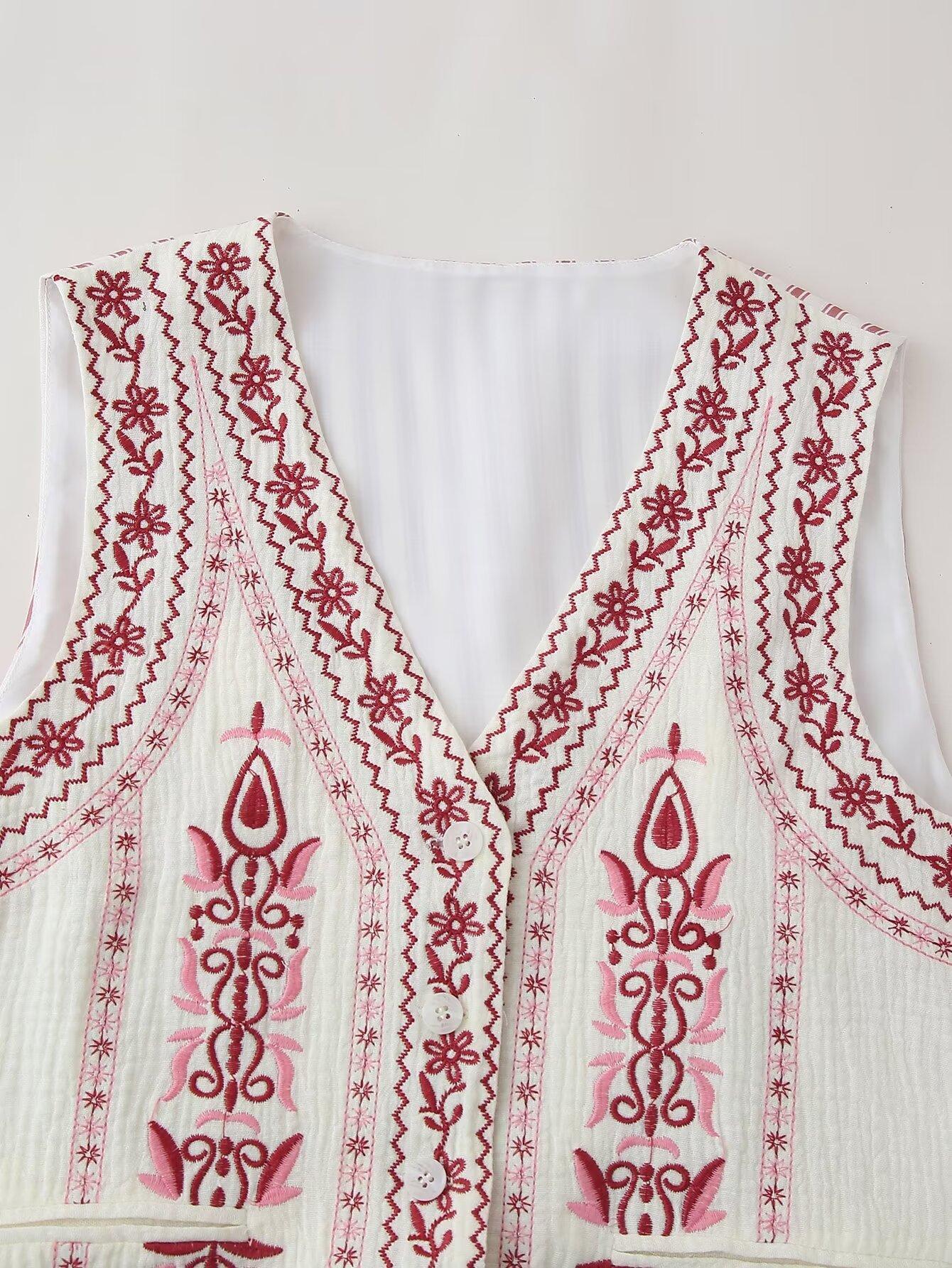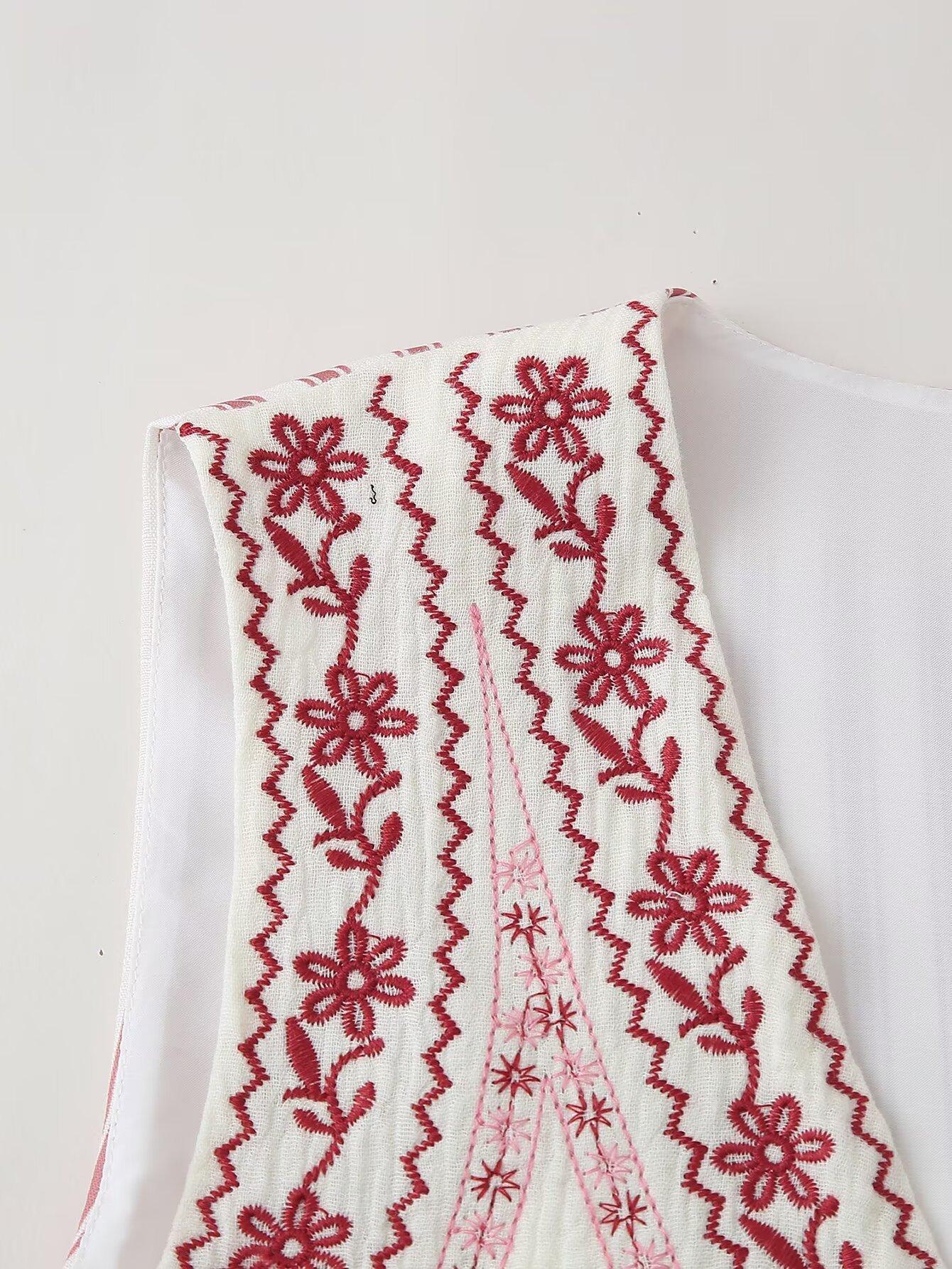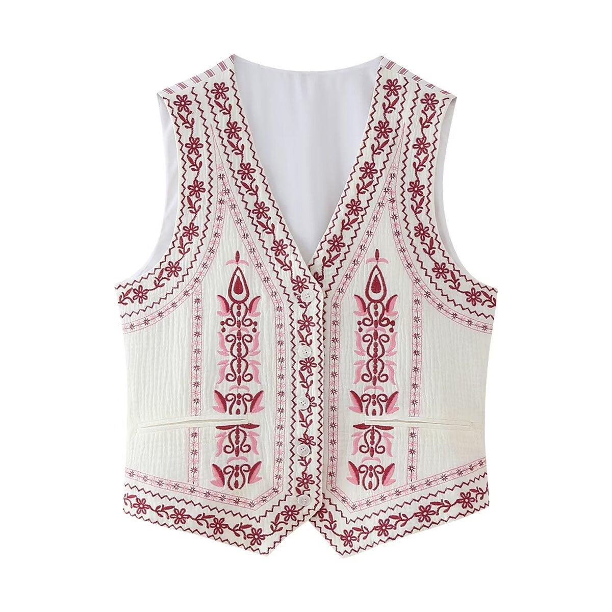 Amazon comercio exterior transfronterizo chaleco de moda callejera de verano 2024 para mujer europea y americana, chaleco bordado con cuello en V