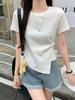 Camiseta de manga corta irregular de algodón puro con hombros descubiertos para mujer, diseño de verano, estilo nicho, plisada, ajustada, combinable con todo, moderna