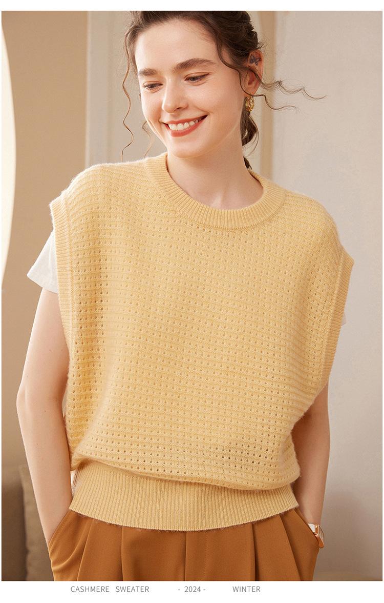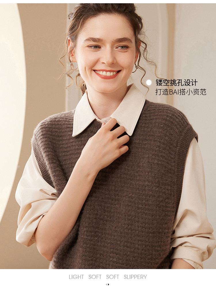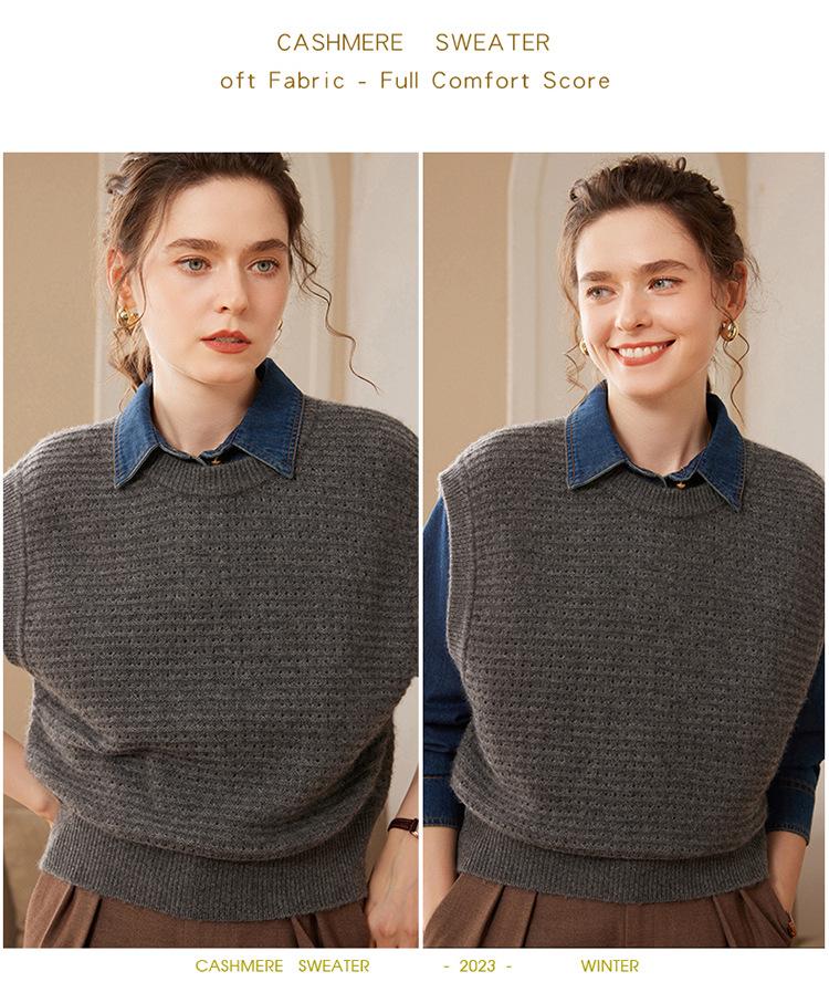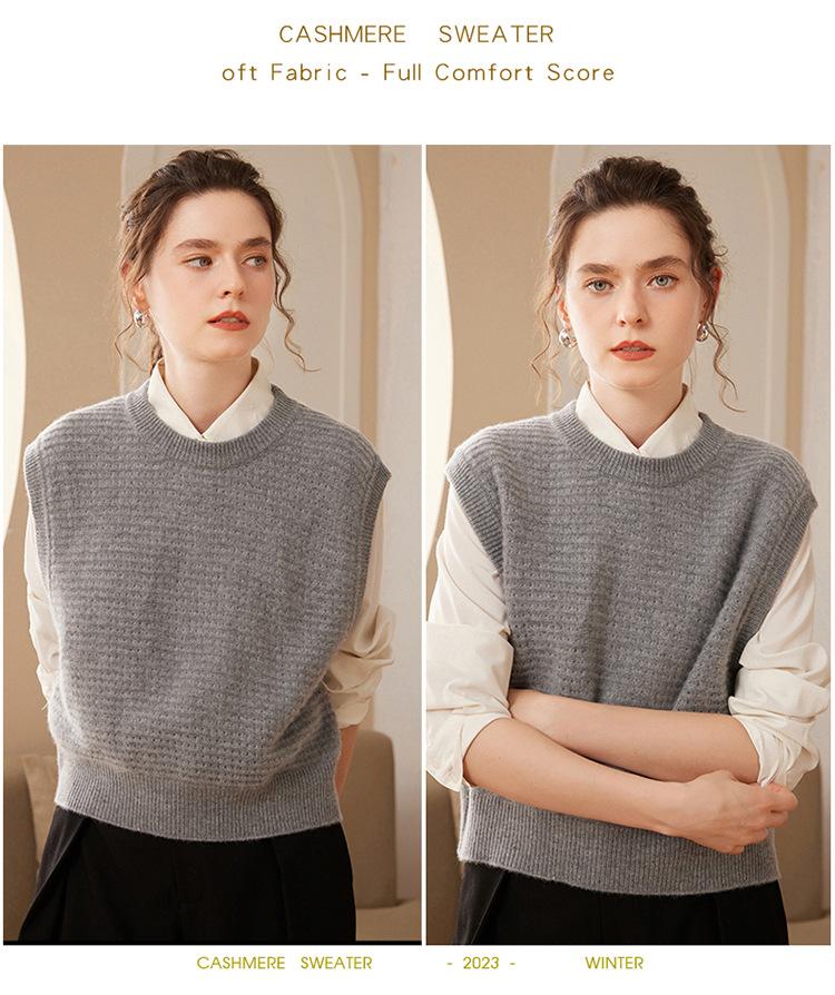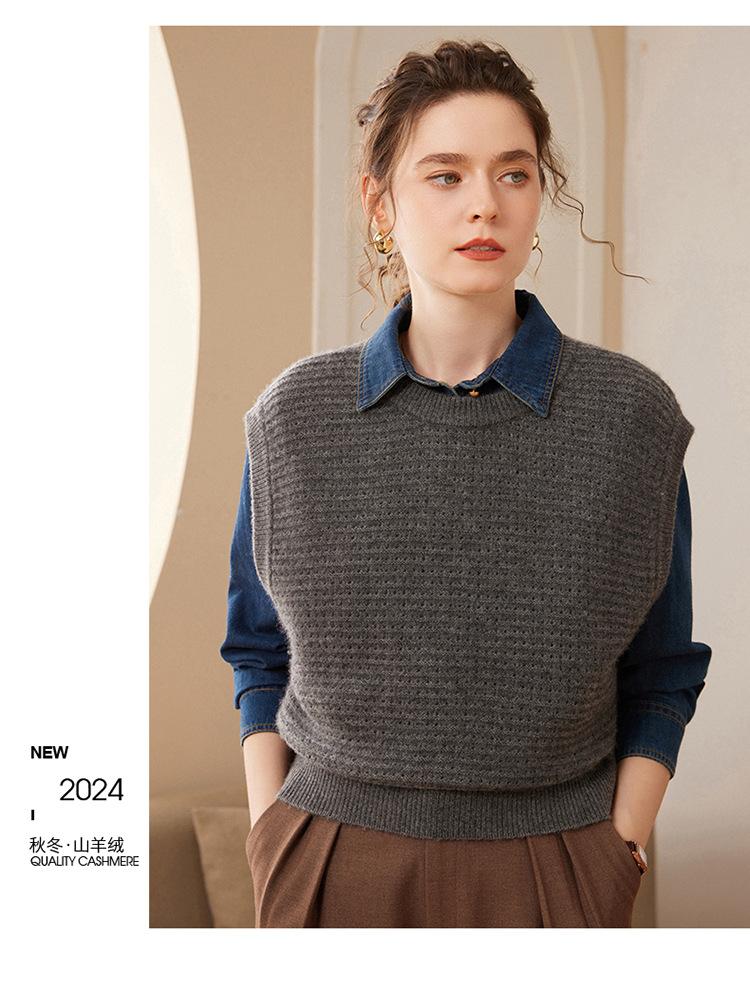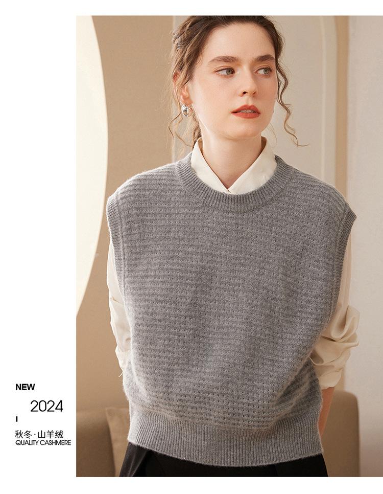 Otoño e Invierno Nuevo Chaleco sin Mangas de Cuello Redondo Cómodo Suave Amigable con la Piel Versátil Cárdigan Exterior Tejido de Cachemira para Mujer