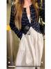 Cárdigan de punto a rayas elástico de lyocell de estilo francés