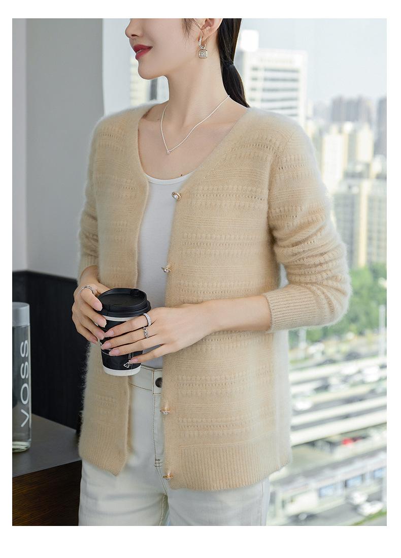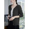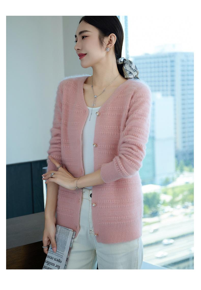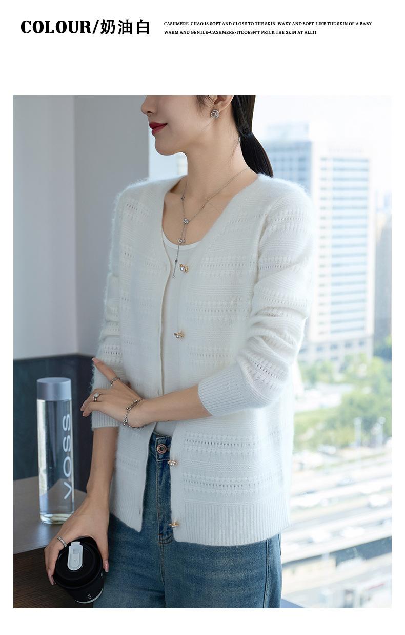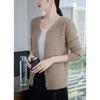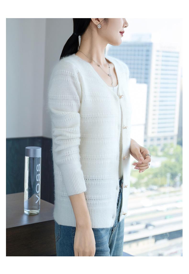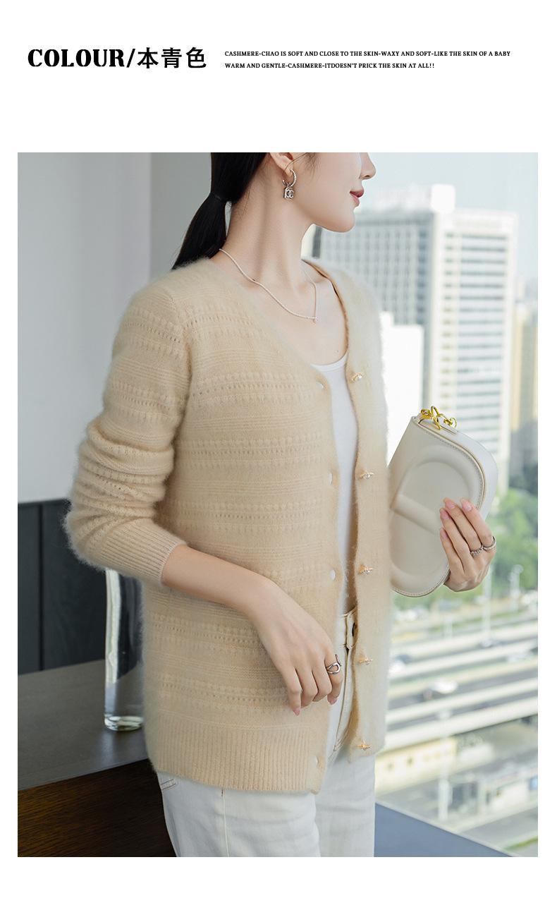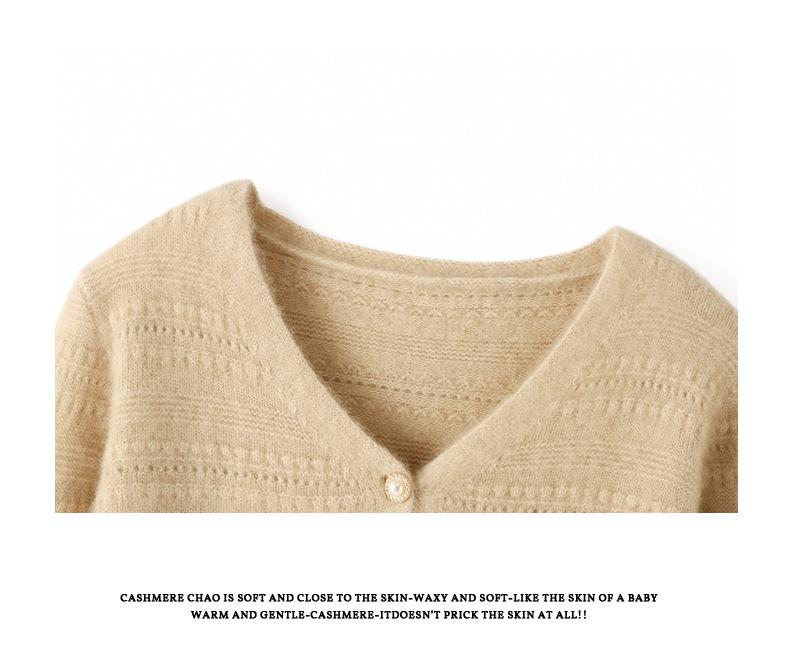 Cárdigan de punto de cachemira con cuello en V para mujer, suéter de color liso, chaqueta hueca de moda, siete pines gruesos, otoño e invierno de 2024