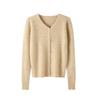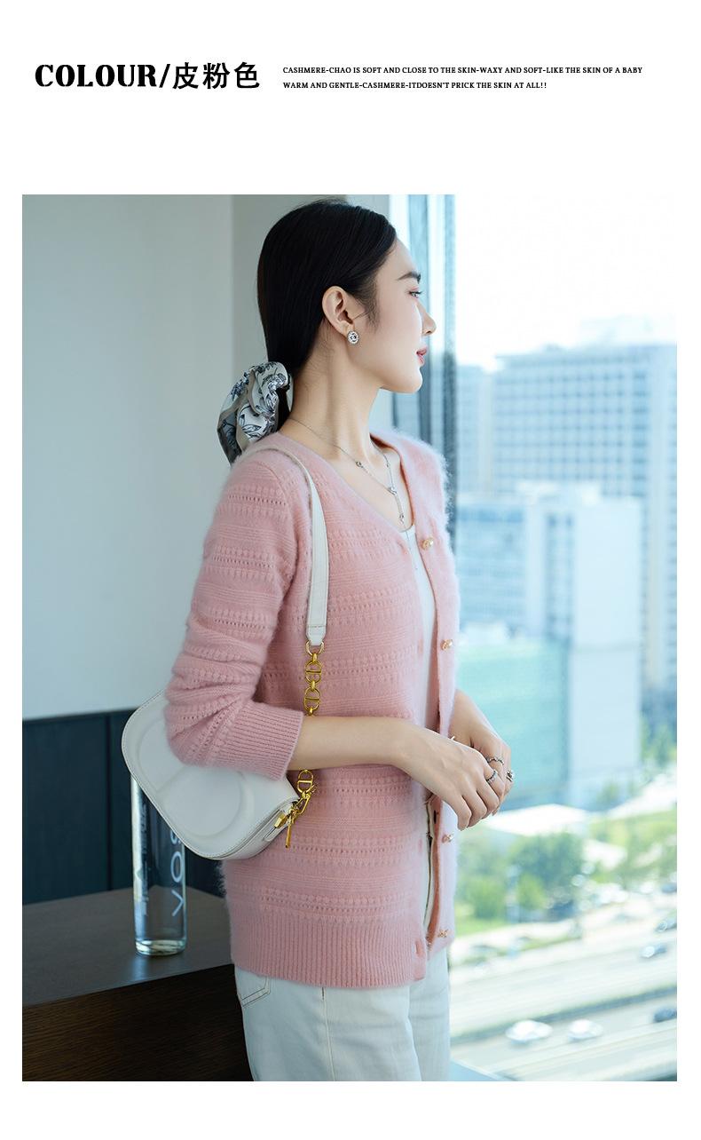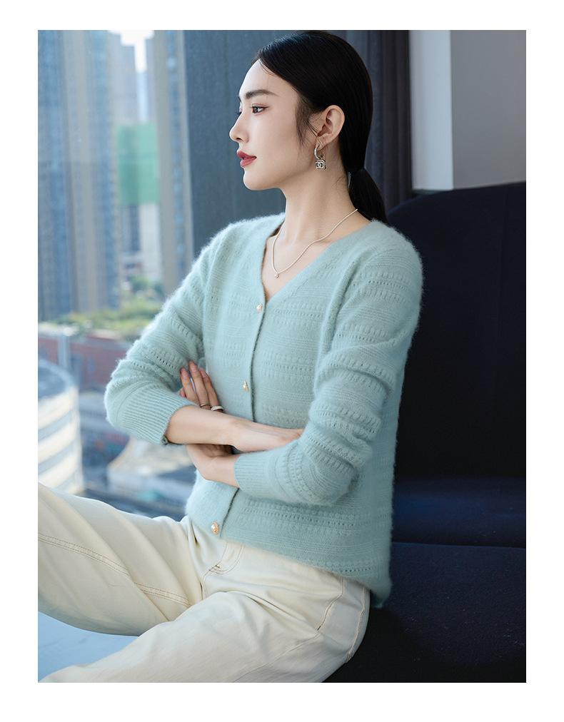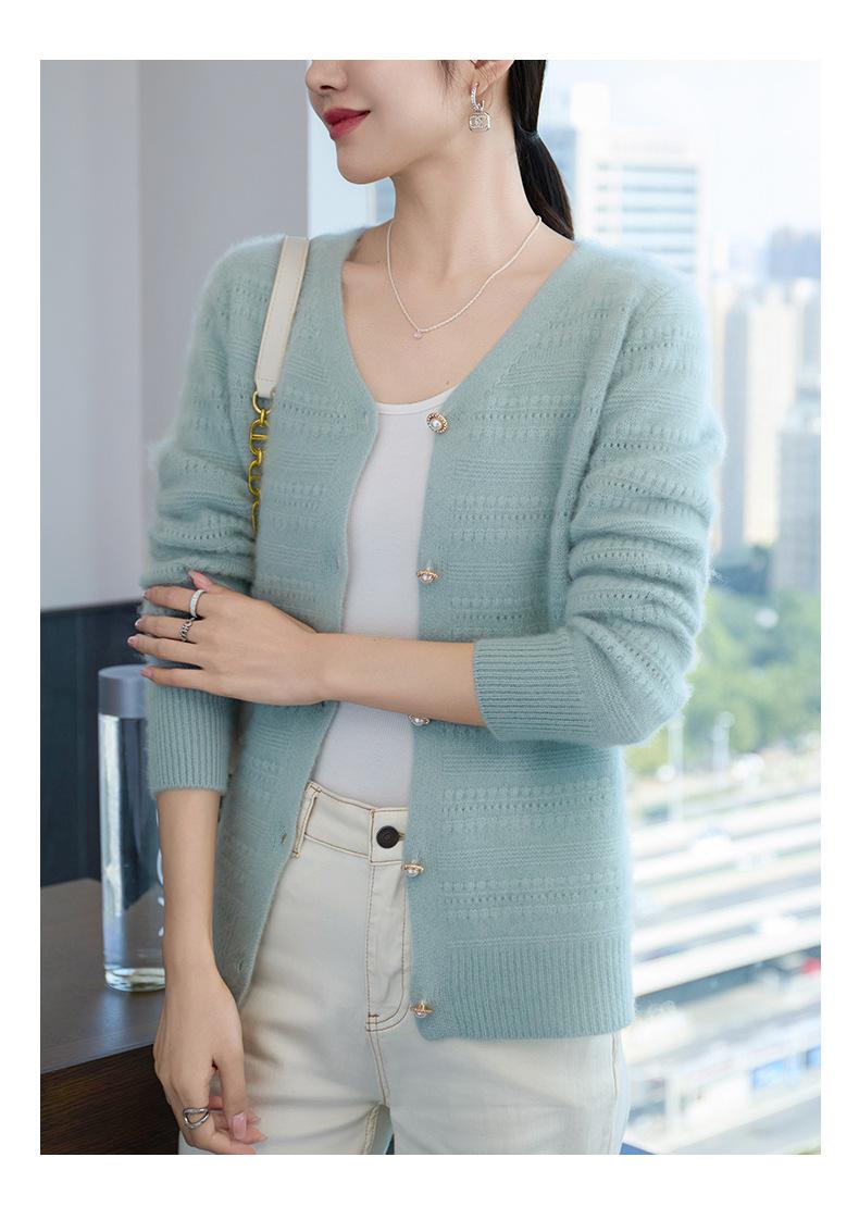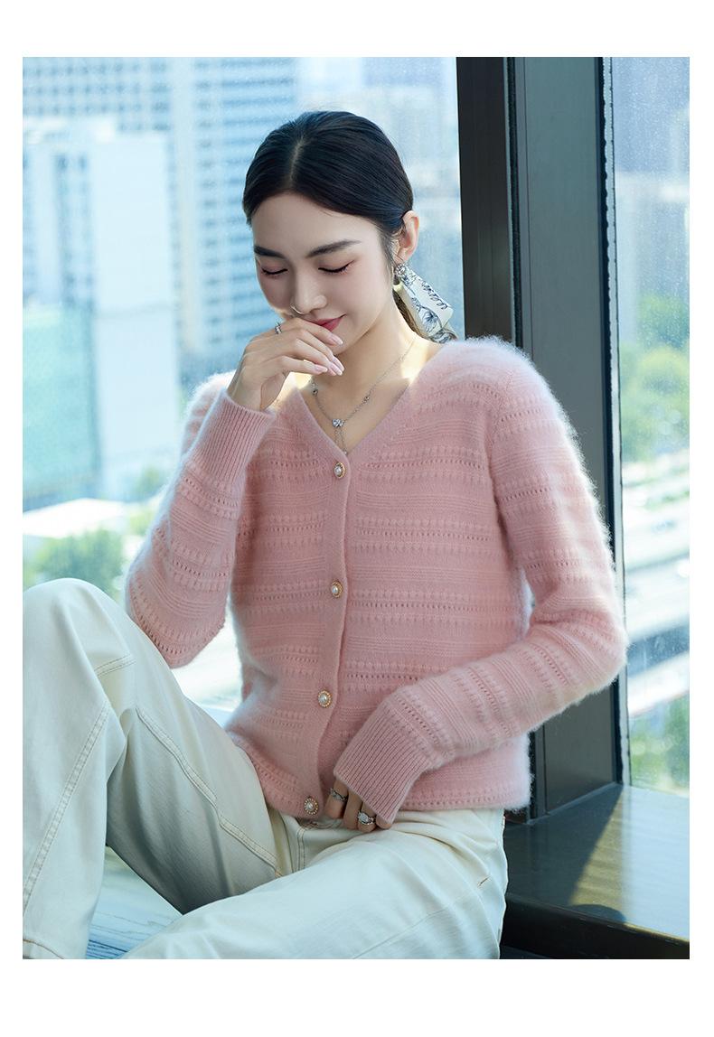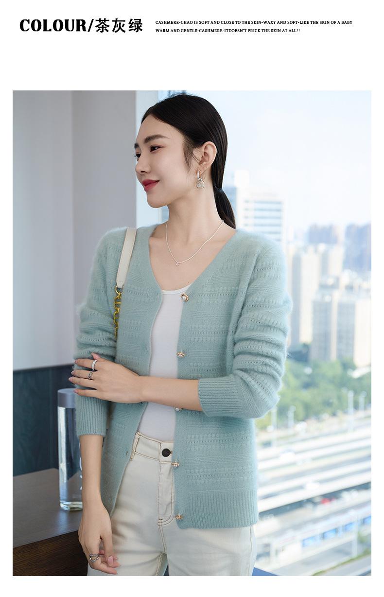 Cárdigan de punto de cachemira con cuello en V para mujer, suéter de color liso, chaqueta hueca de moda, siete pines gruesos, otoño e invierno de 2024