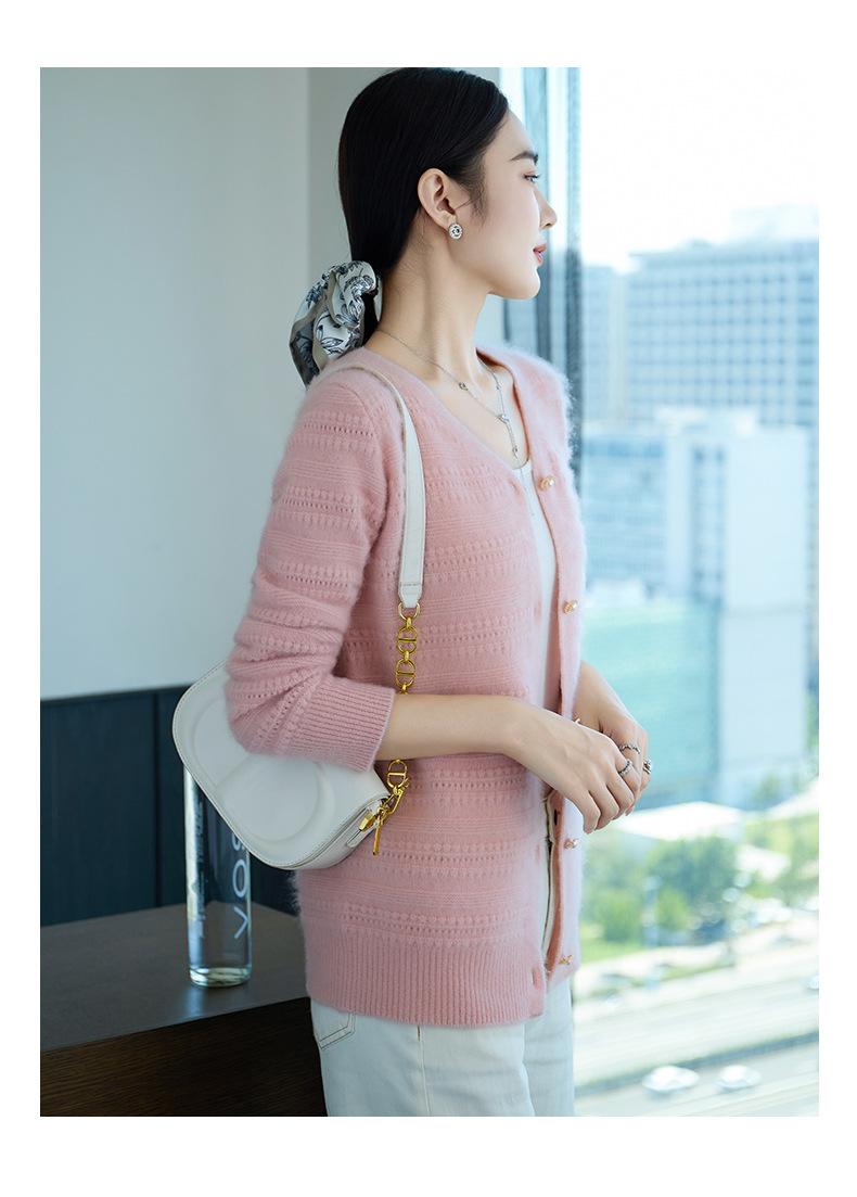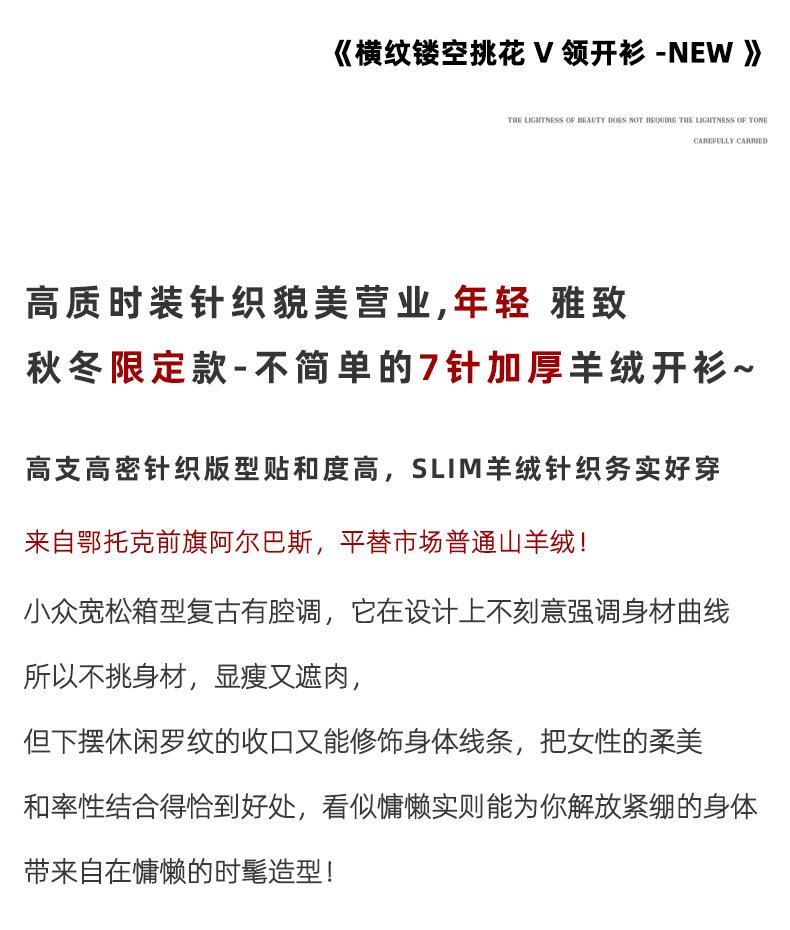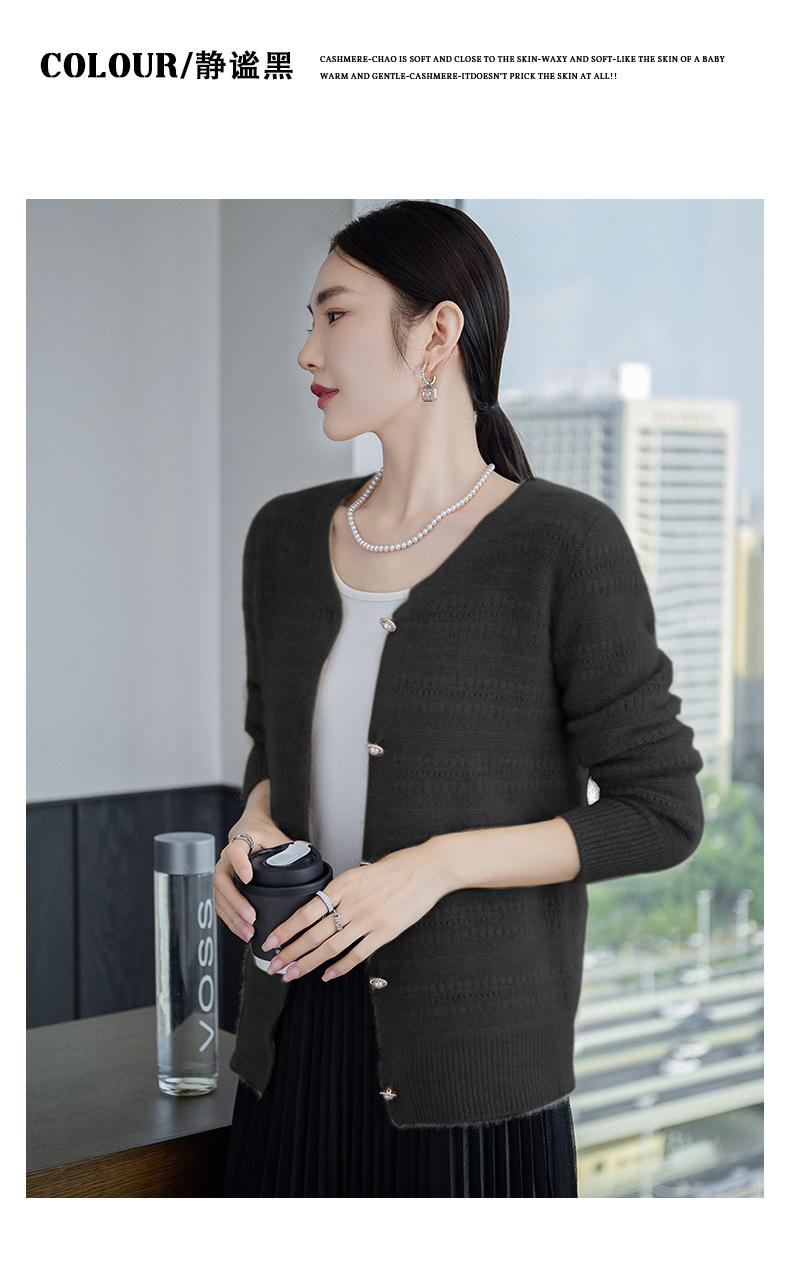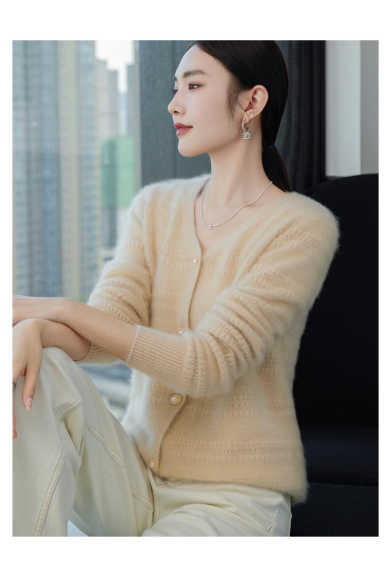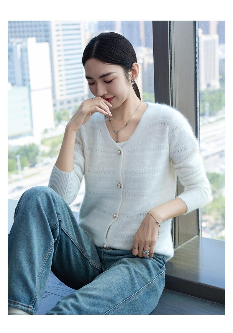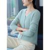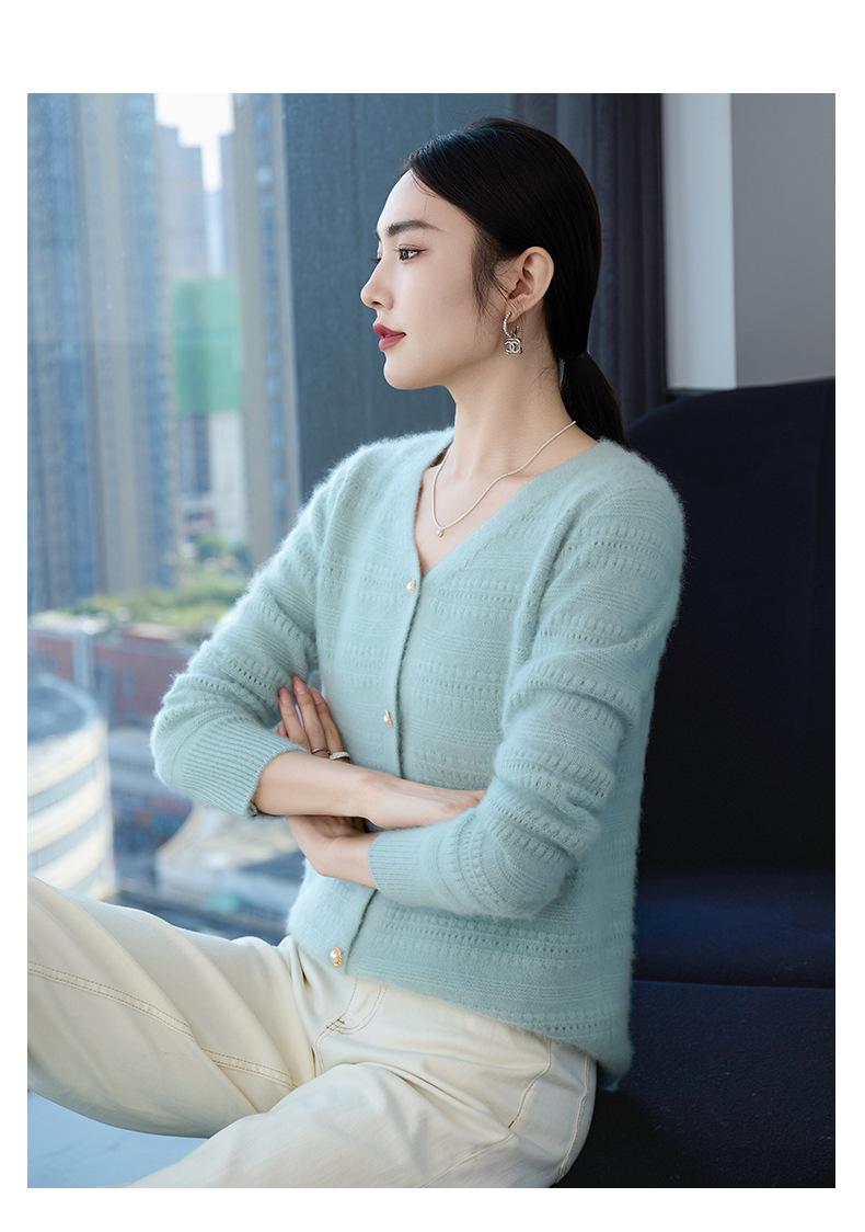 Cárdigan de punto de cachemira con cuello en V para mujer, suéter de color liso, chaqueta hueca de moda, siete pines gruesos, otoño e invierno de 2024