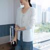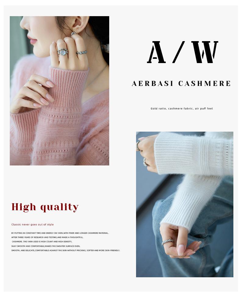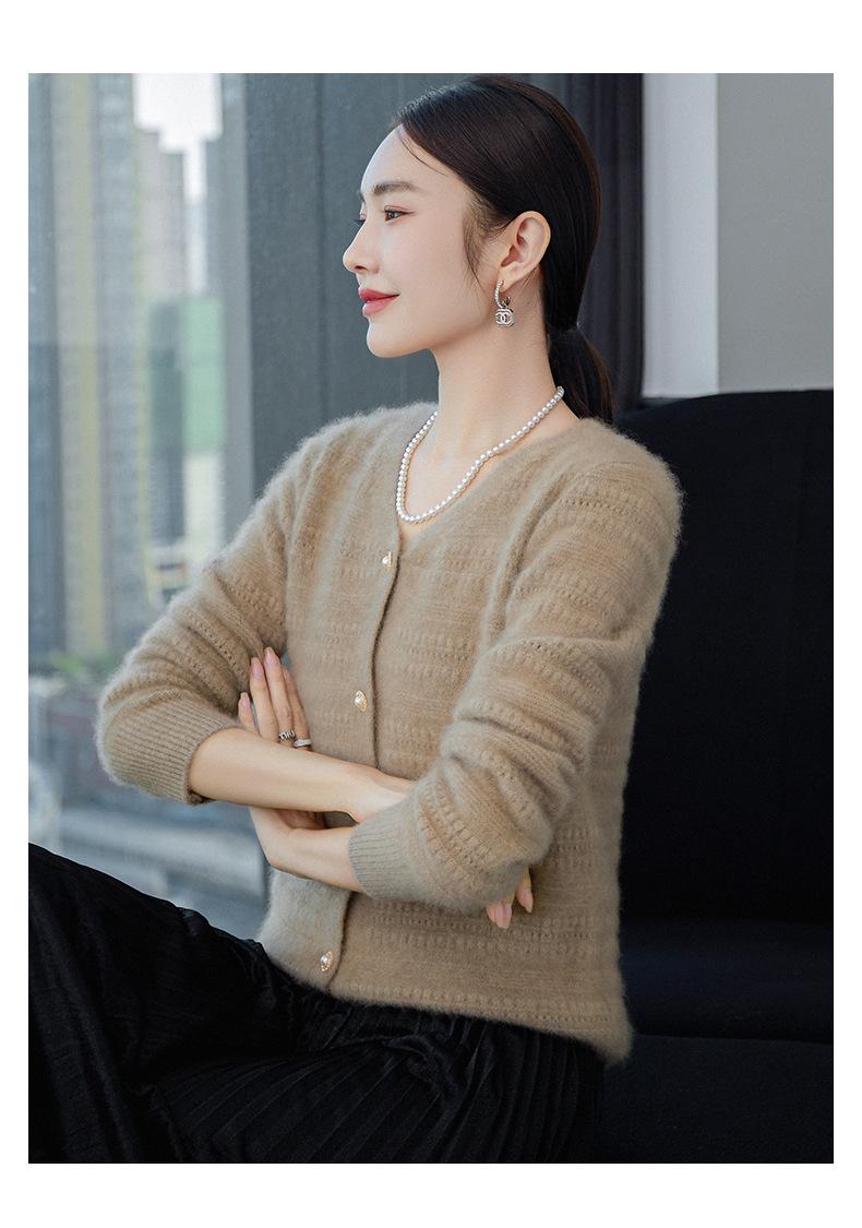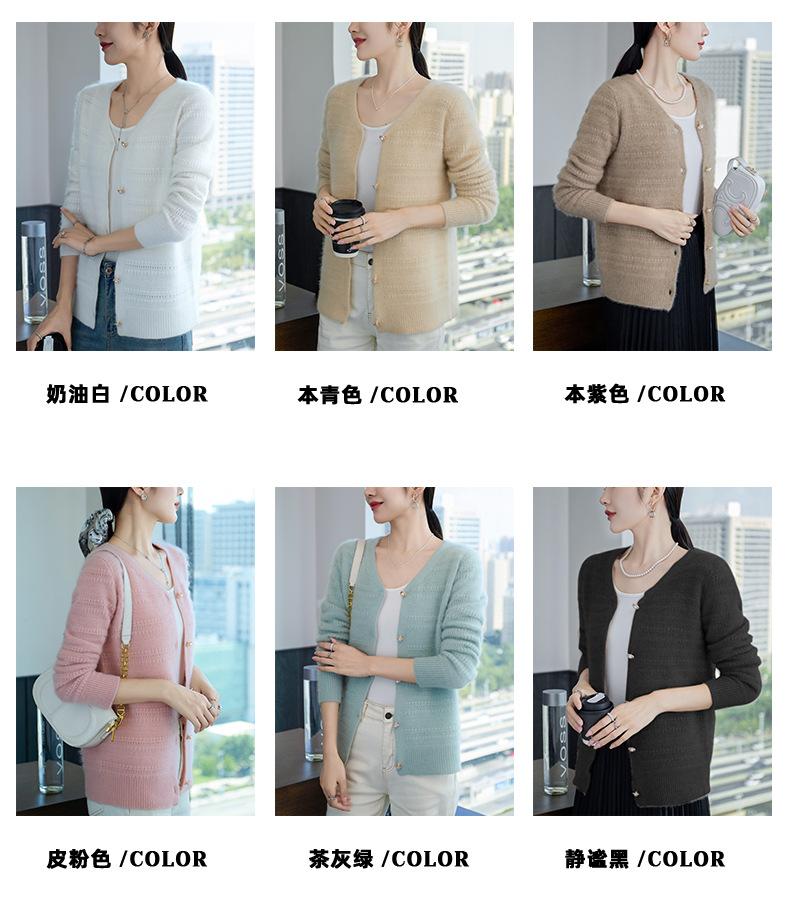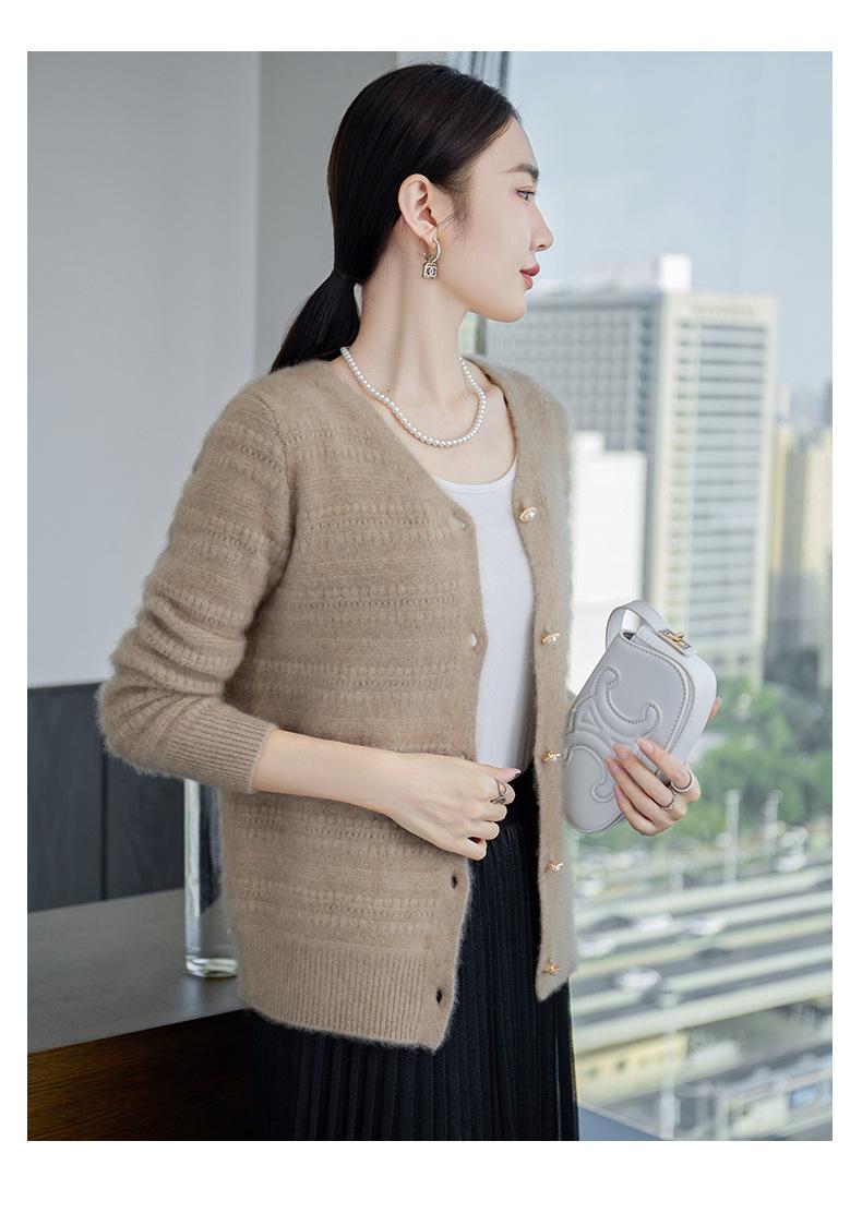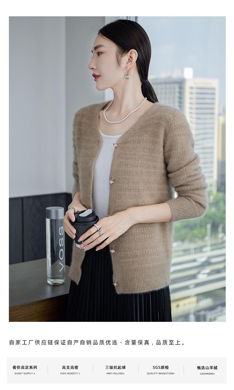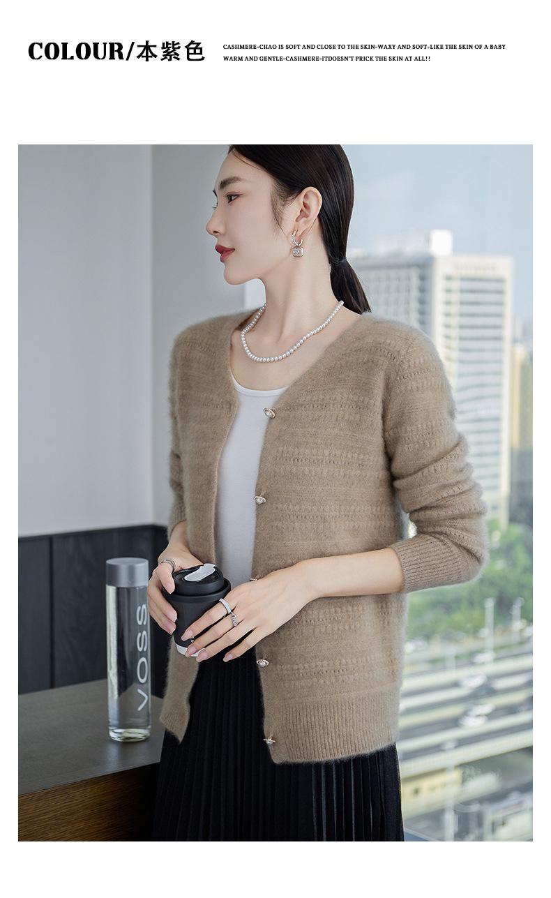 Cárdigan de punto de cachemira con cuello en V para mujer, suéter de color liso, chaqueta hueca de moda, siete pines gruesos, otoño e invierno de 2024