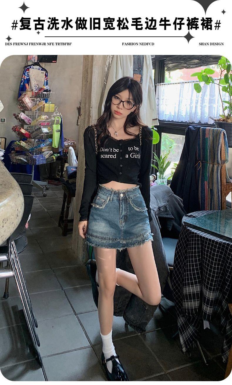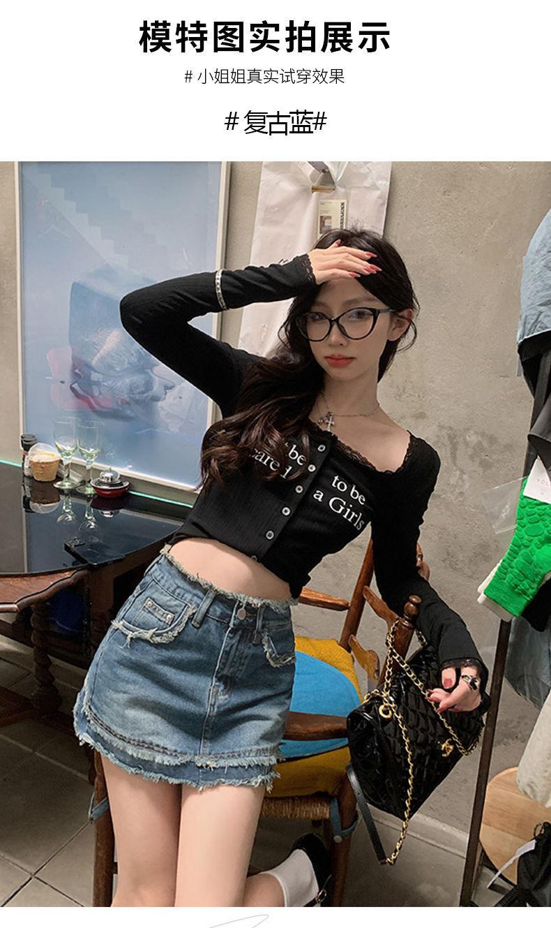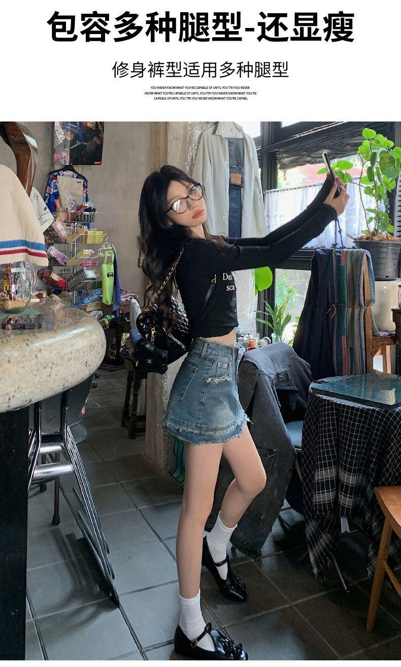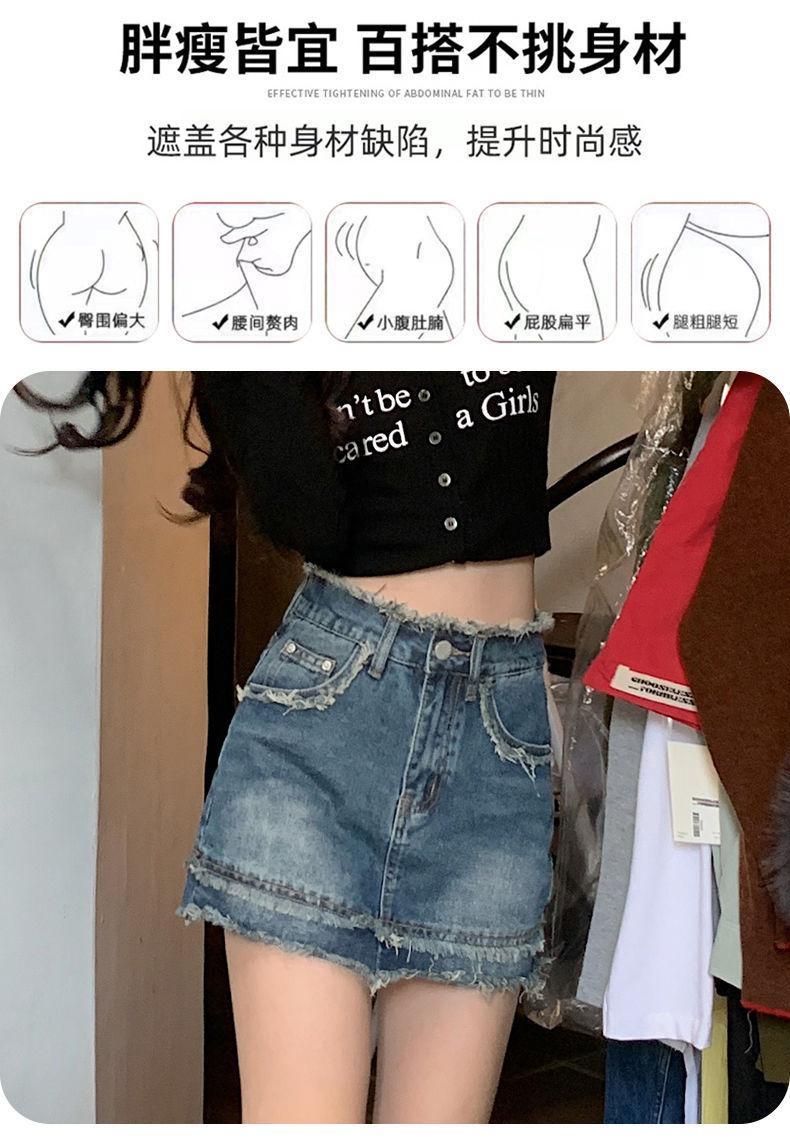Falda de mezclilla rústica para mujer Verano 2024 Nueva Retro Antitransparente Versátil Línea A Falda Corta de Chica Hot