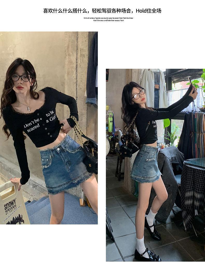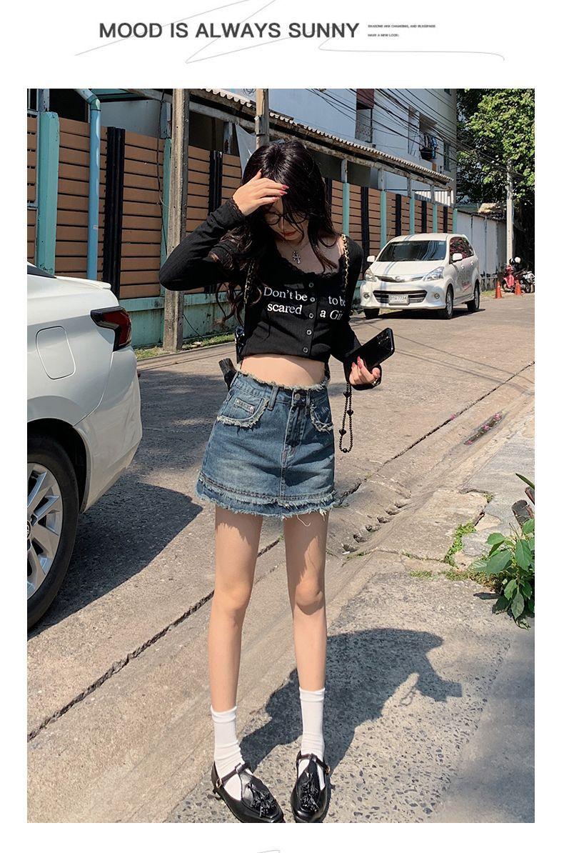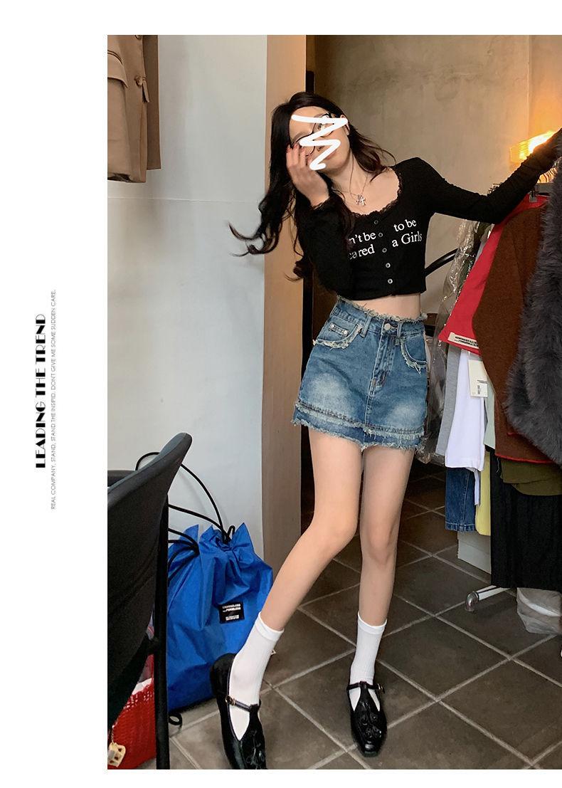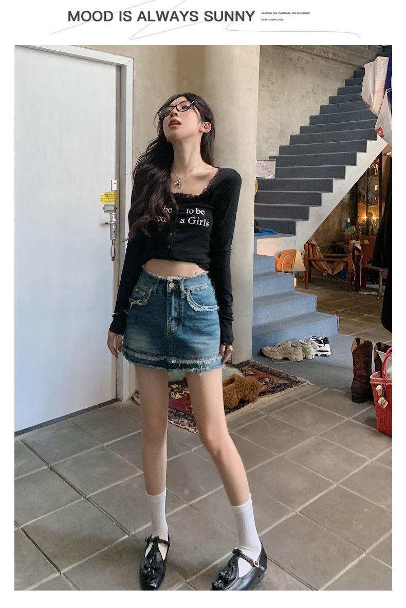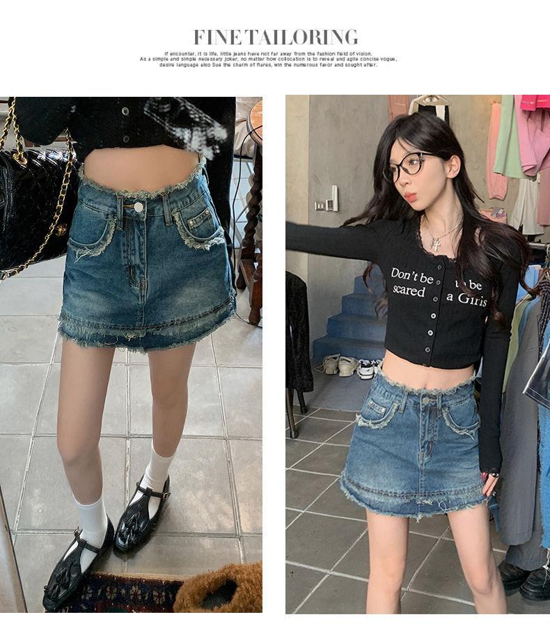 Falda de mezclilla rústica para mujer Verano 2024 Nueva Retro Antitransparente Versátil Línea A Falda Corta de Chica Hot