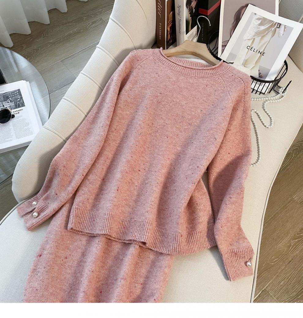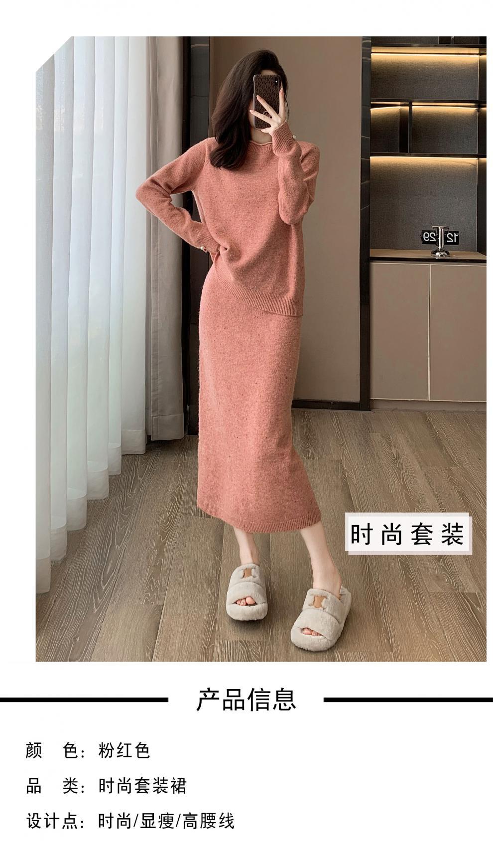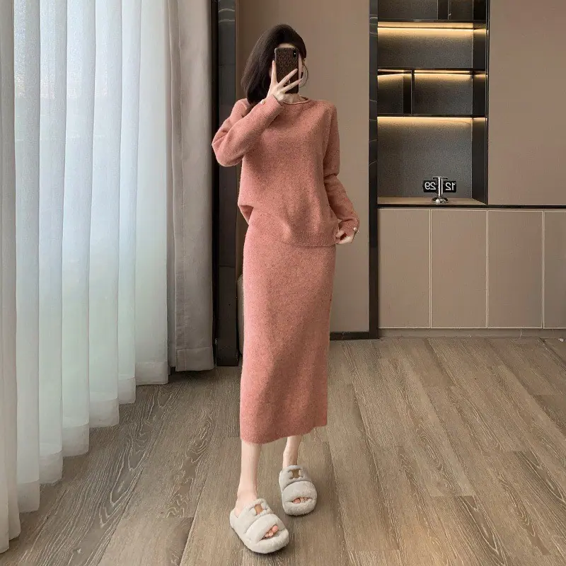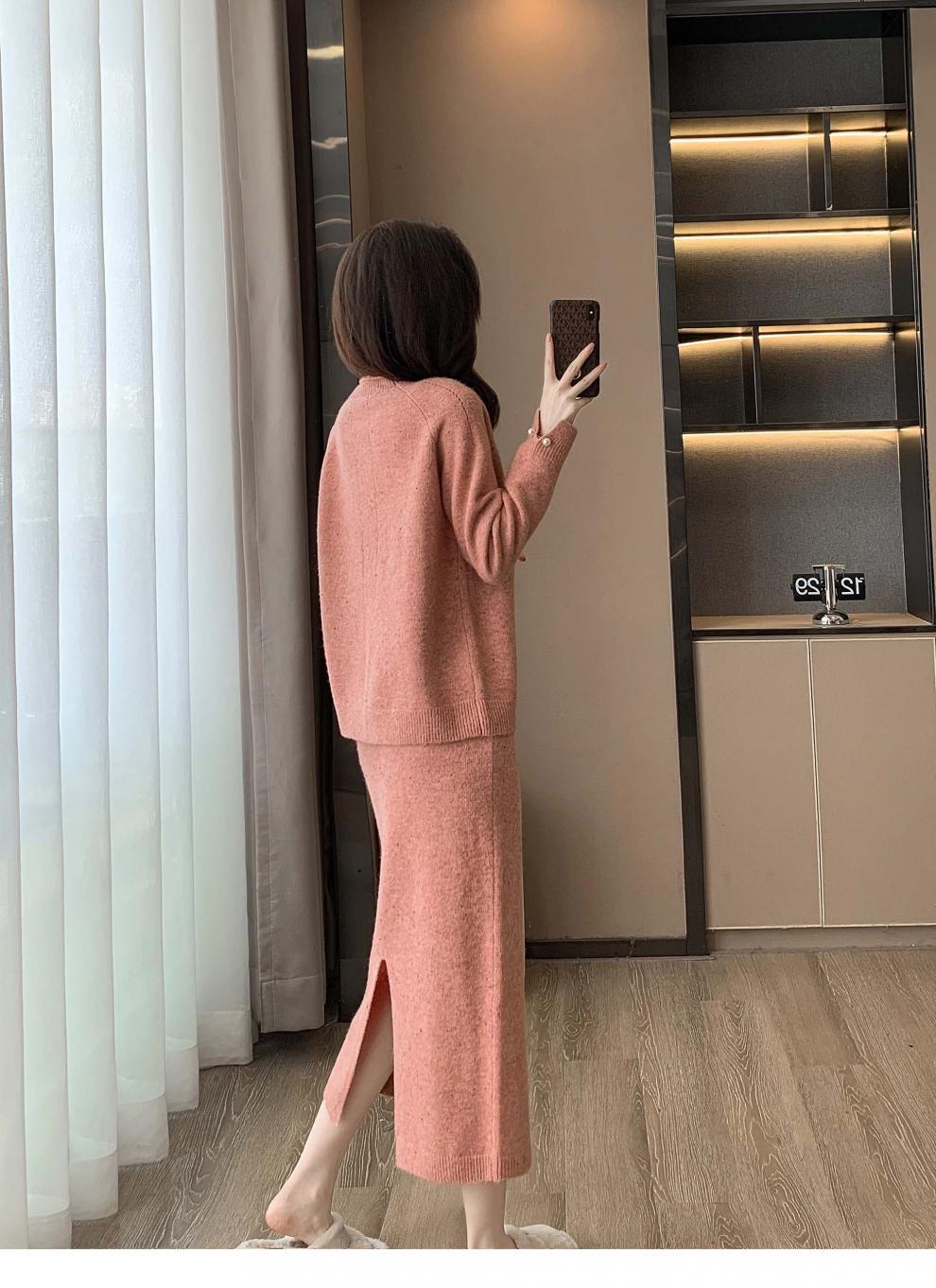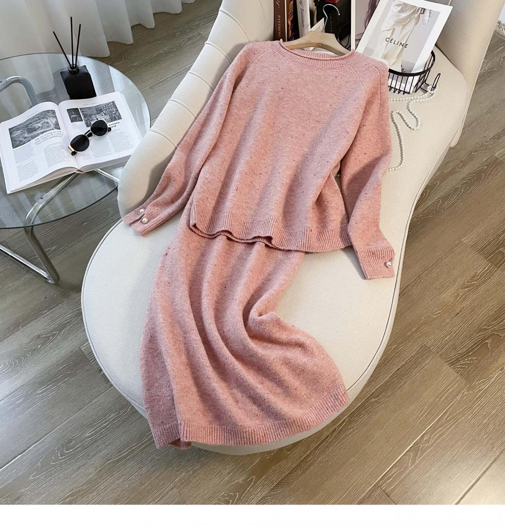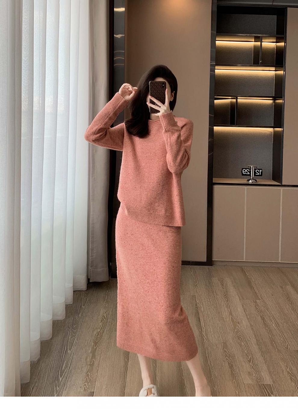 Falda de Punto Estilo Perezoso Estilo Francés para Mujer Otoño e Invierno Nuevo Estilo Top y Falda Rosa Suave Falda de Dos Piezas
