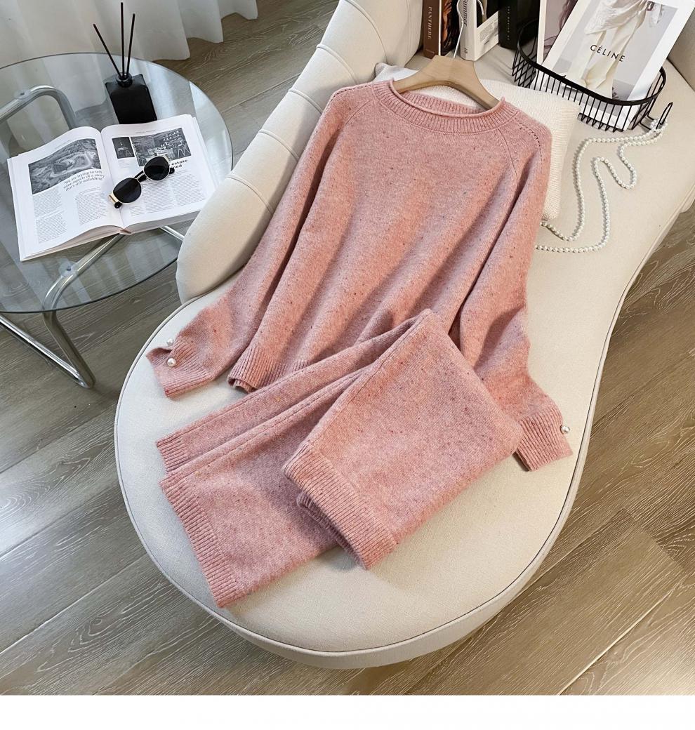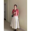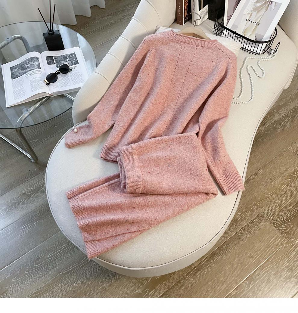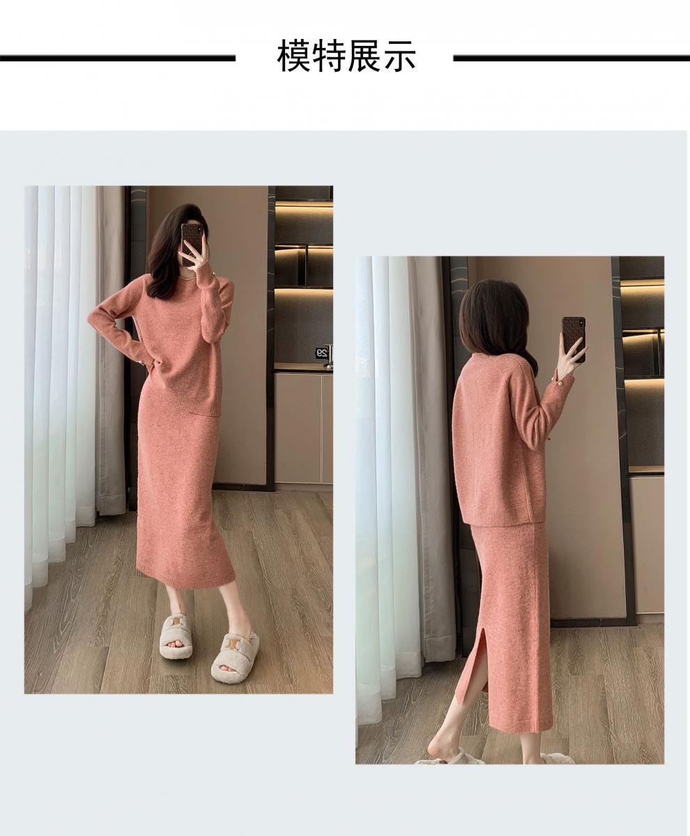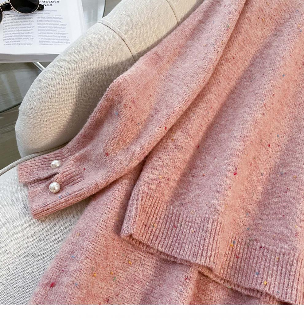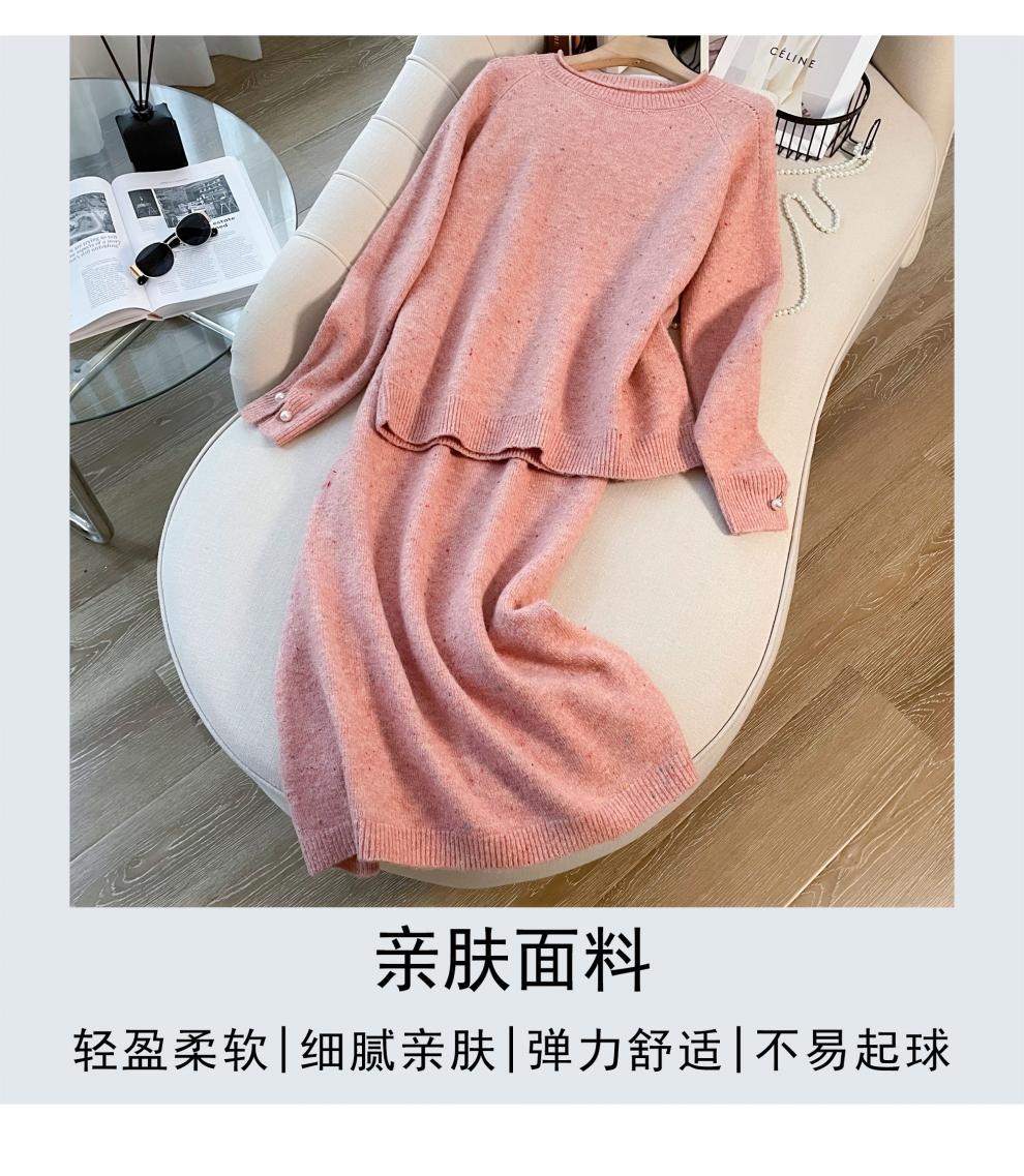 Falda de Punto Estilo Perezoso Estilo Francés para Mujer Otoño e Invierno Nuevo Estilo Top y Falda Rosa Suave Falda de Dos Piezas