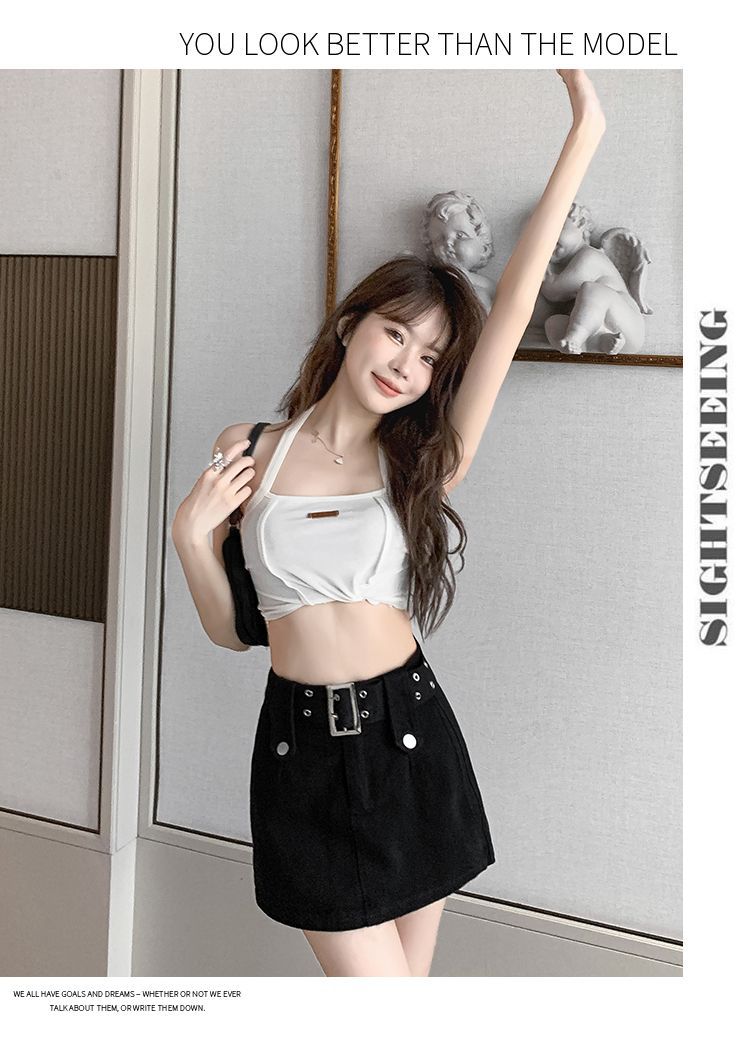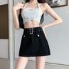 Falda vaquera de cintura alta para mujer, falda corta, verano 2024, nueva, ajustada, antiluz, corte A, culotte a la cadera