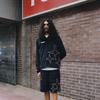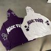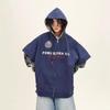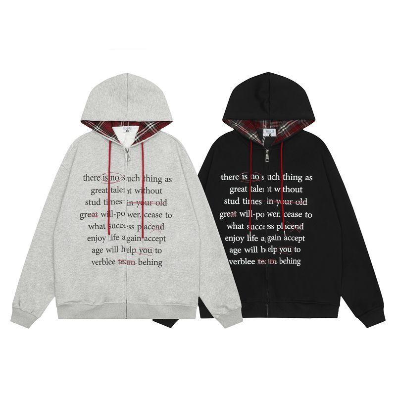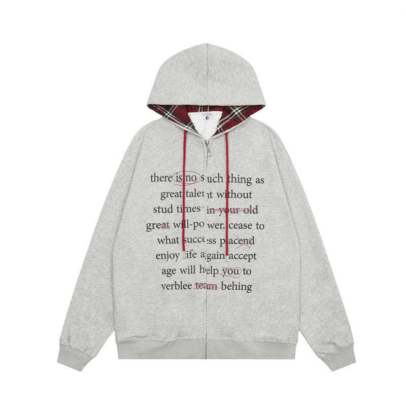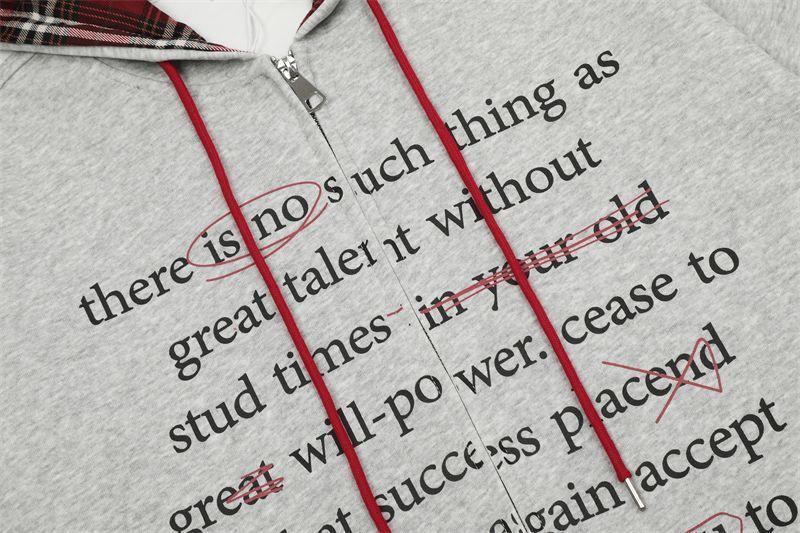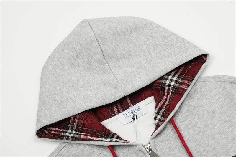 Sudadera con capucha estilo americano, marca de moda retro, otoño e invierno 2024, estilo universitario americano, cárdigan con costuras a cuadros, sudadera con capucha para mujer