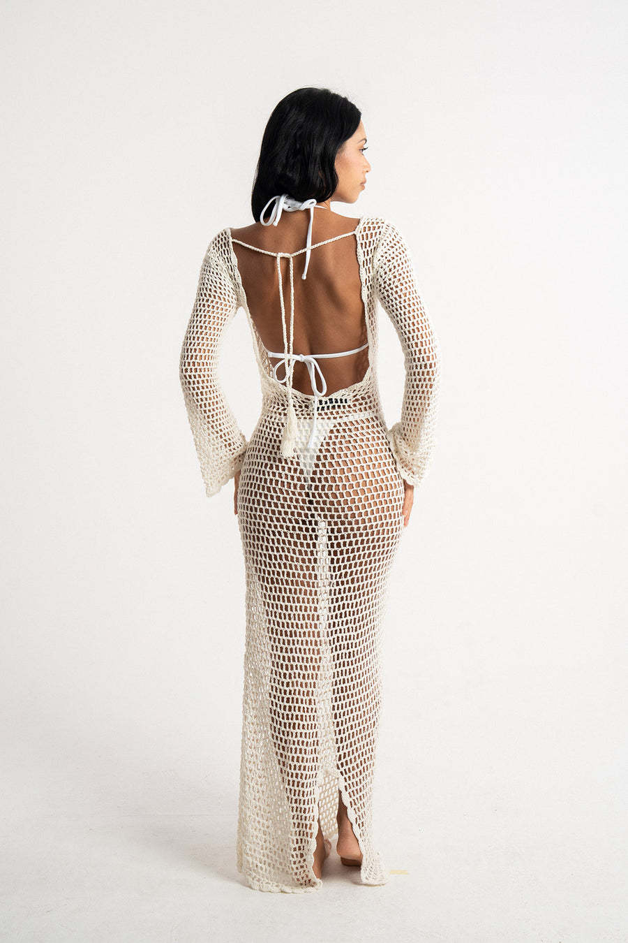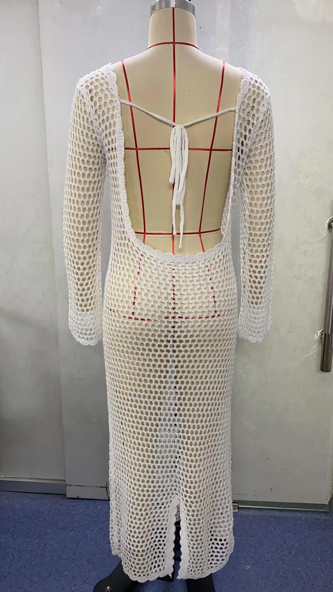 Vestido playero de punto con blusa de verano para mujer europea y americana de Amazon, sexy, con perspectiva hueca y sin espalda.