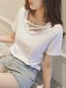 Camiseta de manga corta para mujer, nueva camiseta holgada de verano de estilo coreano, diseño Sense Niche, top de algodón con cuello en V cruzado y media manga.