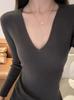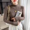 Suéter de punto de cuello medio alto de alta gama para mujer, suave y encerado, de otoño e invierno, ajustado, de manga larga, con hombros descubiertos.