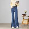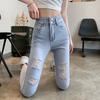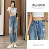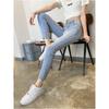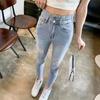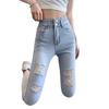 Pantalones vaqueros rotos de pierna pequeña para mujer, primavera y verano, nuevos pantalones de tubo de nueve puntos elásticos de cintura alta de color claro, sección delgada