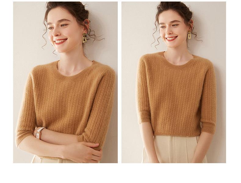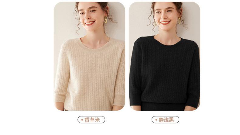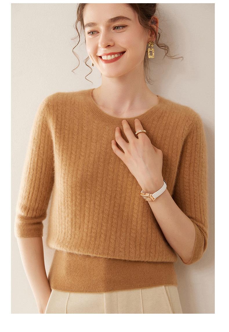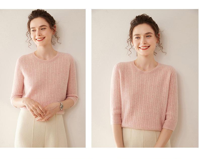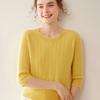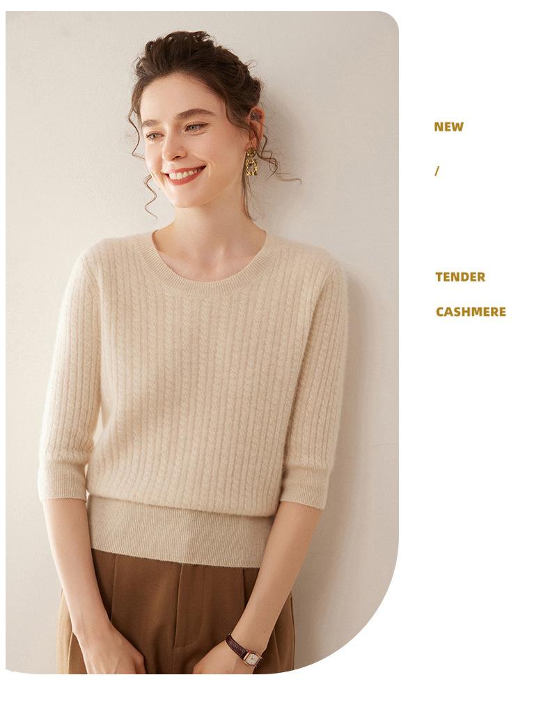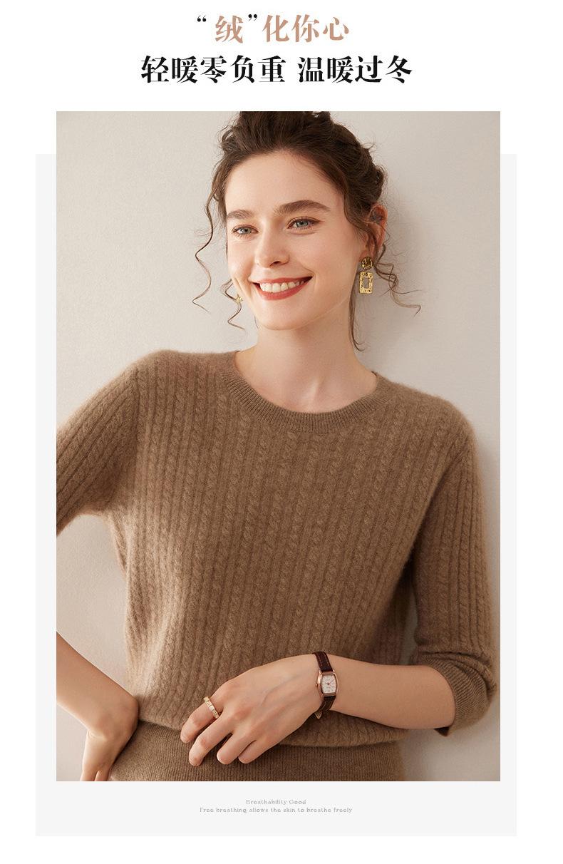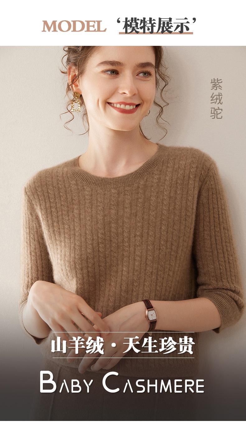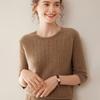 Camiseta Básica de Punto de Cachemira de Cuello Redondo de Doce Puntadas para Mujer Primavera y Otoño Manga Media Manga Siete Puntos Top Holgado Interior Suave Ceroso