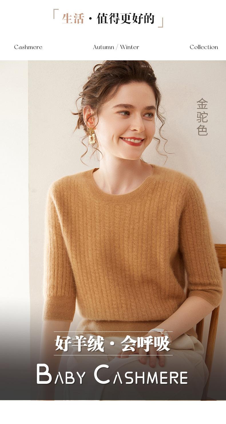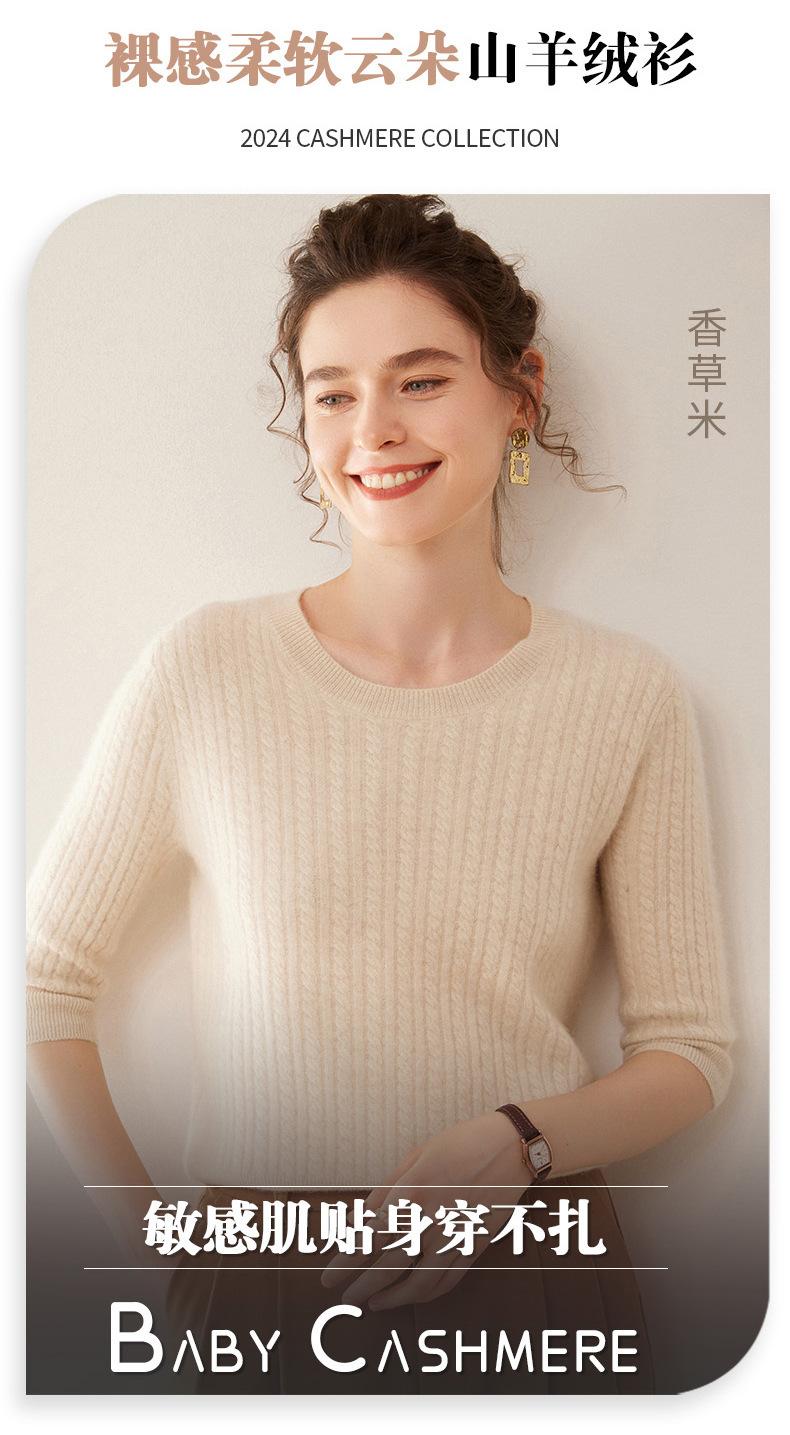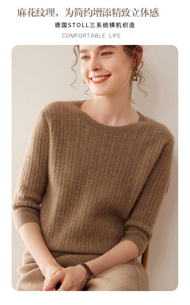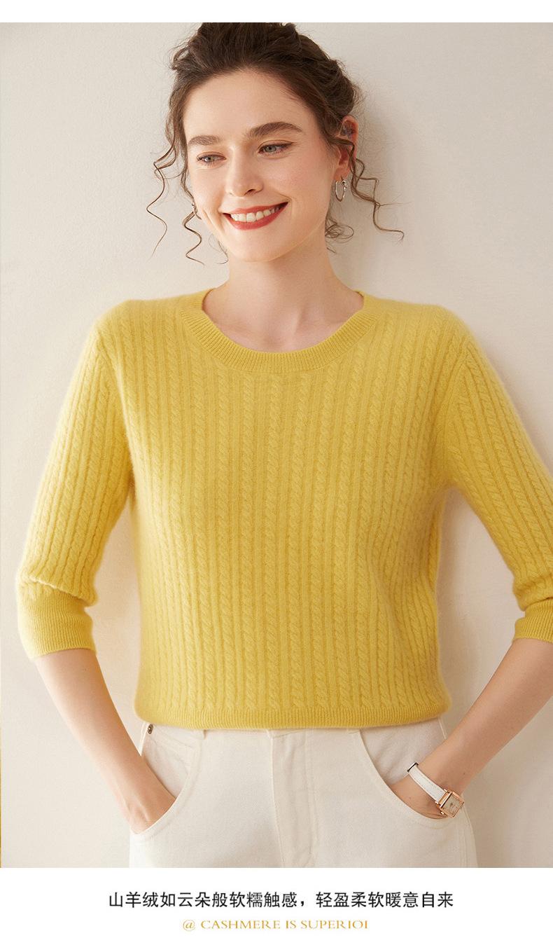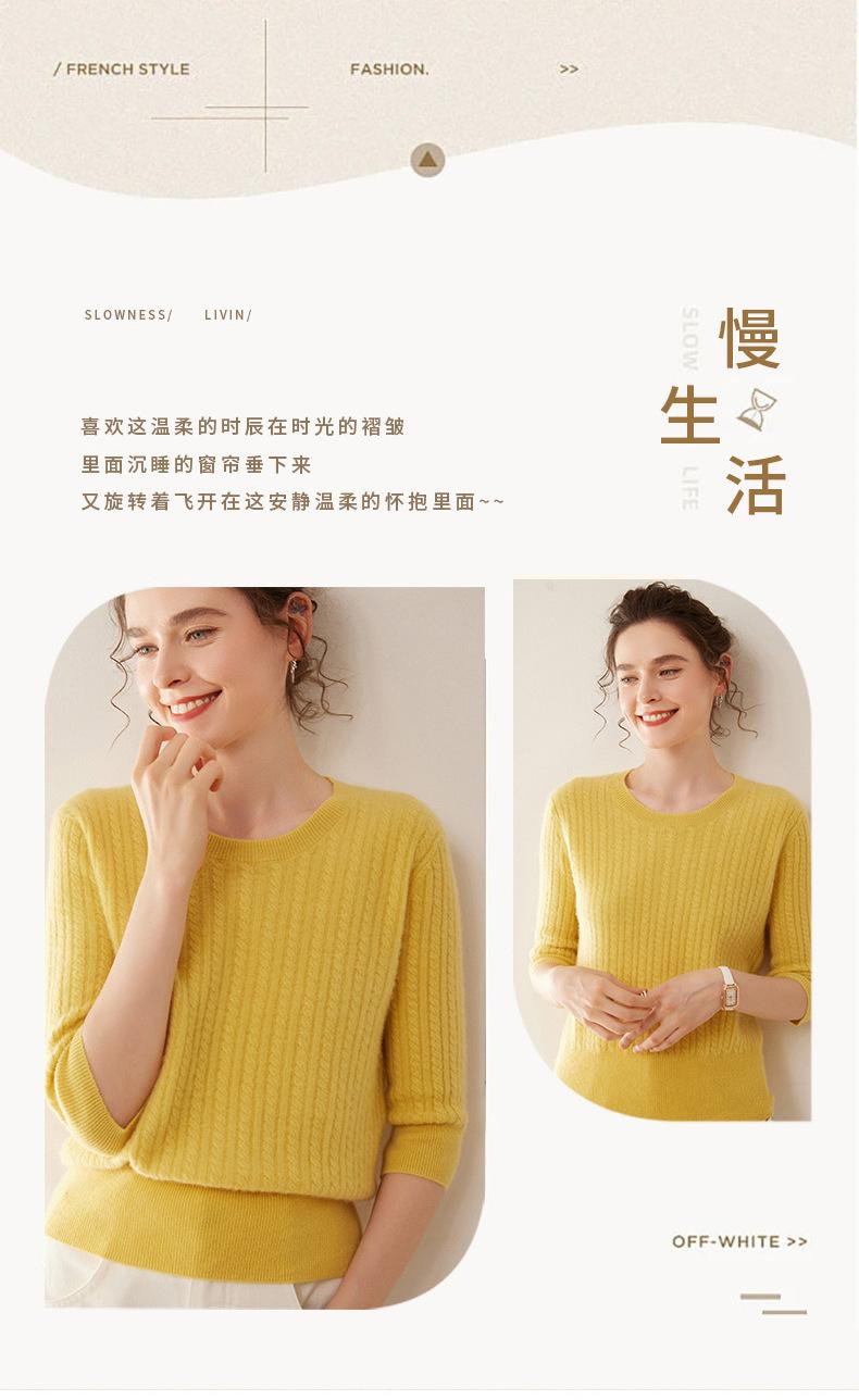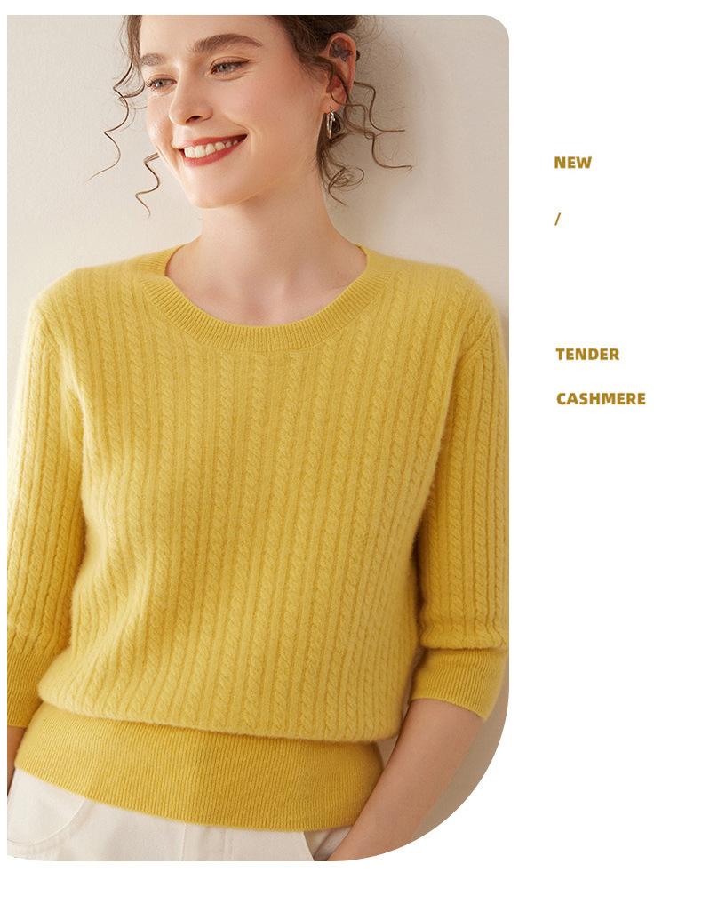 Camiseta Básica de Punto de Cachemira de Cuello Redondo de Doce Puntadas para Mujer Primavera y Otoño Manga Media Manga Siete Puntos Top Holgado Interior Suave Ceroso