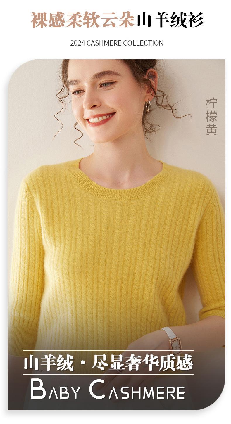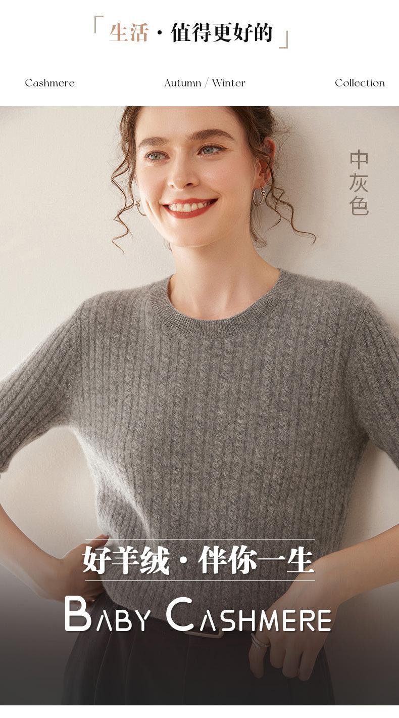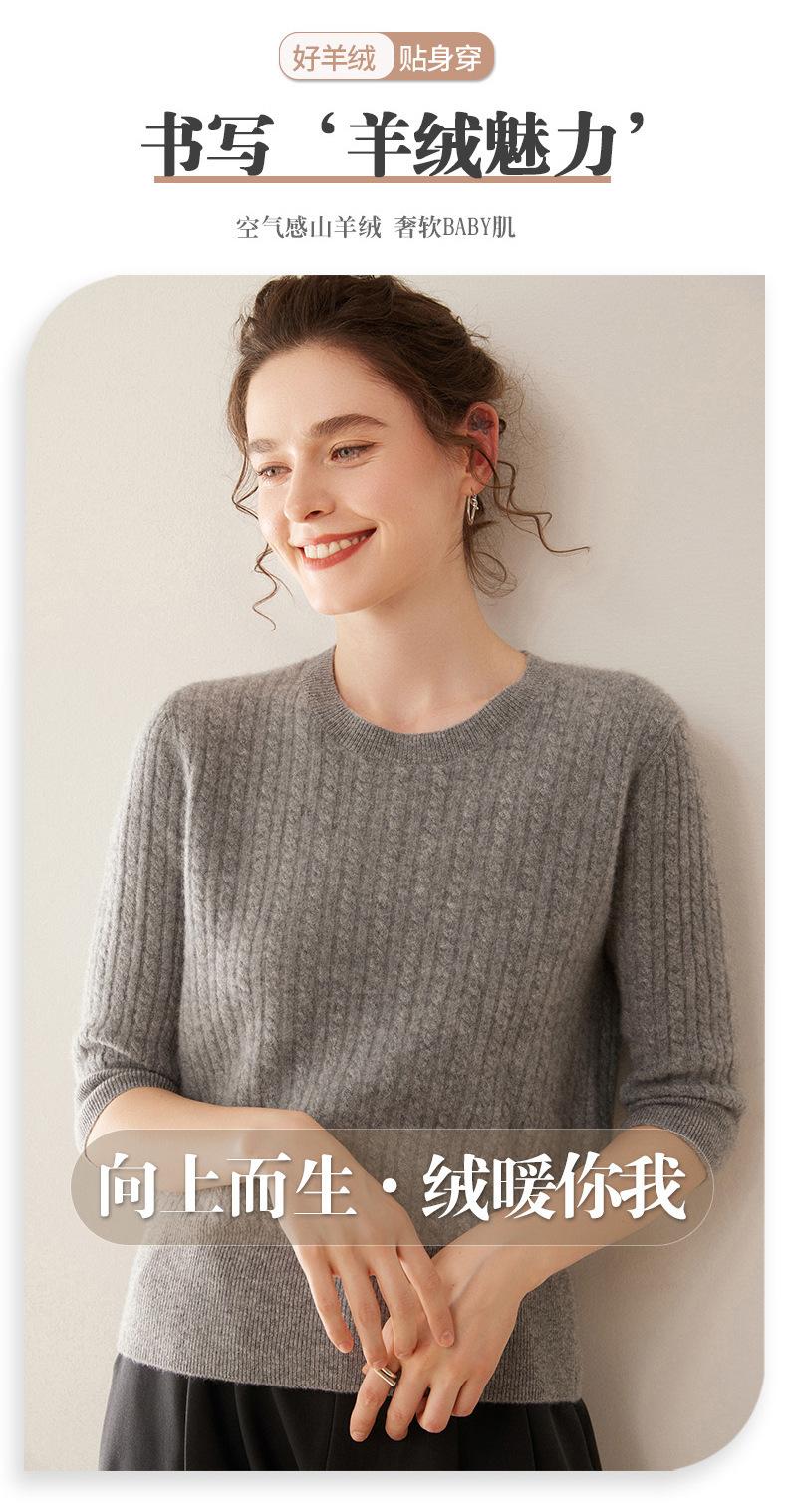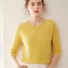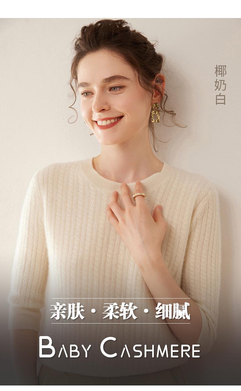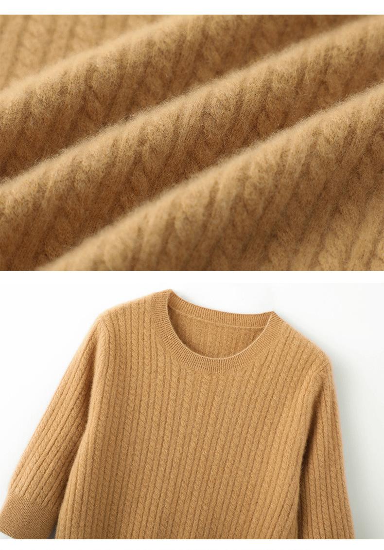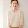Camiseta Básica de Punto de Cachemira de Cuello Redondo de Doce Puntadas para Mujer Primavera y Otoño Manga Media Manga Siete Puntos Top Holgado Interior Suave Ceroso