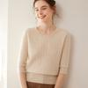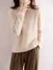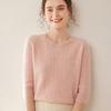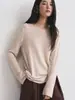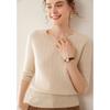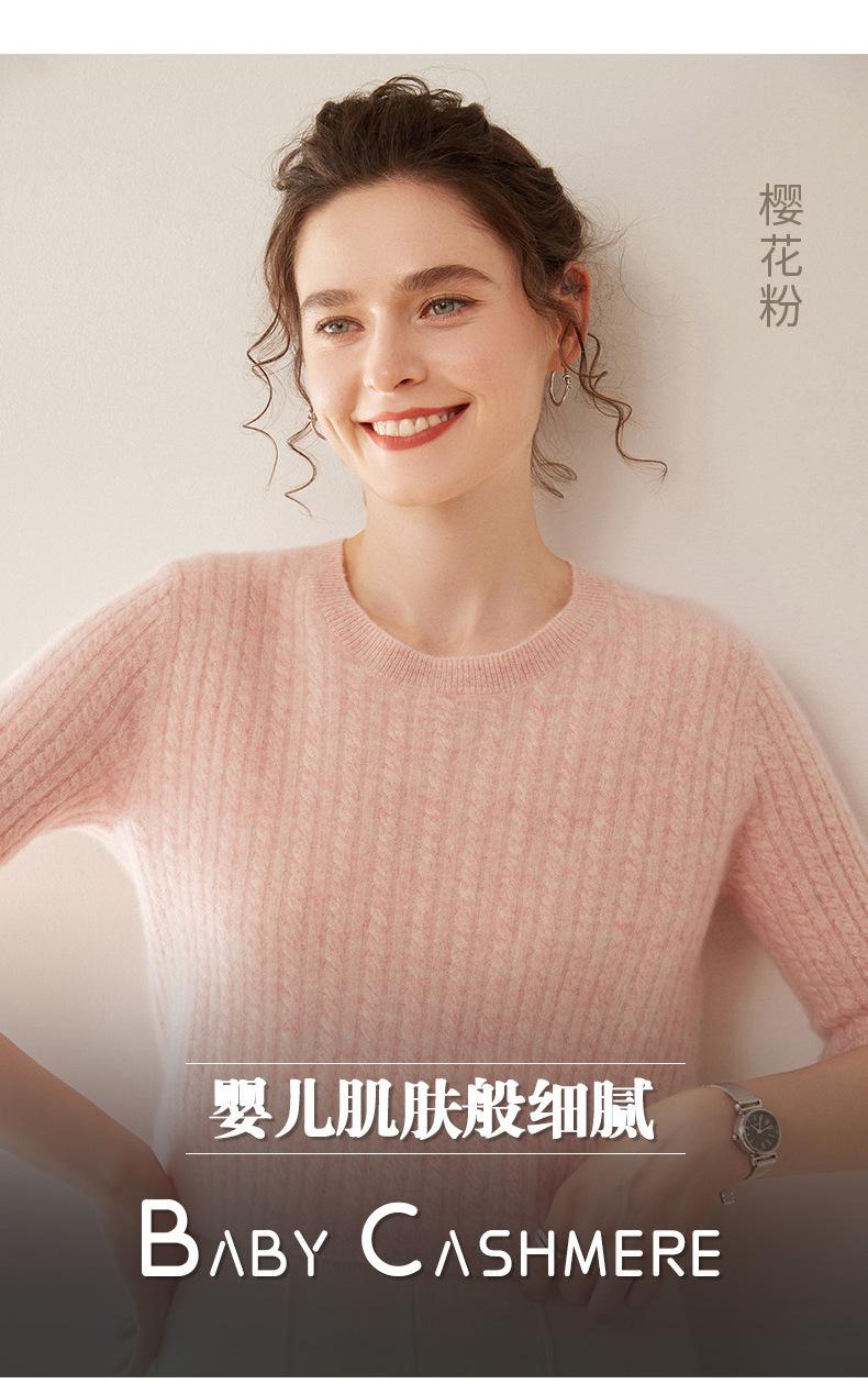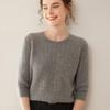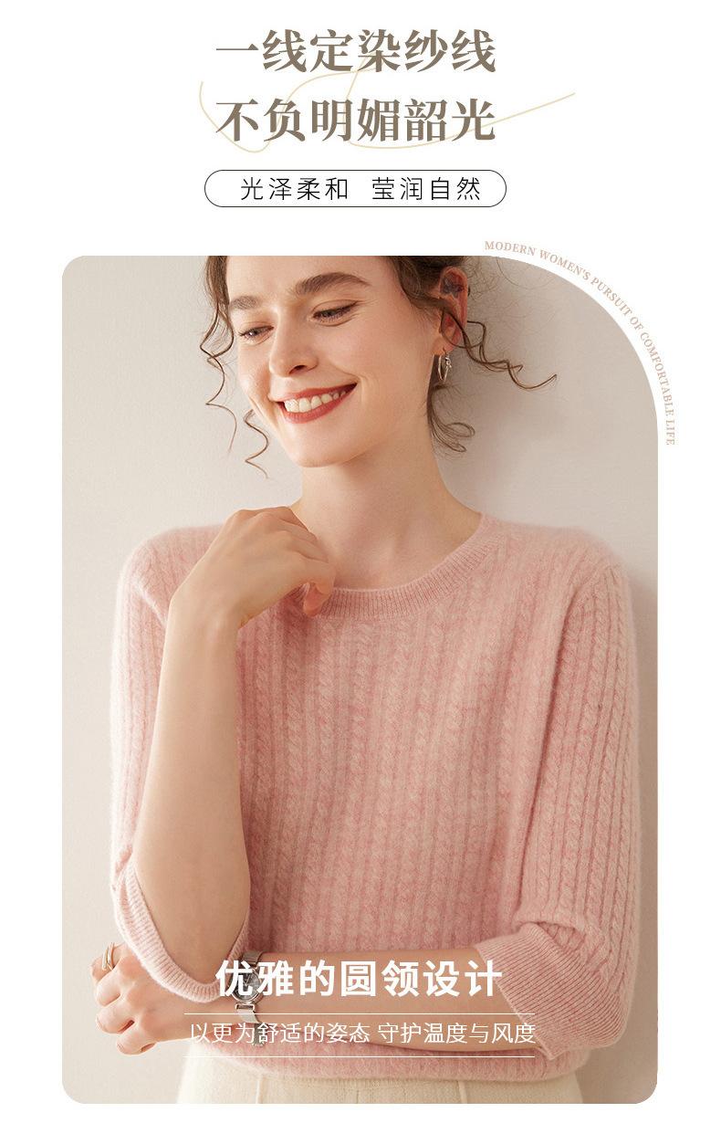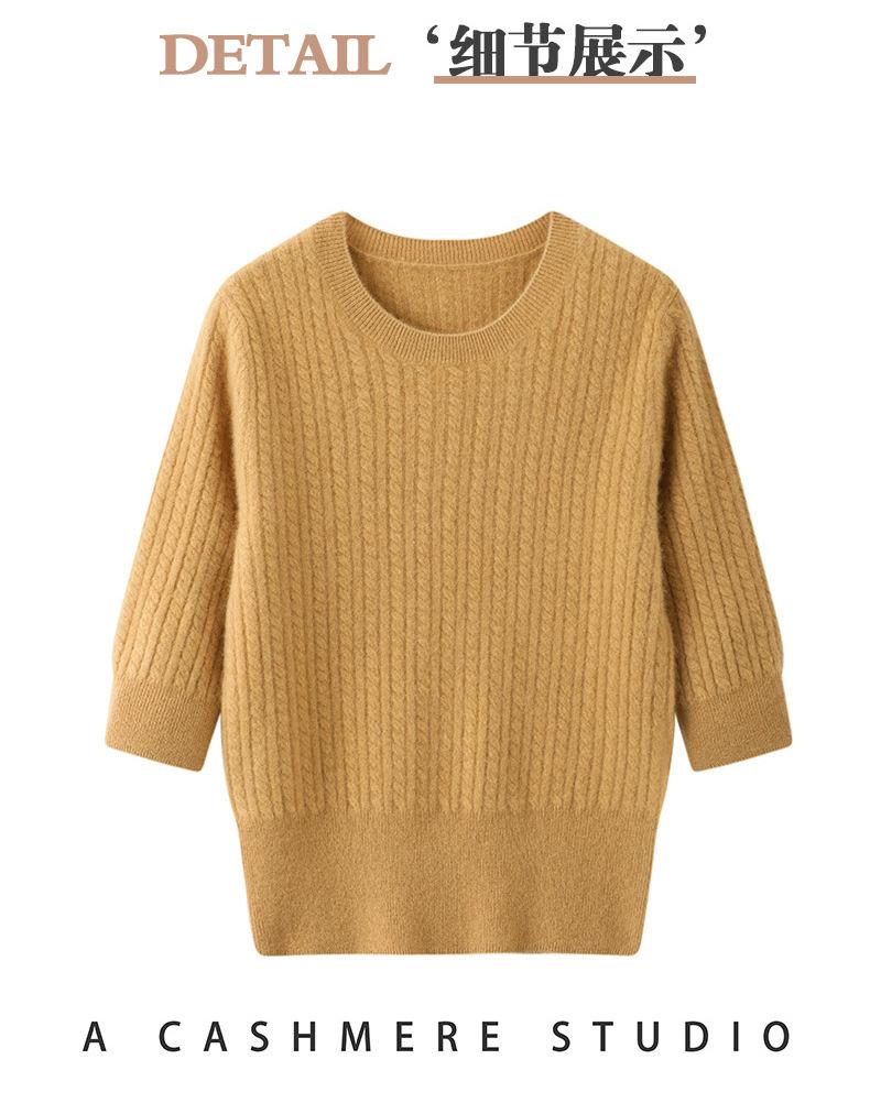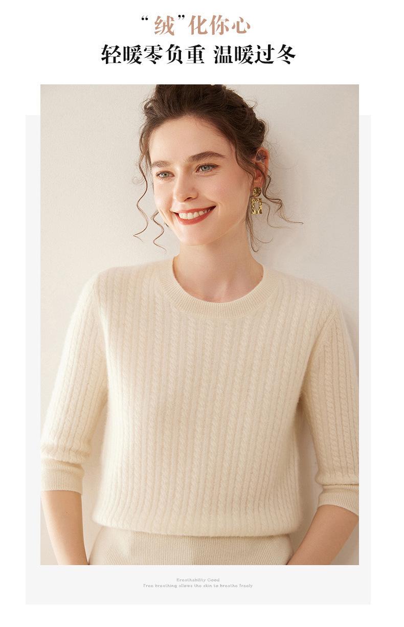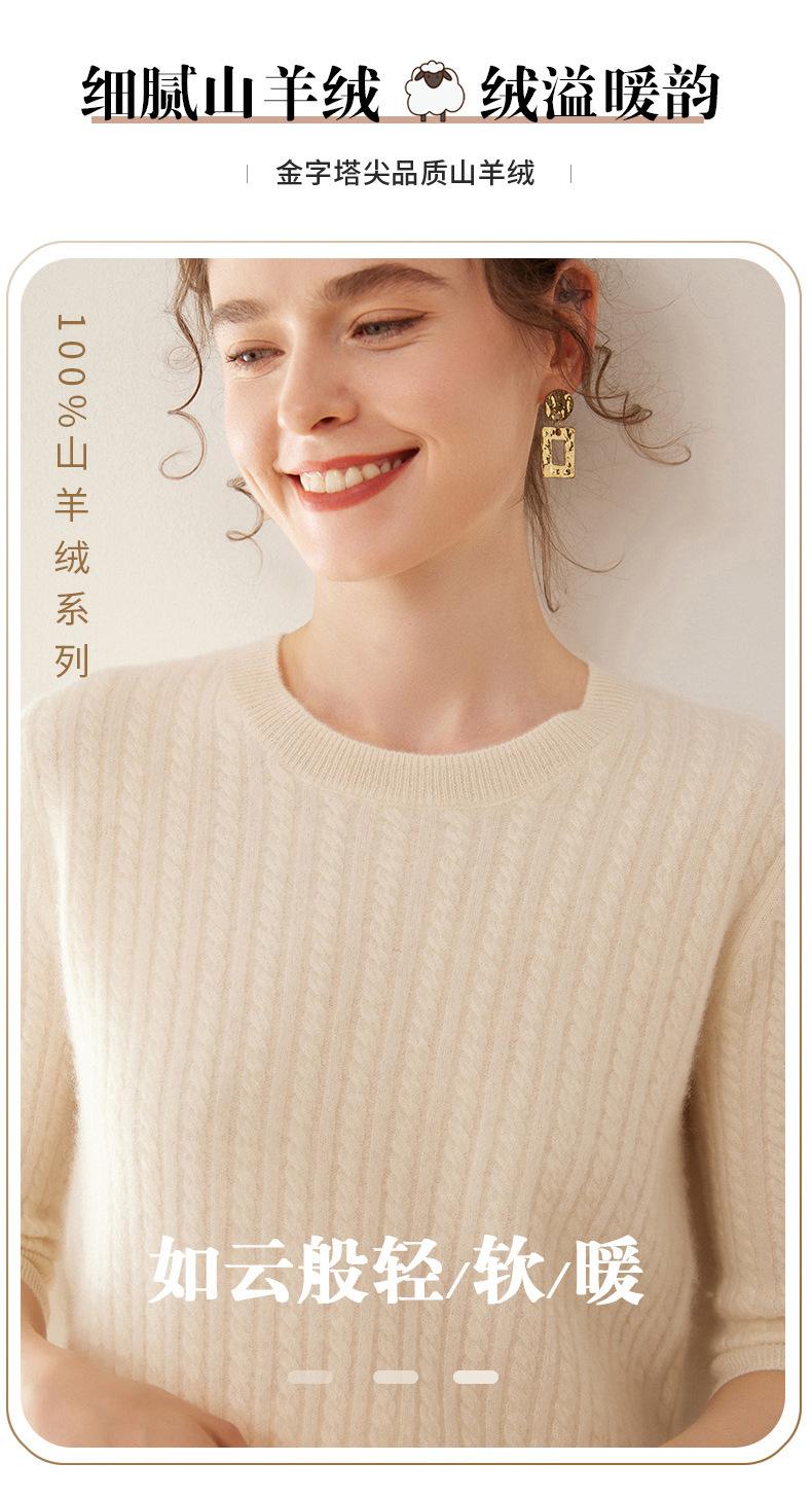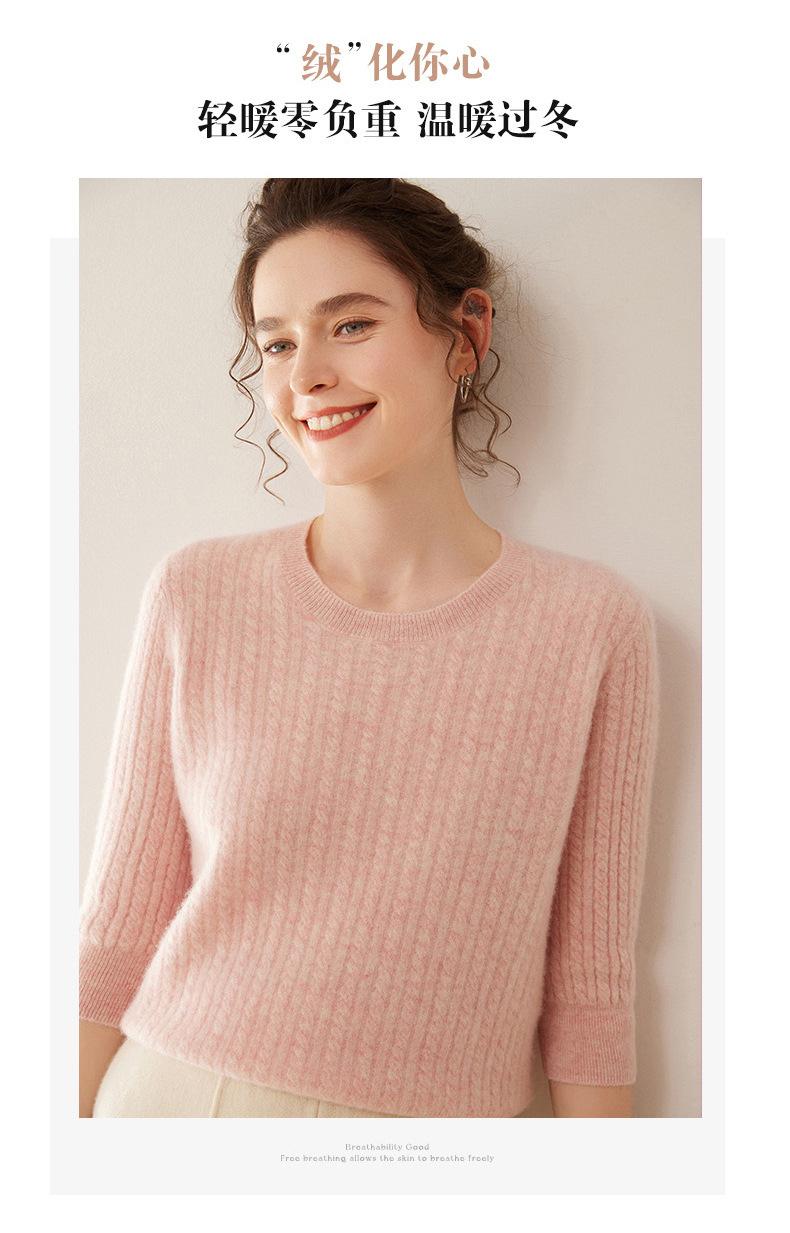 Camiseta Básica de Punto de Cachemira de Cuello Redondo de Doce Puntadas para Mujer Primavera y Otoño Manga Media Manga Siete Puntos Top Holgado Interior Suave Ceroso