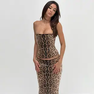 Set de Amazon Transfronterizo Más Vendido Moda Estampado de Leopardo Empalmado Encaje con Cordones Bandeau Bodycon Ajustado Falda Midi de Lentejuelas para Mujer