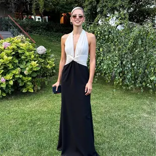 Estilo Caliente Europeo y Americano Estilo Sexy Sexy Corte Profundo en V Espalda Descubierta Estilo Club Nocturno Halter Cadera Vestido Oscuro para Mujeres