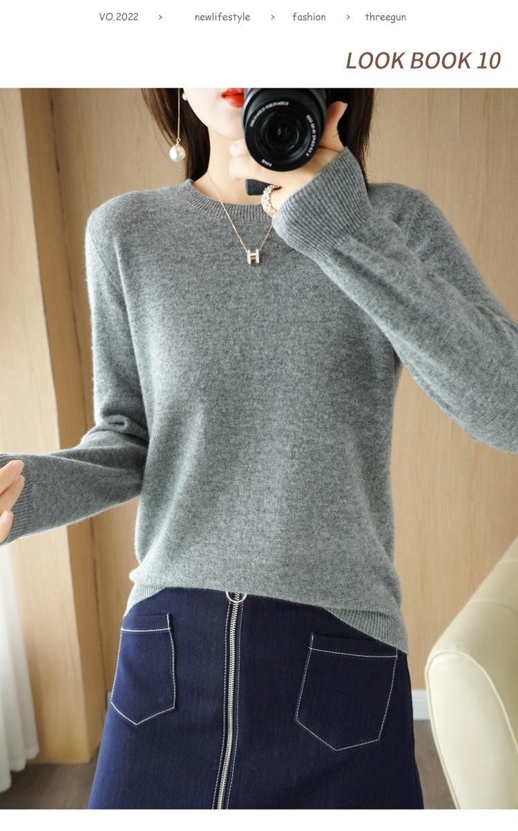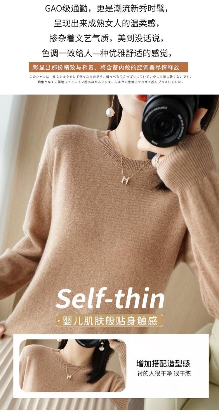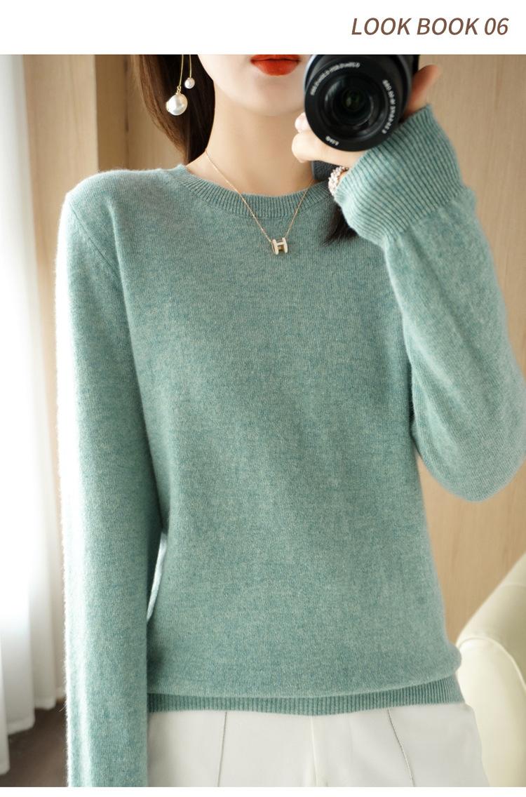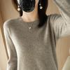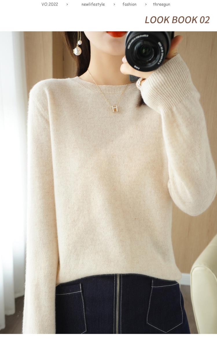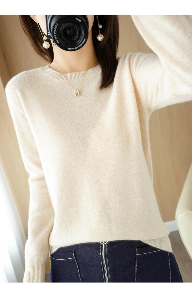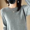 Suéter corto y fino de manga larga para mujer, otoño e invierno, color liso, base interior, cuello redondo, nuevo arroz