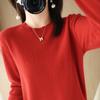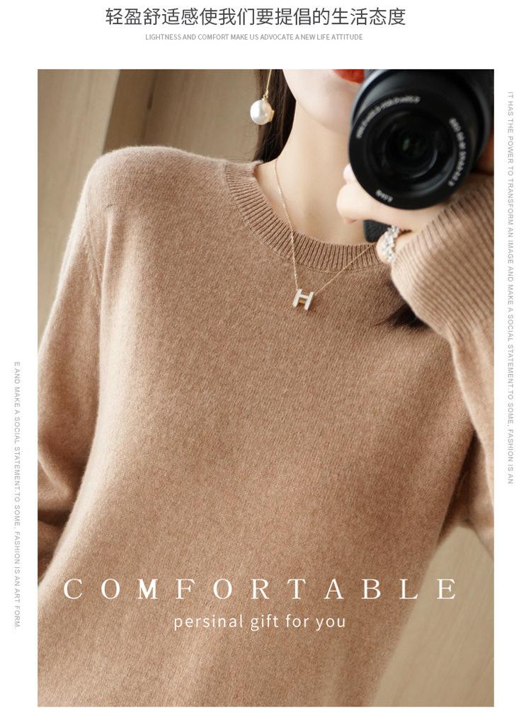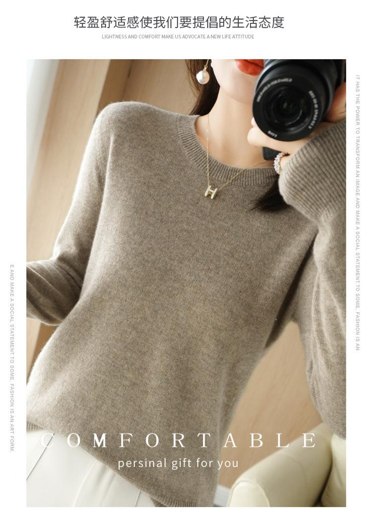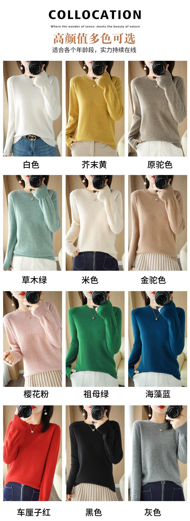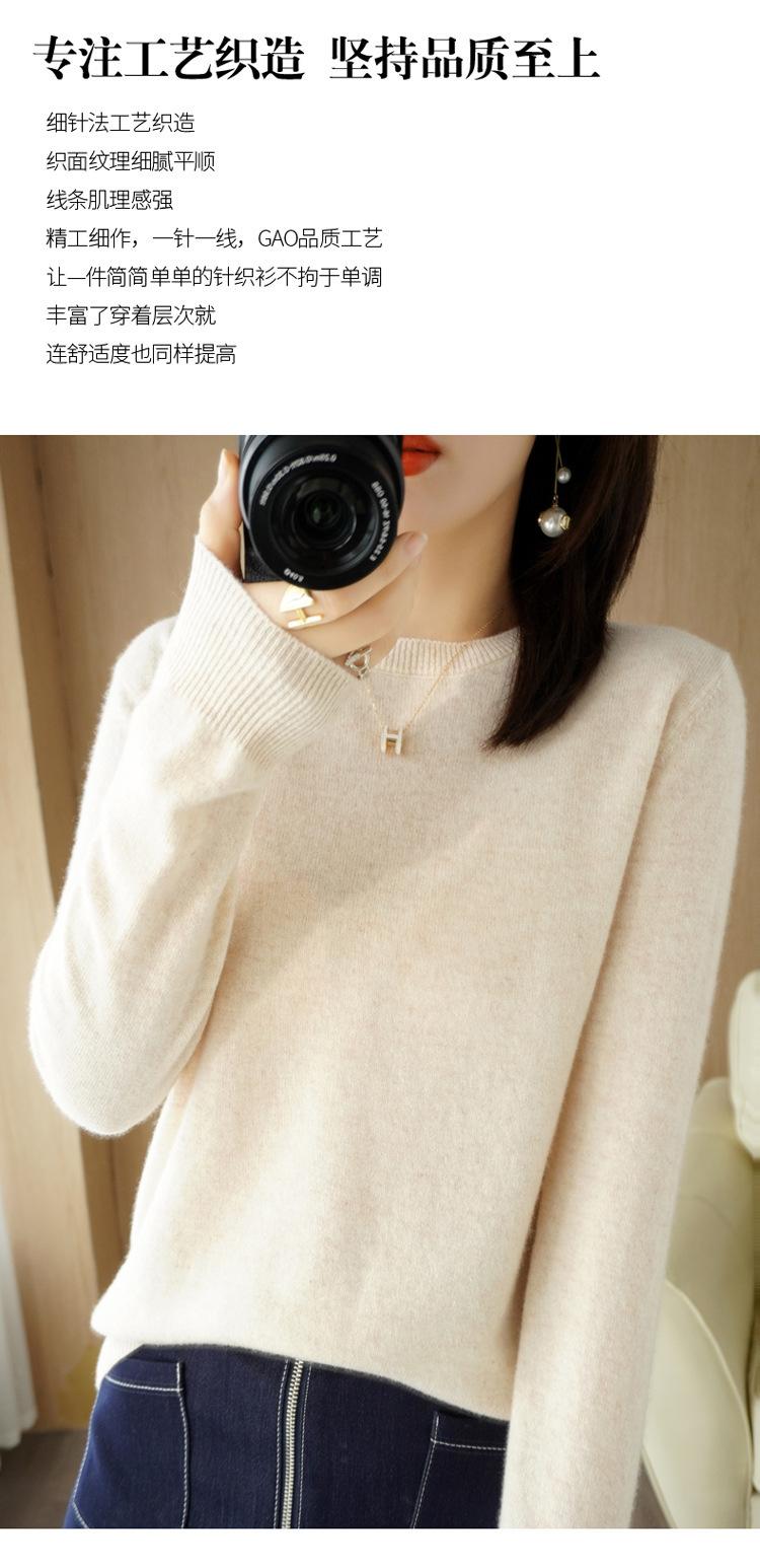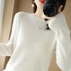 Suéter corto y fino de manga larga para mujer, otoño e invierno, color liso, base interior, cuello redondo, nuevo arroz