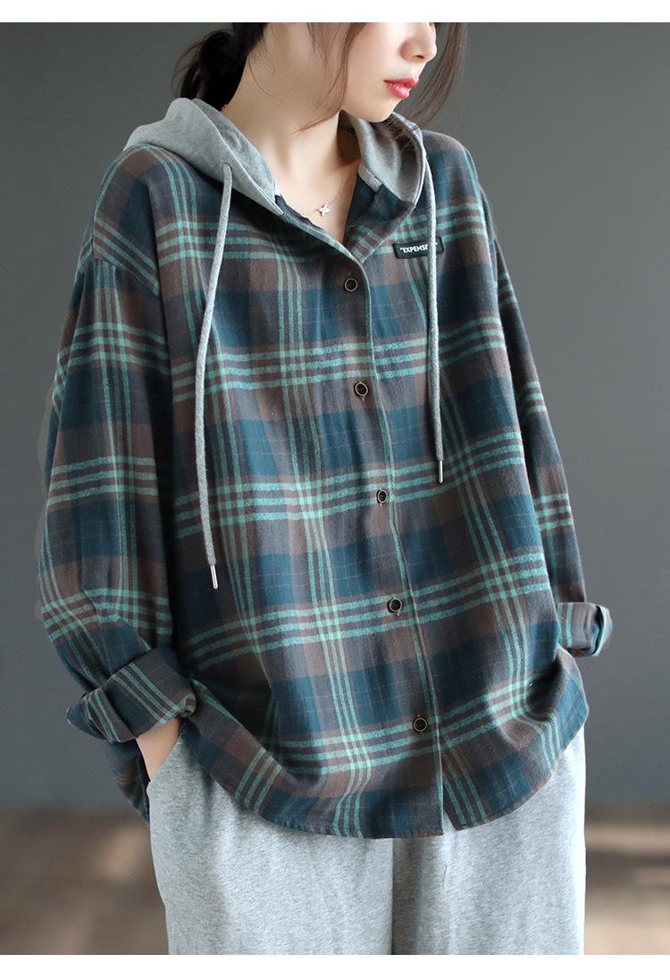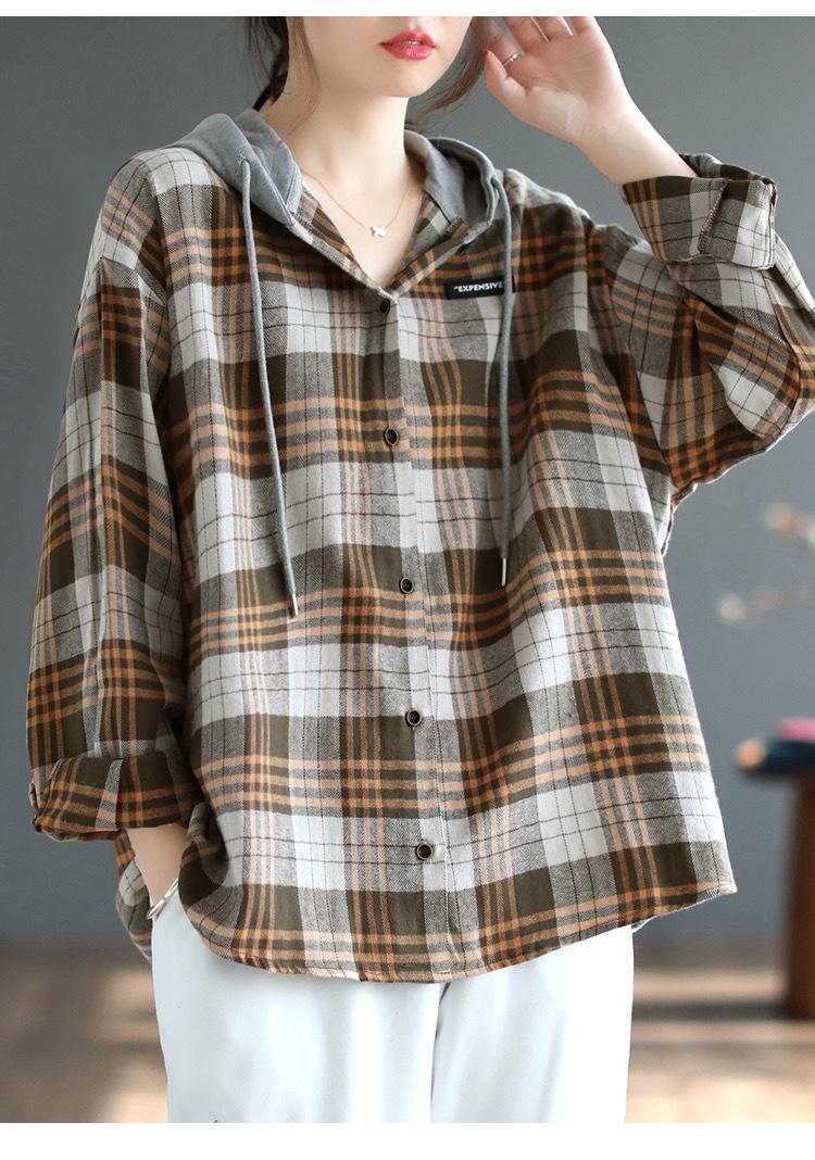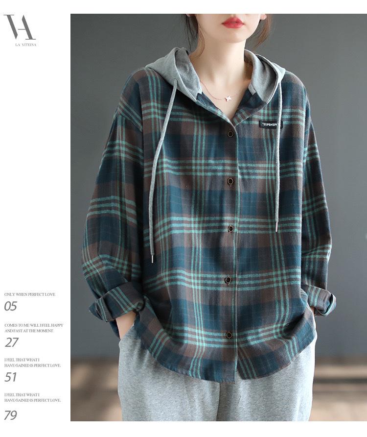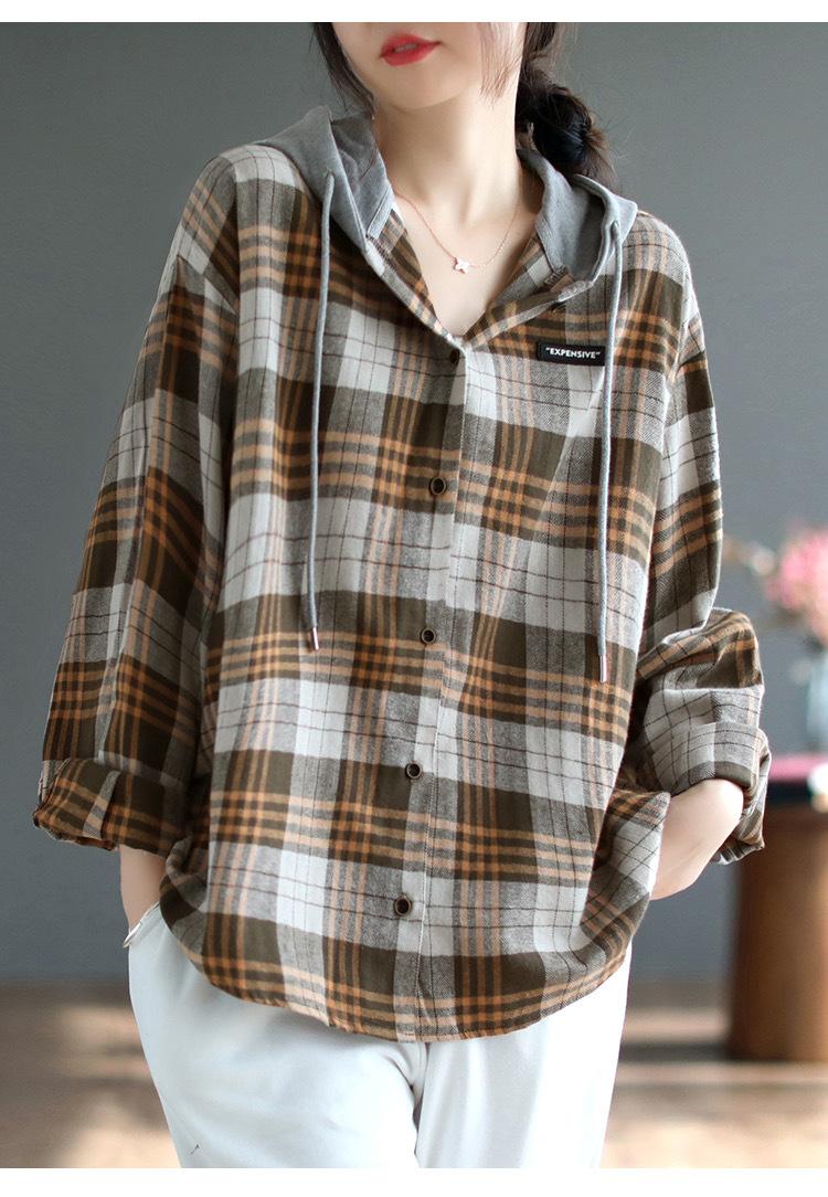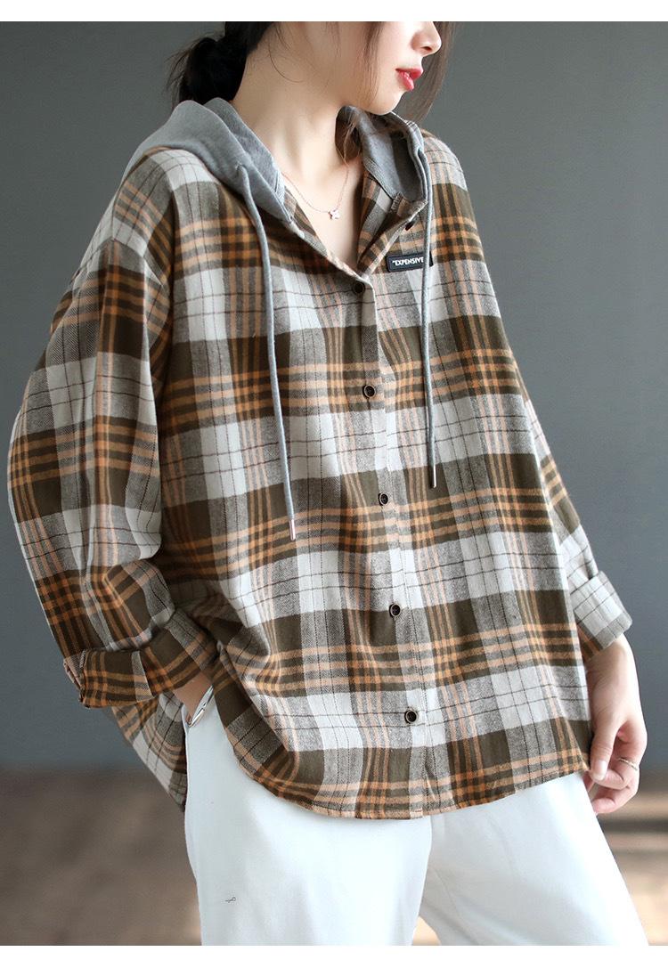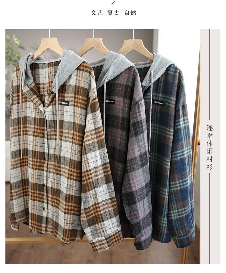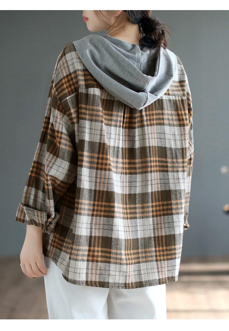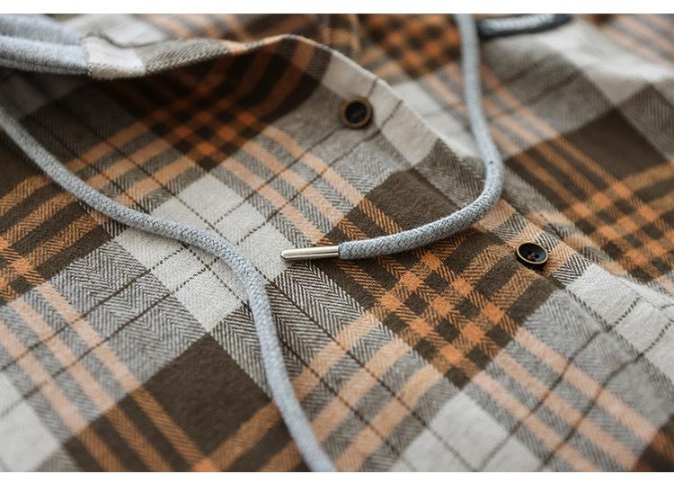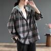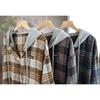 Otoño e Invierno Japonés y Coreano Nueva Camisa de Manga Larga a Cuadros Cepillada de un Solo Botón para Mujer Casual Talla Grande Camisa Casual con Capucha