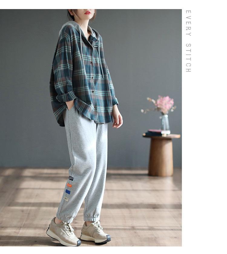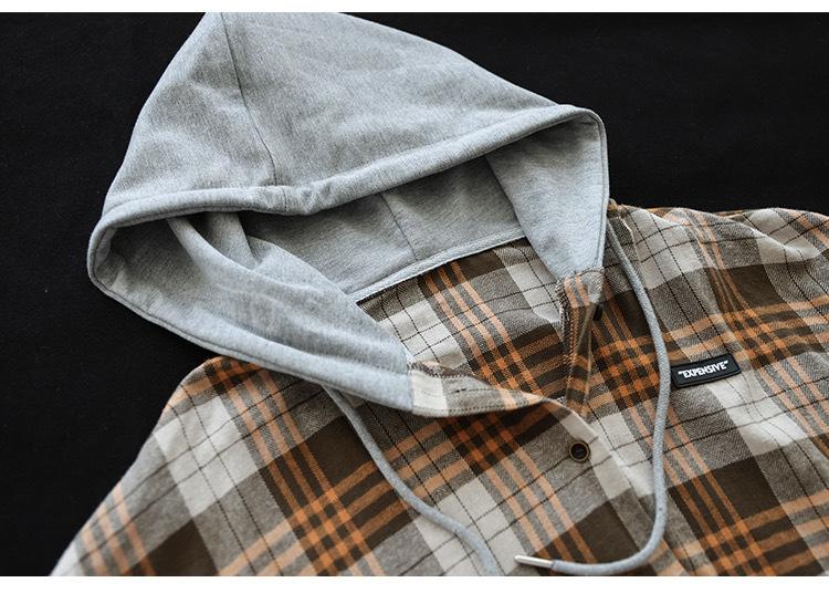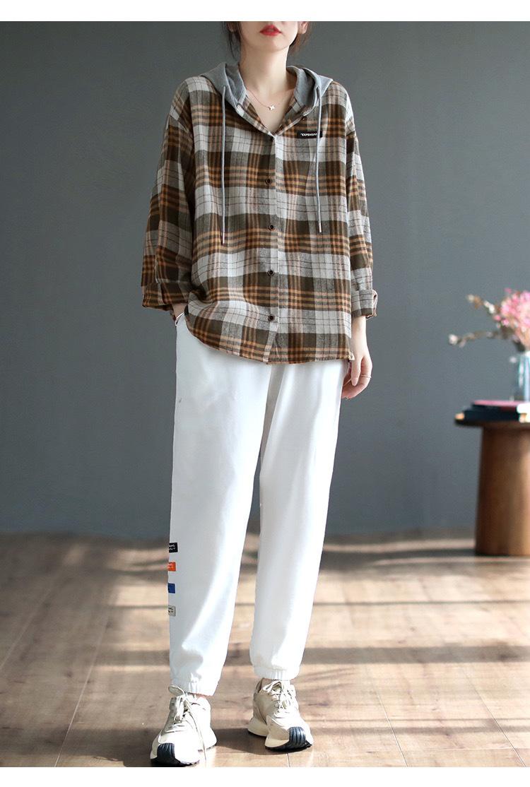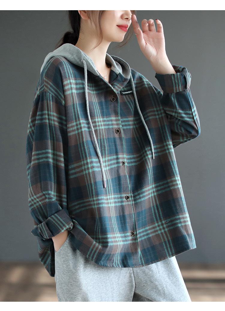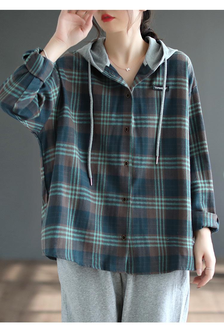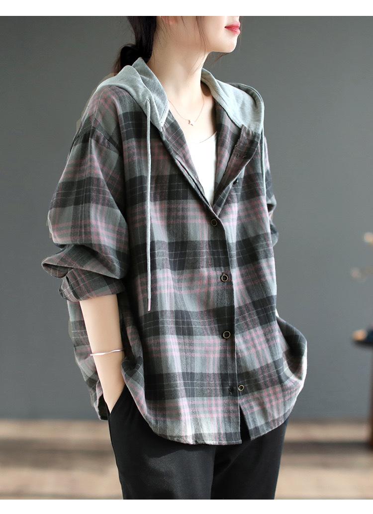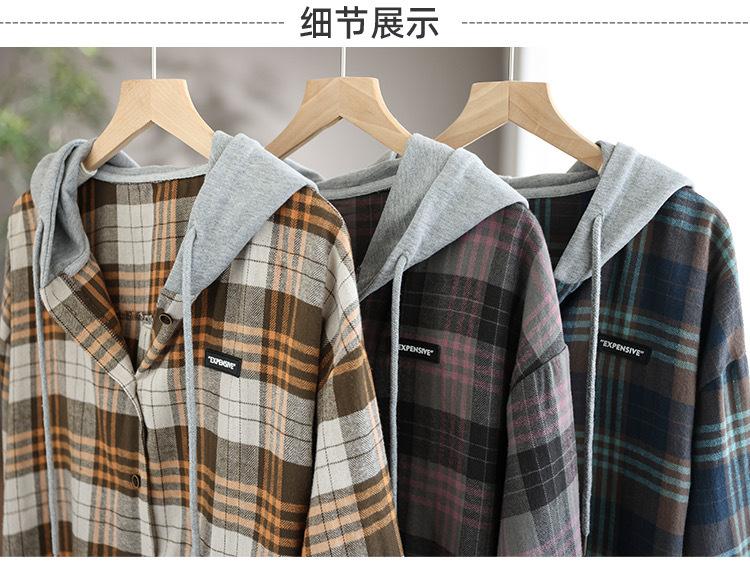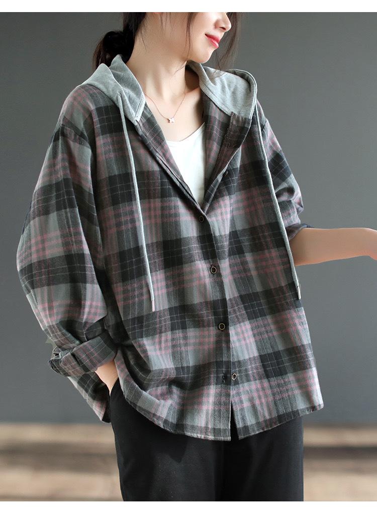 Otoño e Invierno Japonés y Coreano Nueva Camisa de Manga Larga a Cuadros Cepillada de un Solo Botón para Mujer Casual Talla Grande Camisa Casual con Capucha
