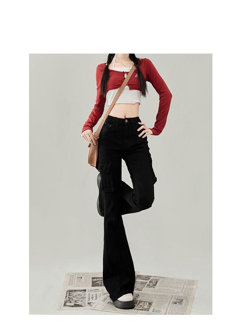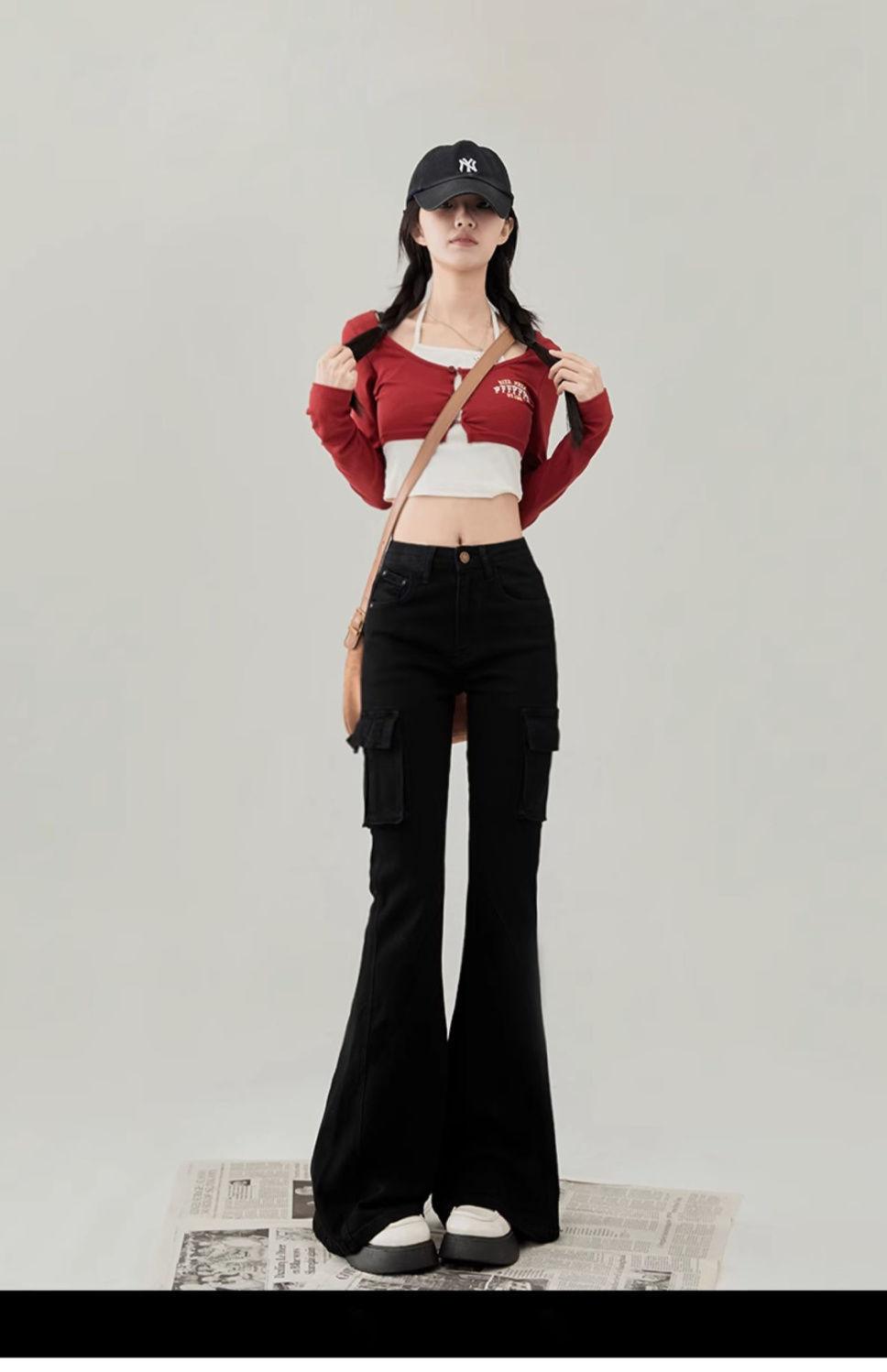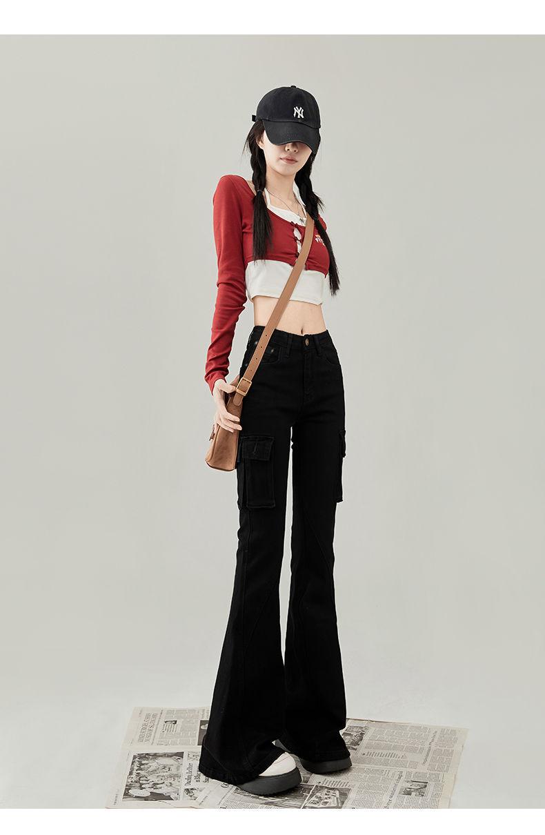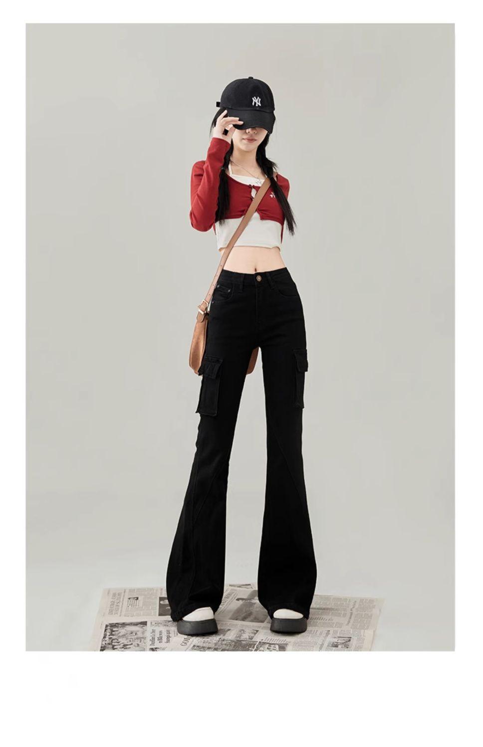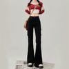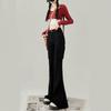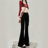 Pantalones cortos negros estilo americano para mujer, talla pequeña, primavera y otoño 2024, rectos, de cintura alta y ajustados, acampanados.