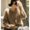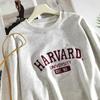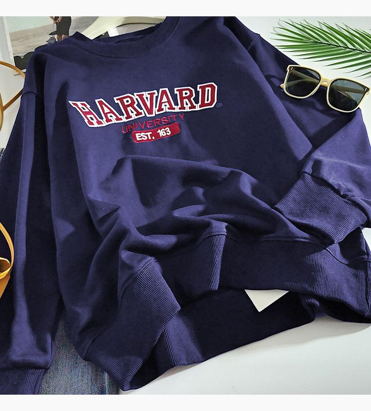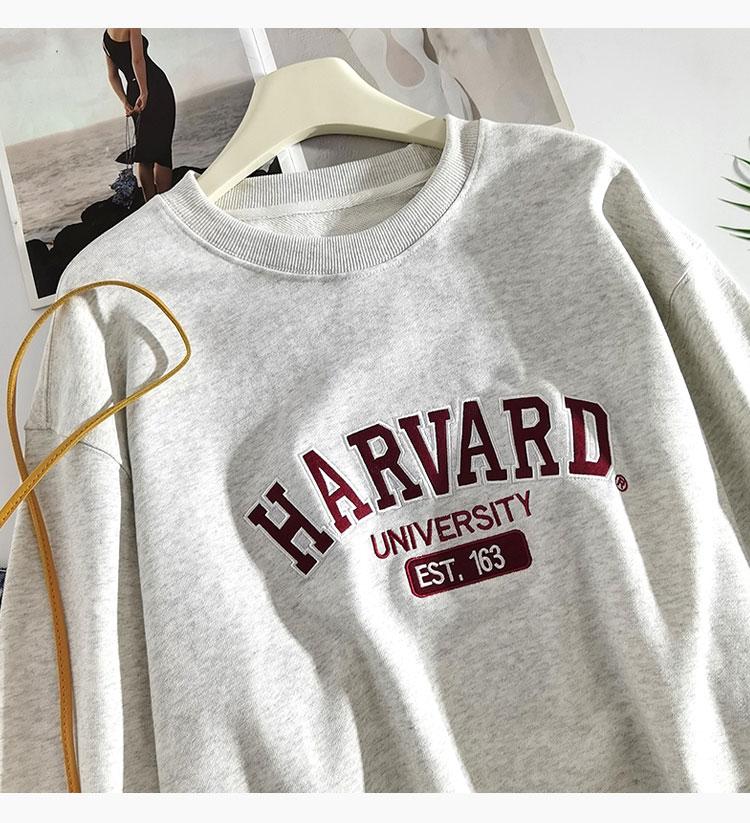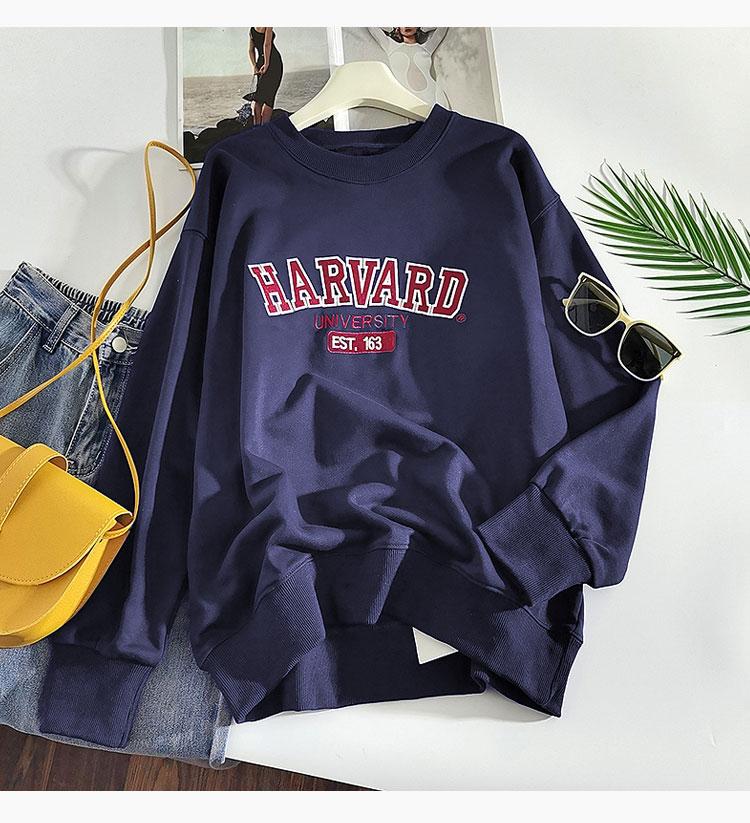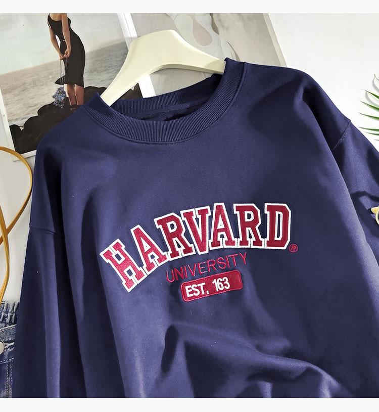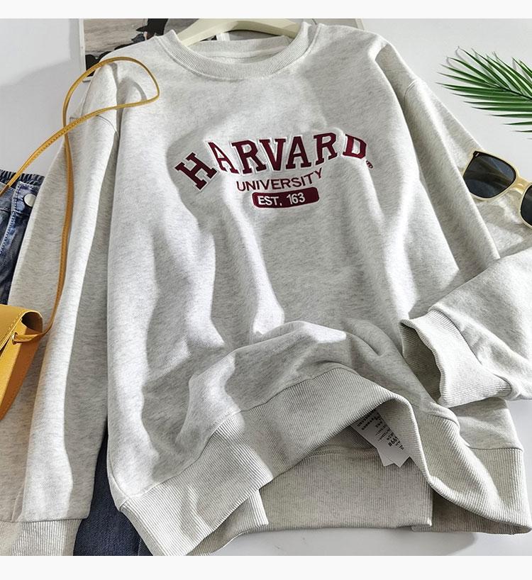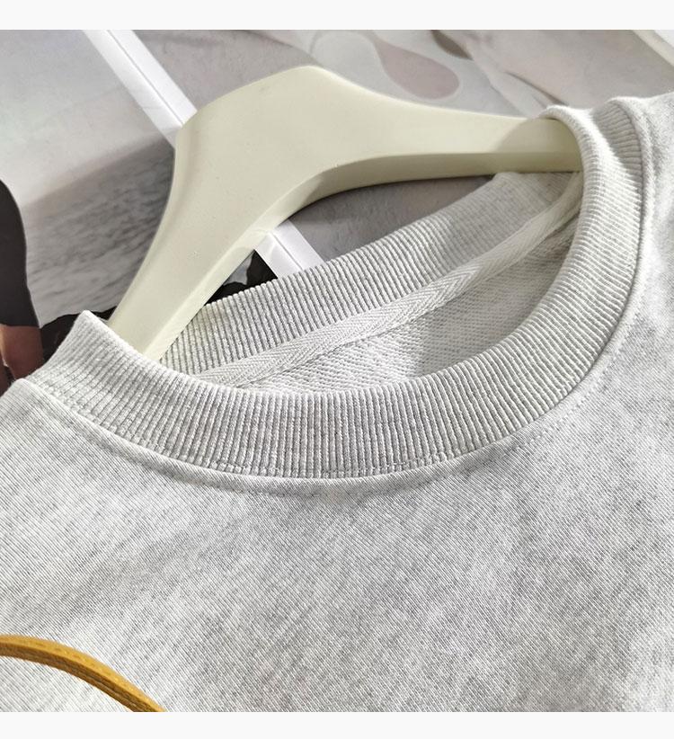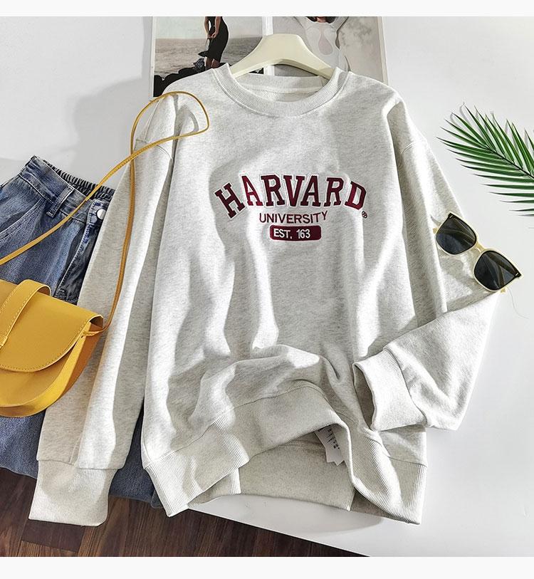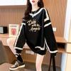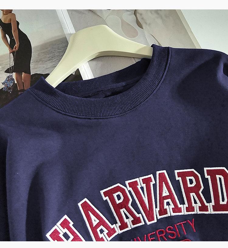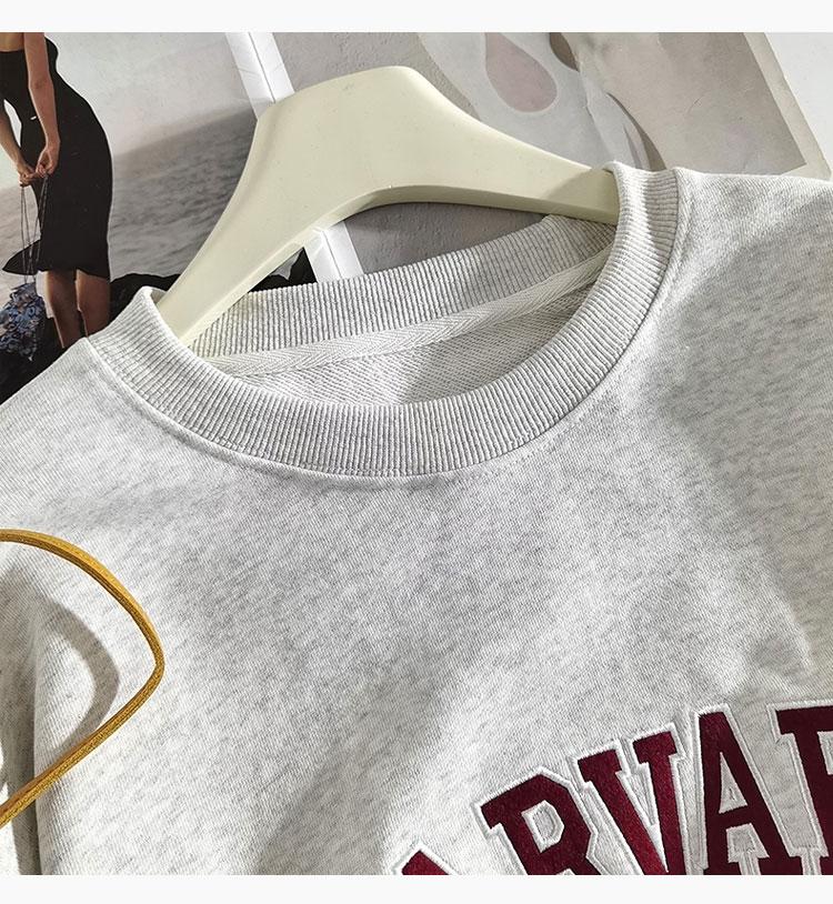 Suéter de Largo Medio Bordado con Letras para Mujer Primavera y Otoño 2024 Nuevo Suelto Cuello Redondo Jersey Top Cubriendo Glúteos Moda Otoñal