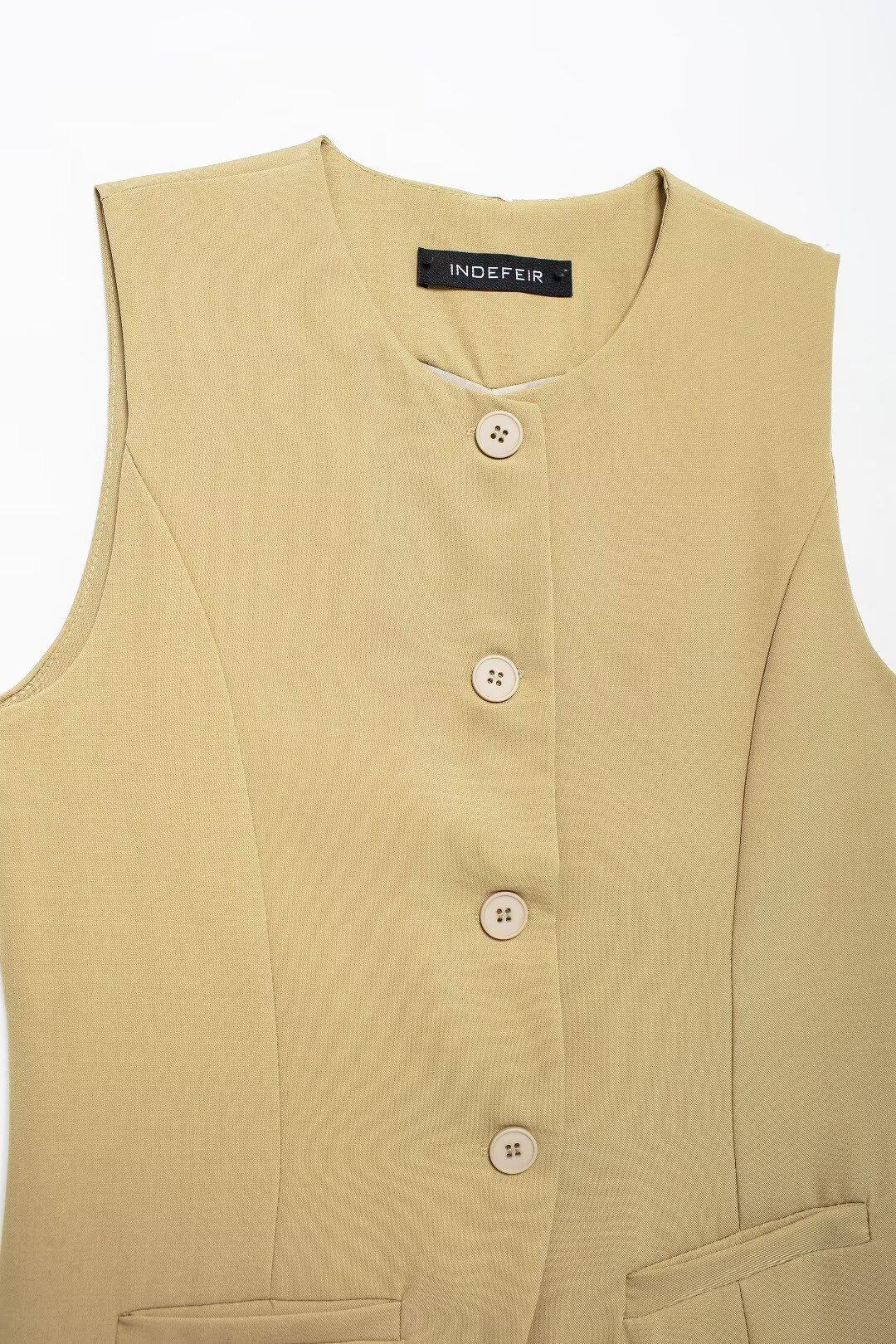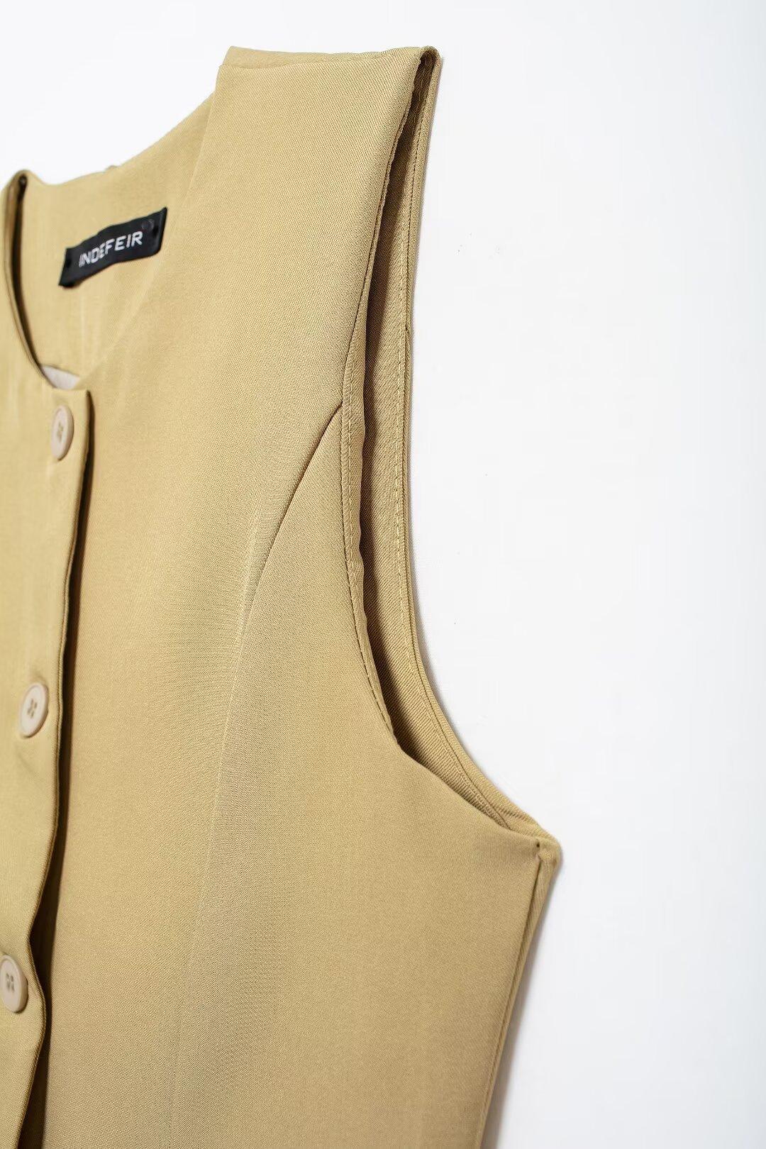 Comercio exterior transfronterizo de Amazon, ropa para mujer europea y americana, otoño 2024, nuevo traje sin mangas, chaleco, pantalones cortos de cintura alta