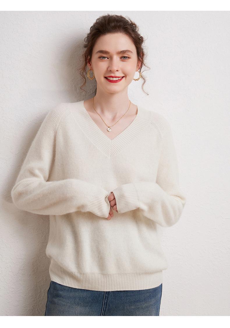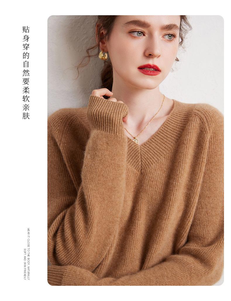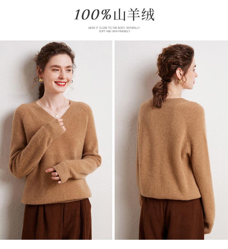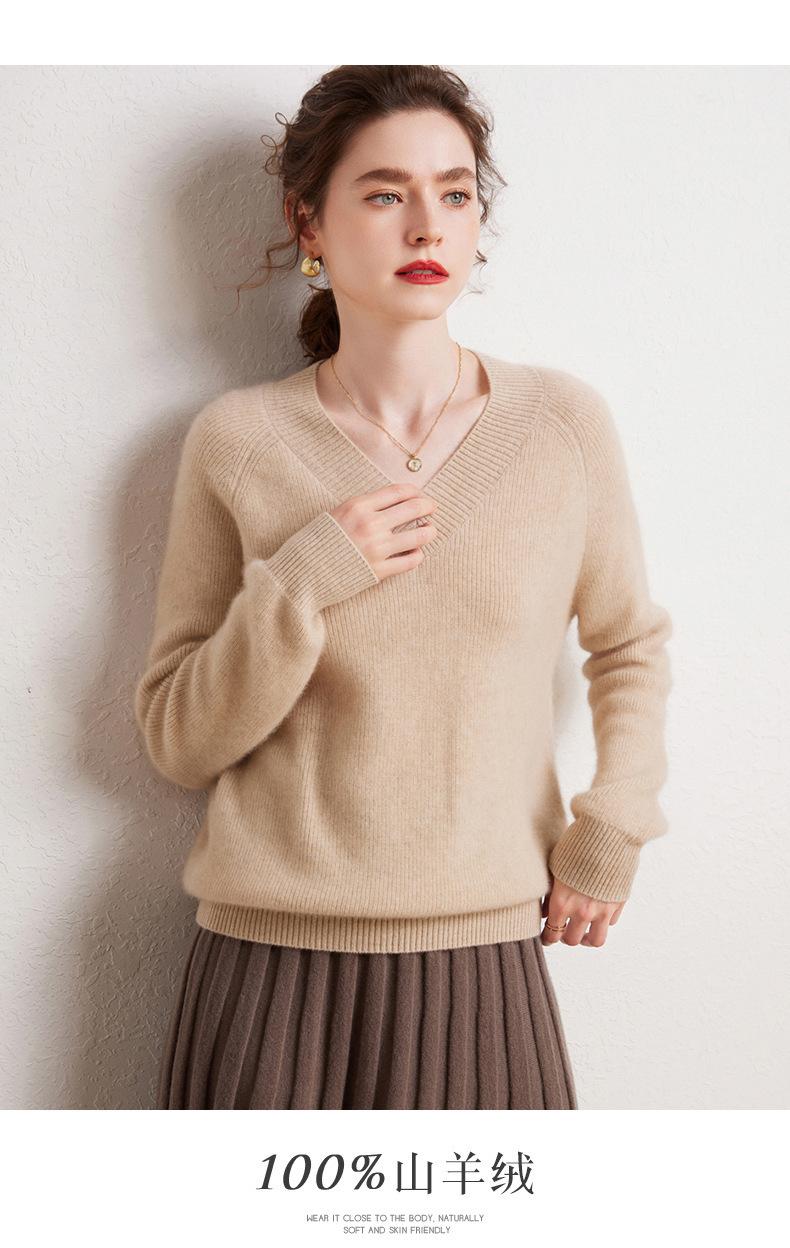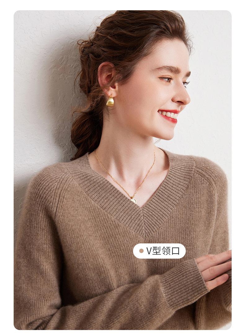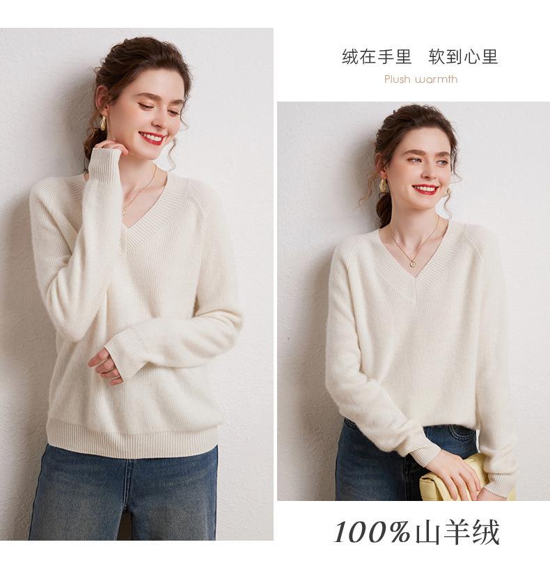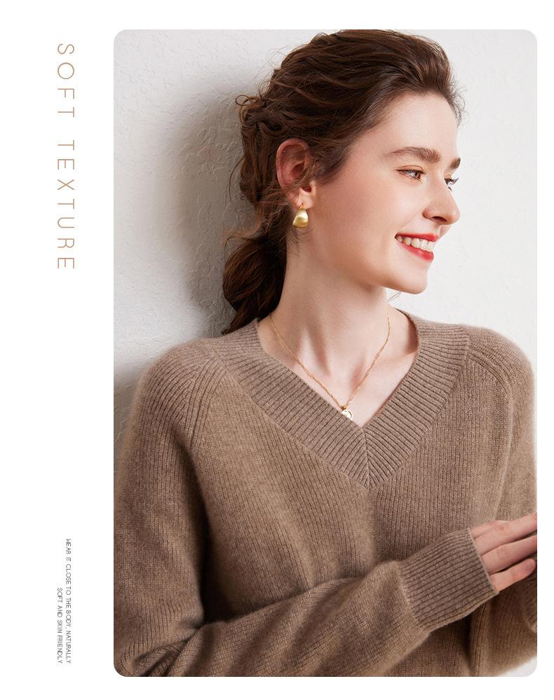 Suéter de cachemira 100% puro para otoño e invierno, nuevo jersey de punto grueso con cuello en V para mujer, suéter de manga larga cálido que combina con todo.
