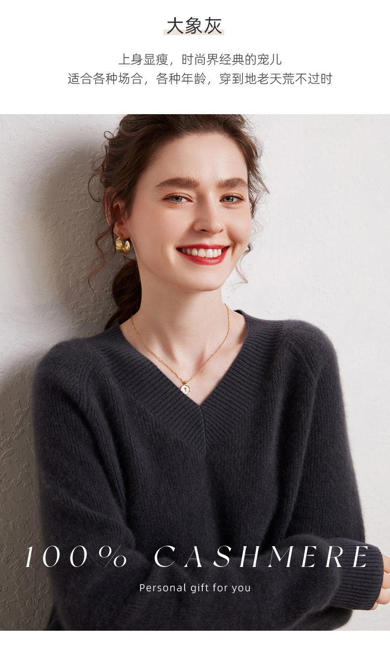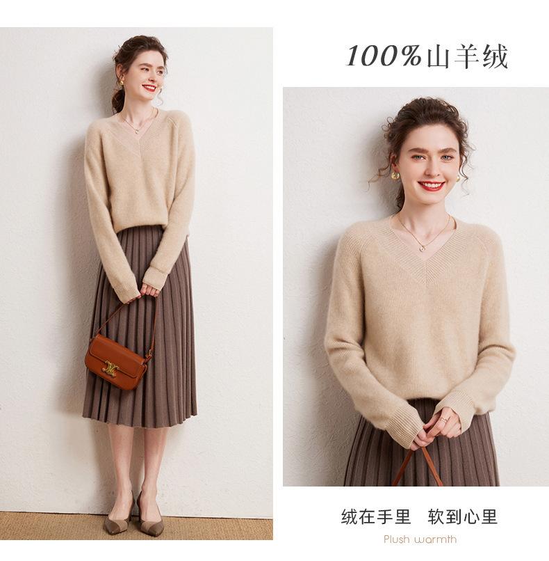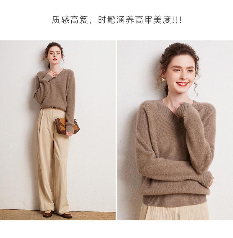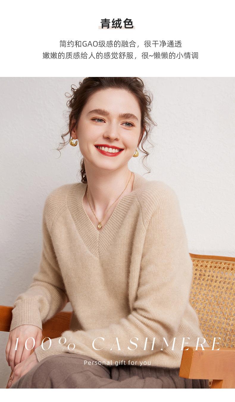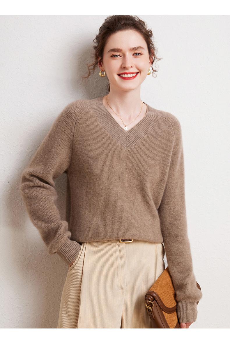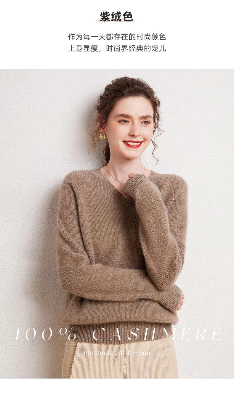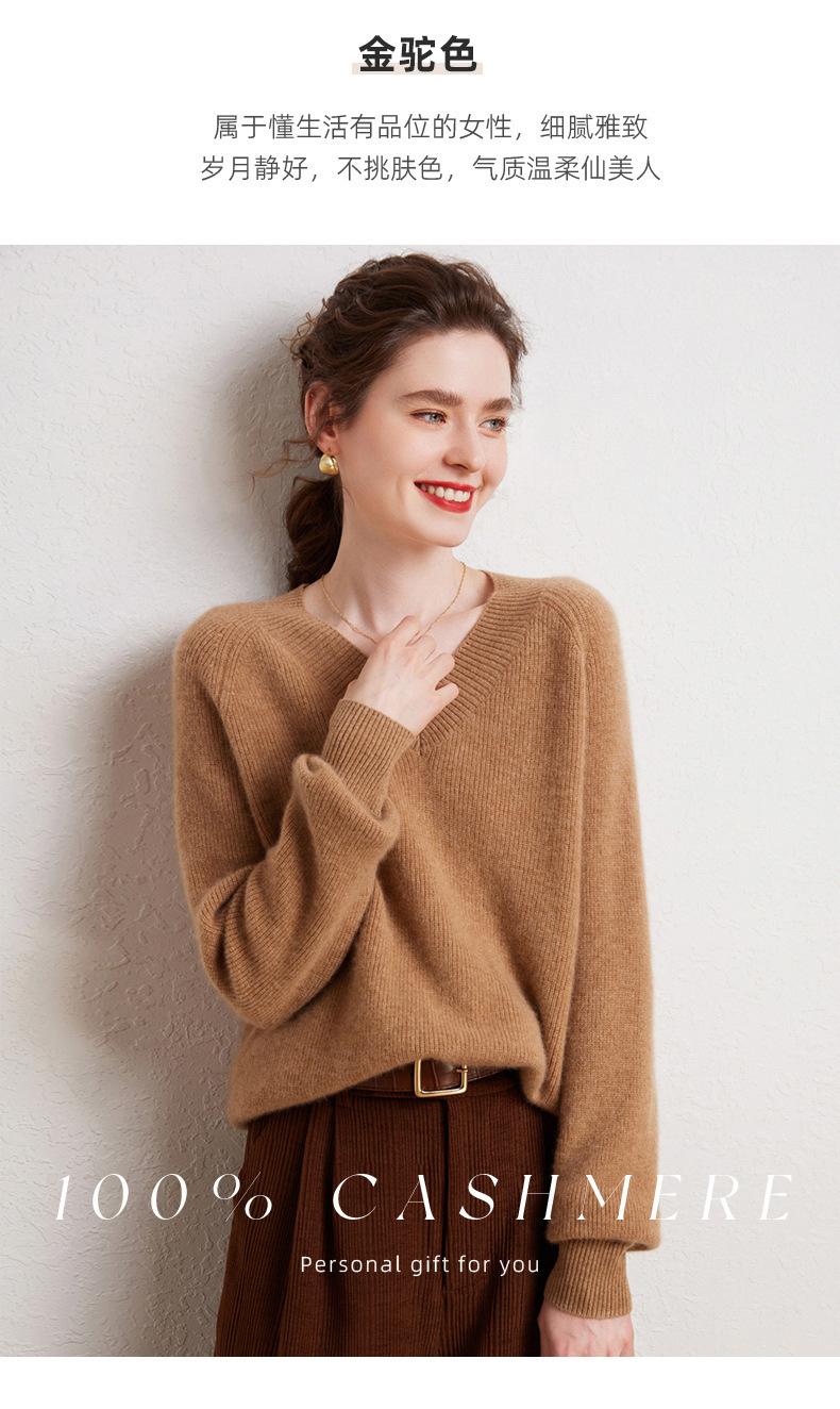 Suéter de cachemira 100% puro para otoño e invierno, nuevo jersey de punto grueso con cuello en V para mujer, suéter de manga larga cálido que combina con todo.