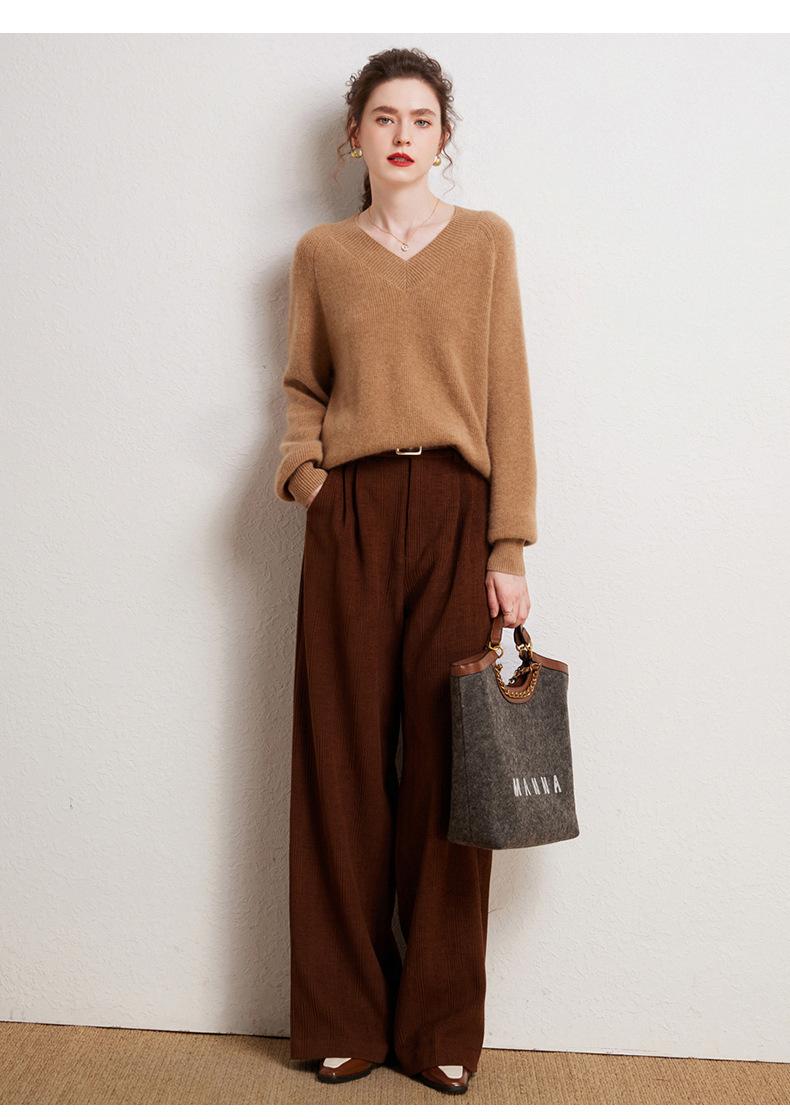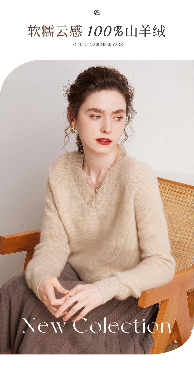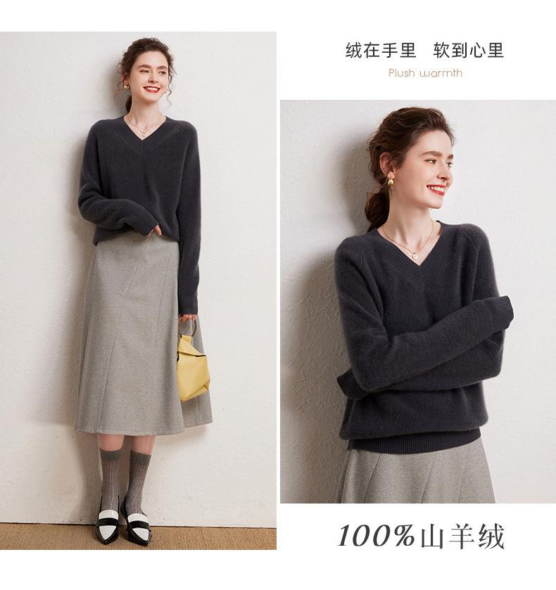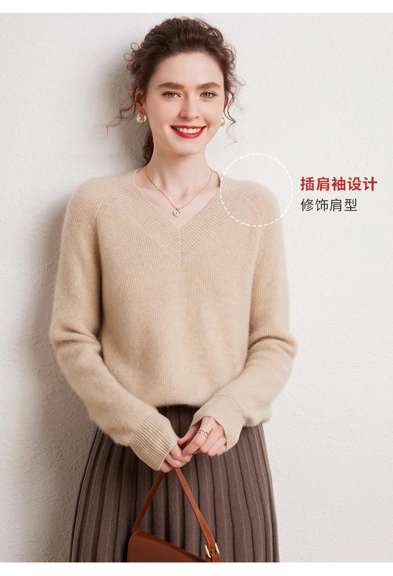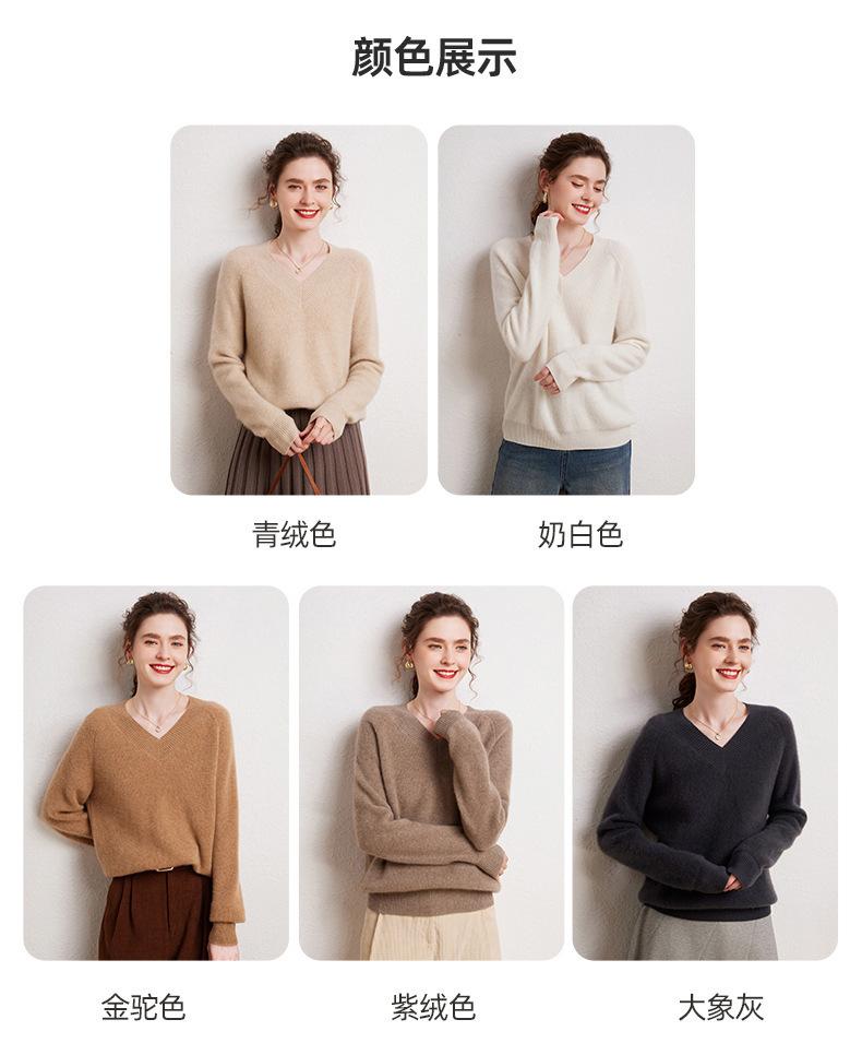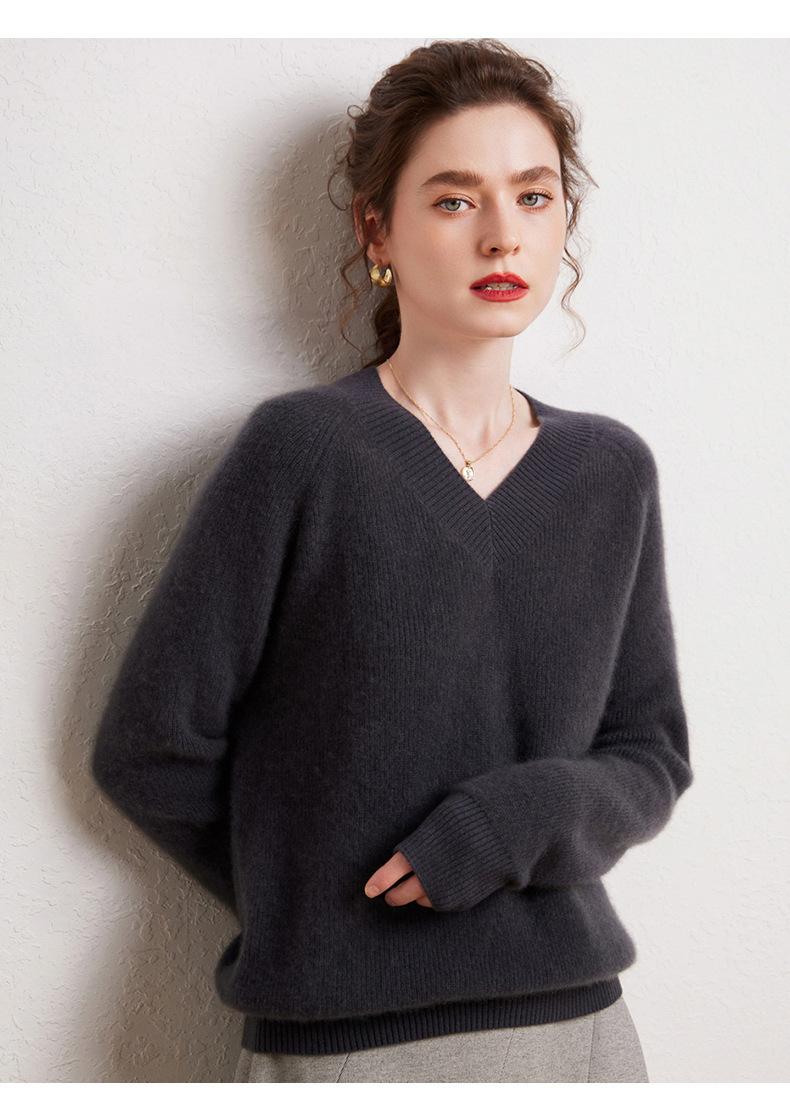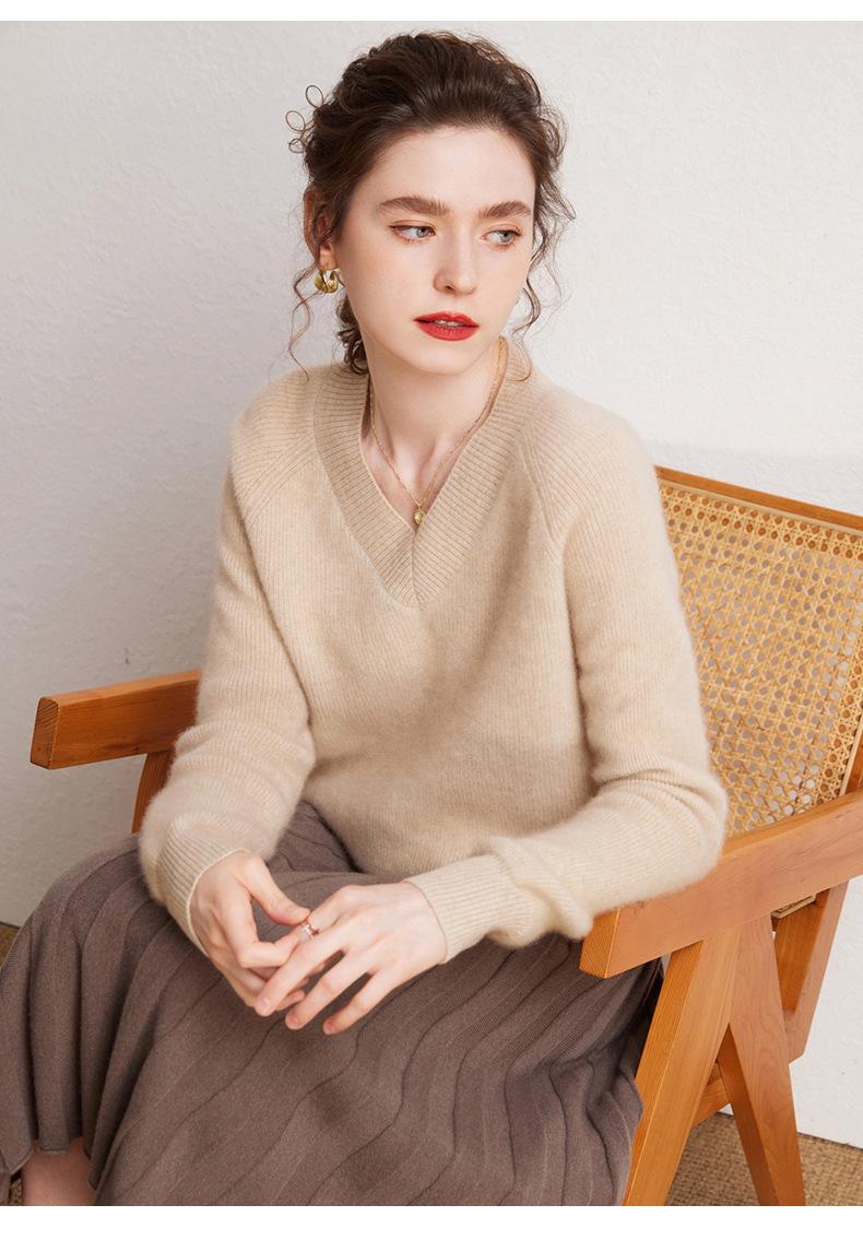 Suéter de cachemira 100% puro para otoño e invierno, nuevo jersey de punto grueso con cuello en V para mujer, suéter de manga larga cálido que combina con todo.