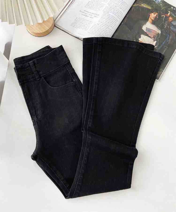 Vaqueros negros micro acampanados para mujer, primavera/verano 2024, nuevos, cintura alta, corte ajustado, pantalones cortos tipo herradura